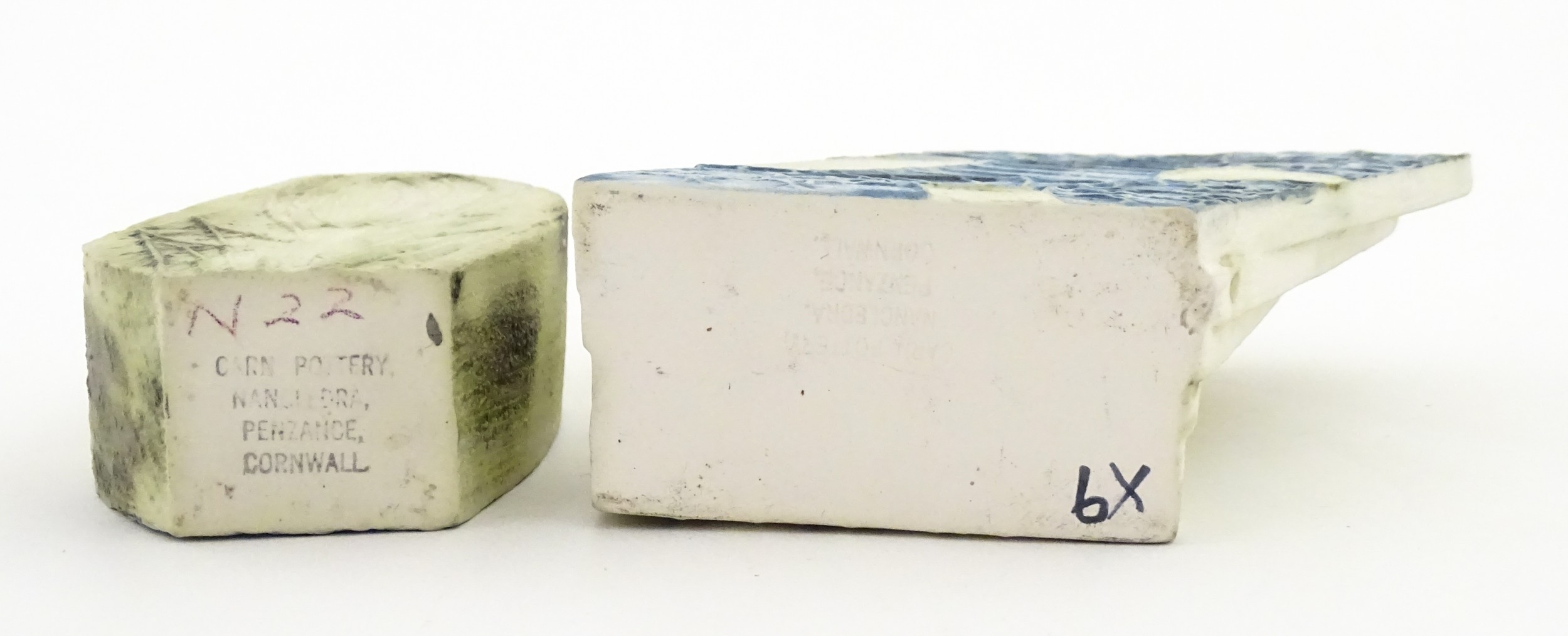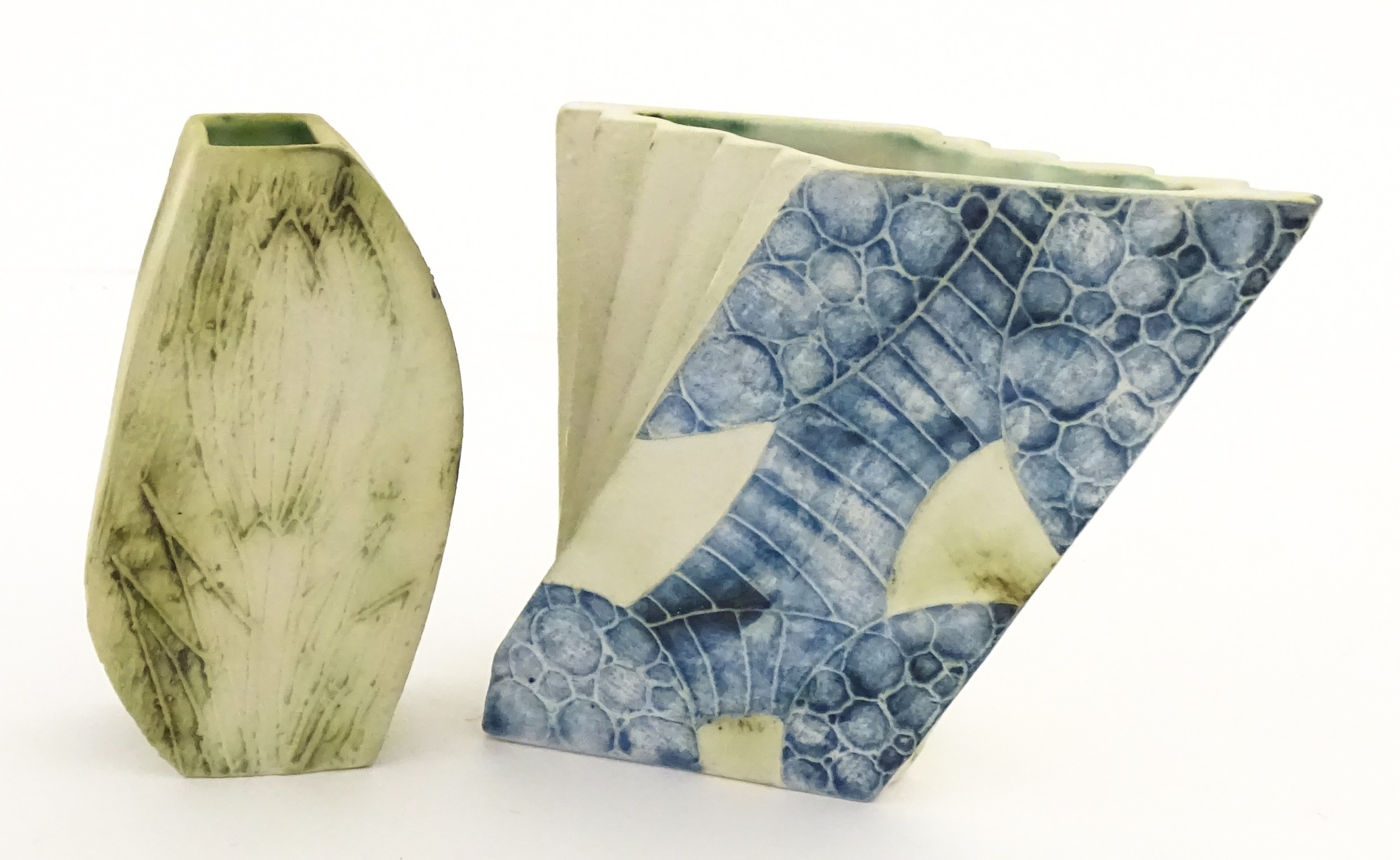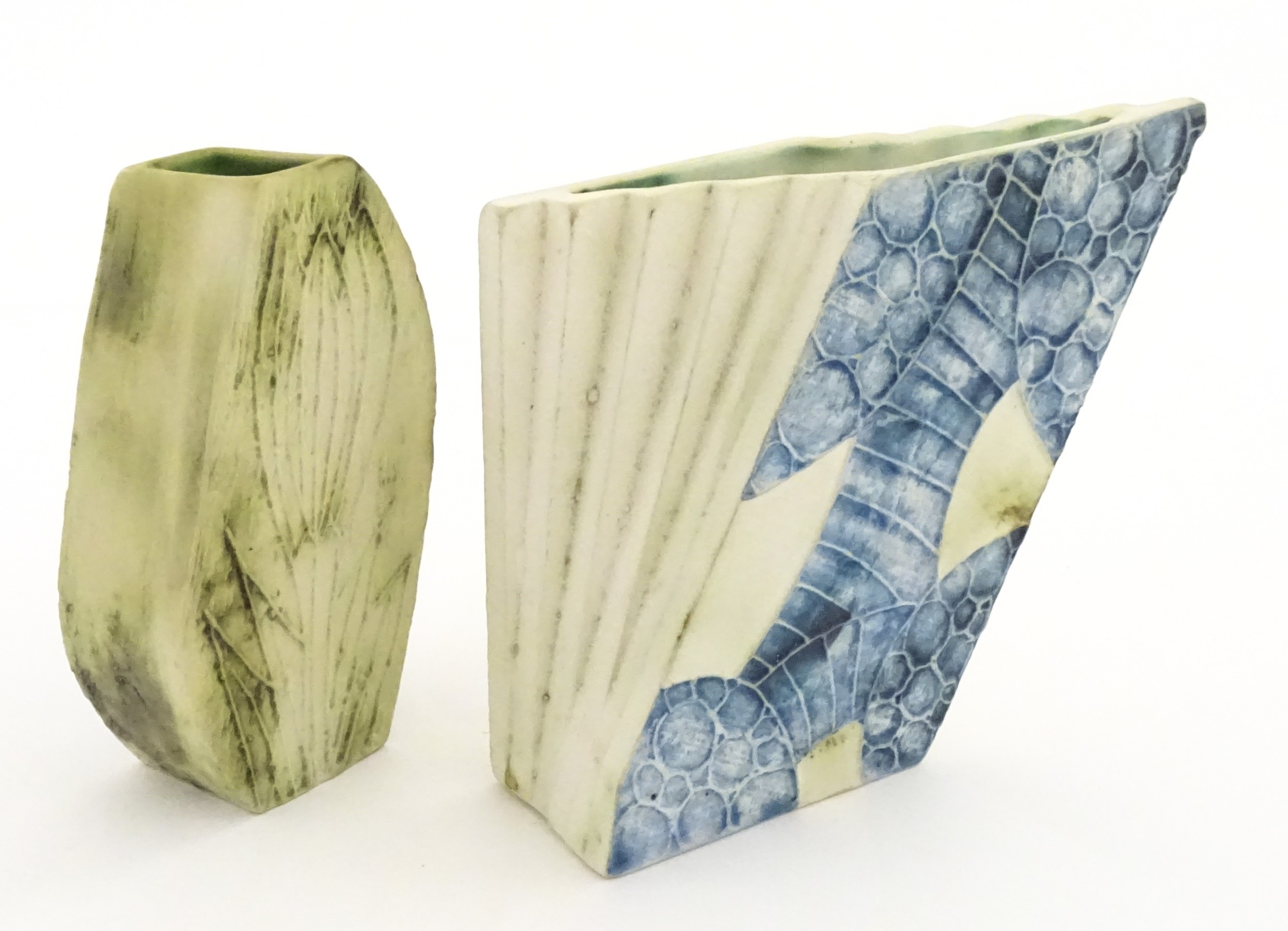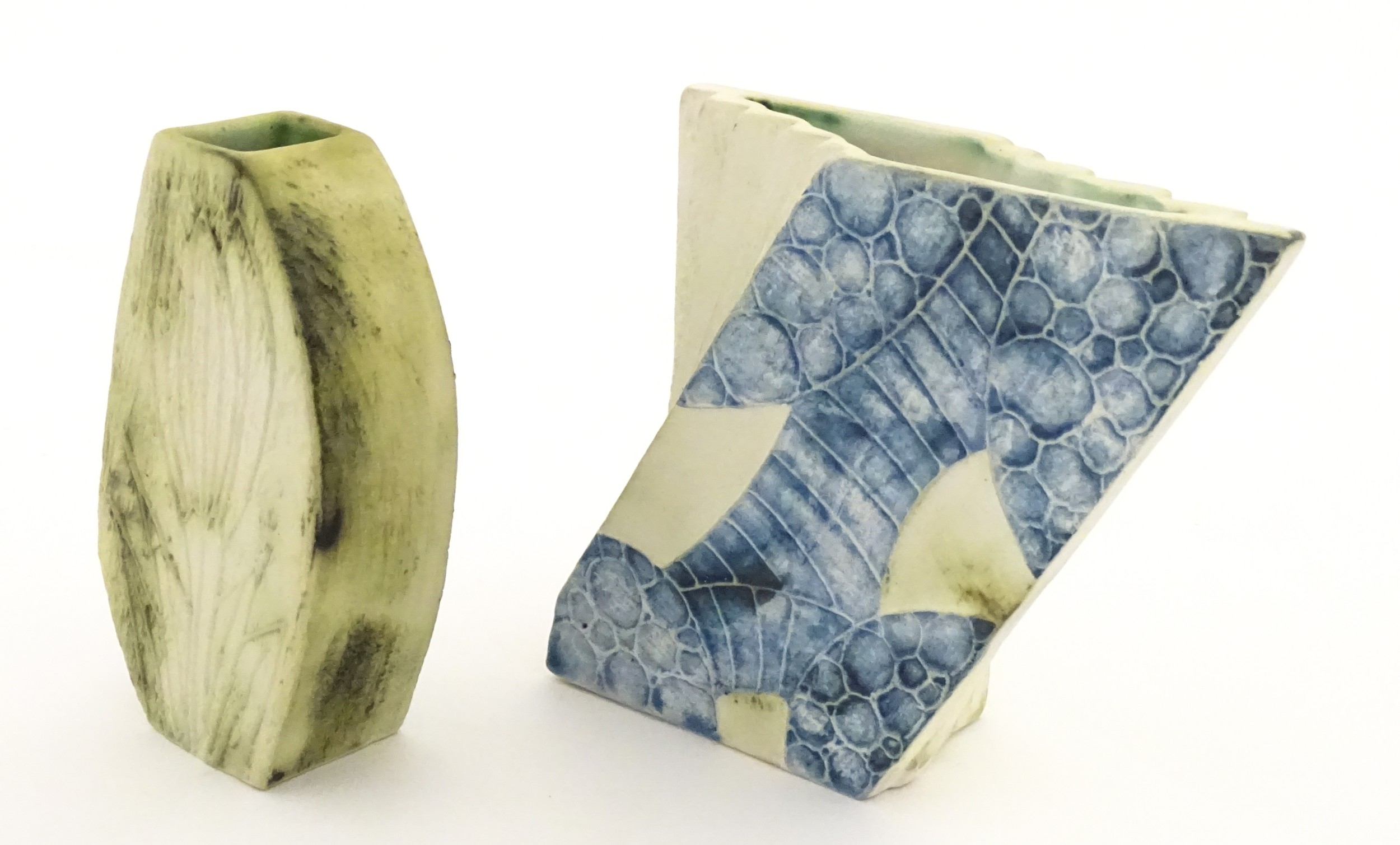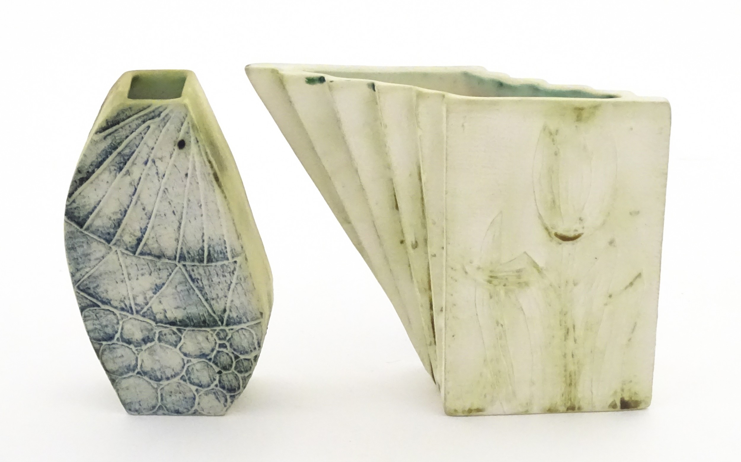 Two Cornish studio pottery vases by Carn Pottery, to include one of shaped form. Marked under. Largest approx. 4 3/4" high (2)