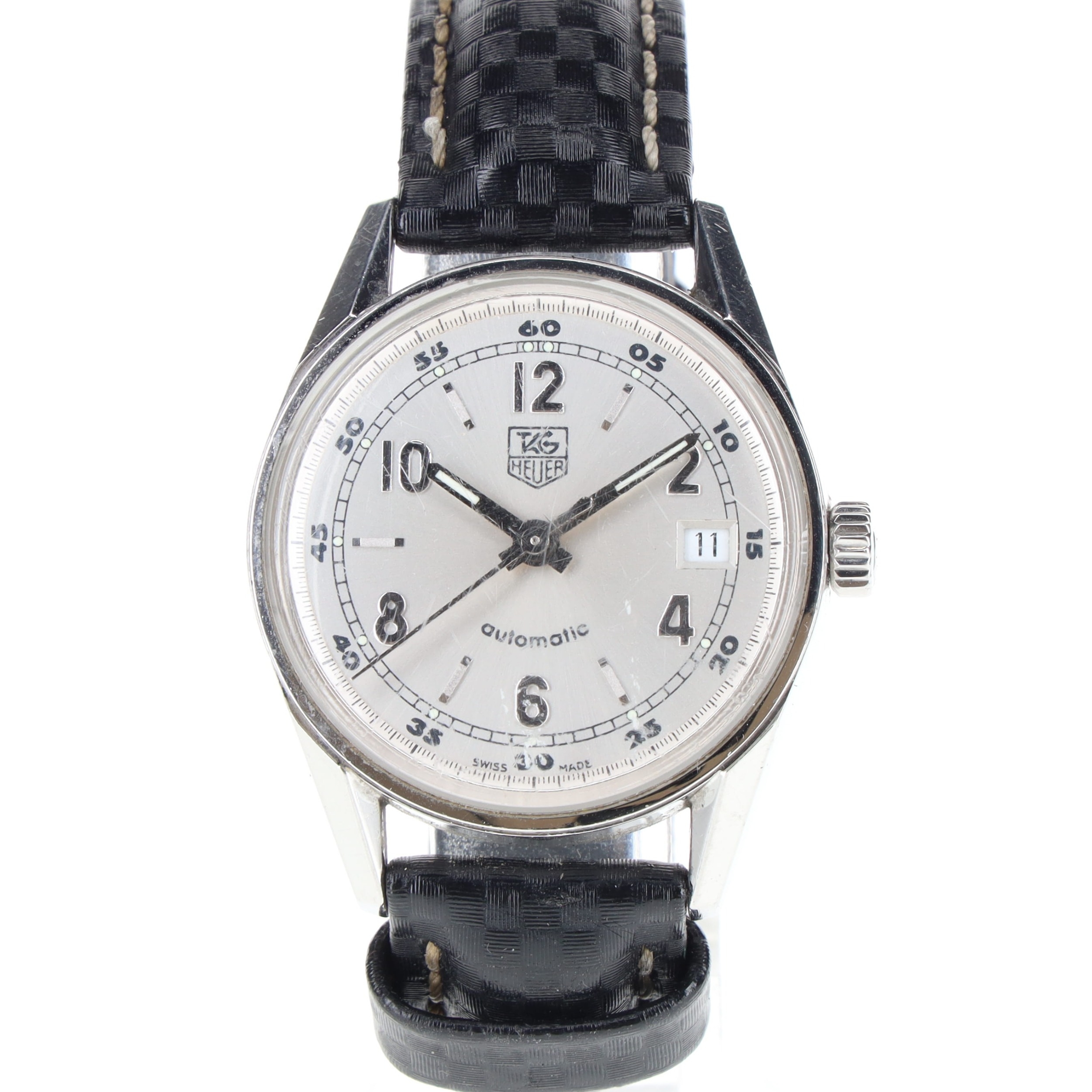 Tag Heuer - Carrera Watch, ref. WV2112. ETA Cal. 2824-2 Automatic movement. Stainless steel case and textured leather strap. Acrylic crystal has some scratches present. Watch is running at the time of listing, complete with original box and paper inclusions photographed. Spare Tag Heuer deployment clasp.
