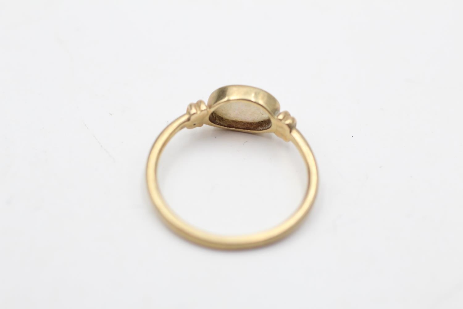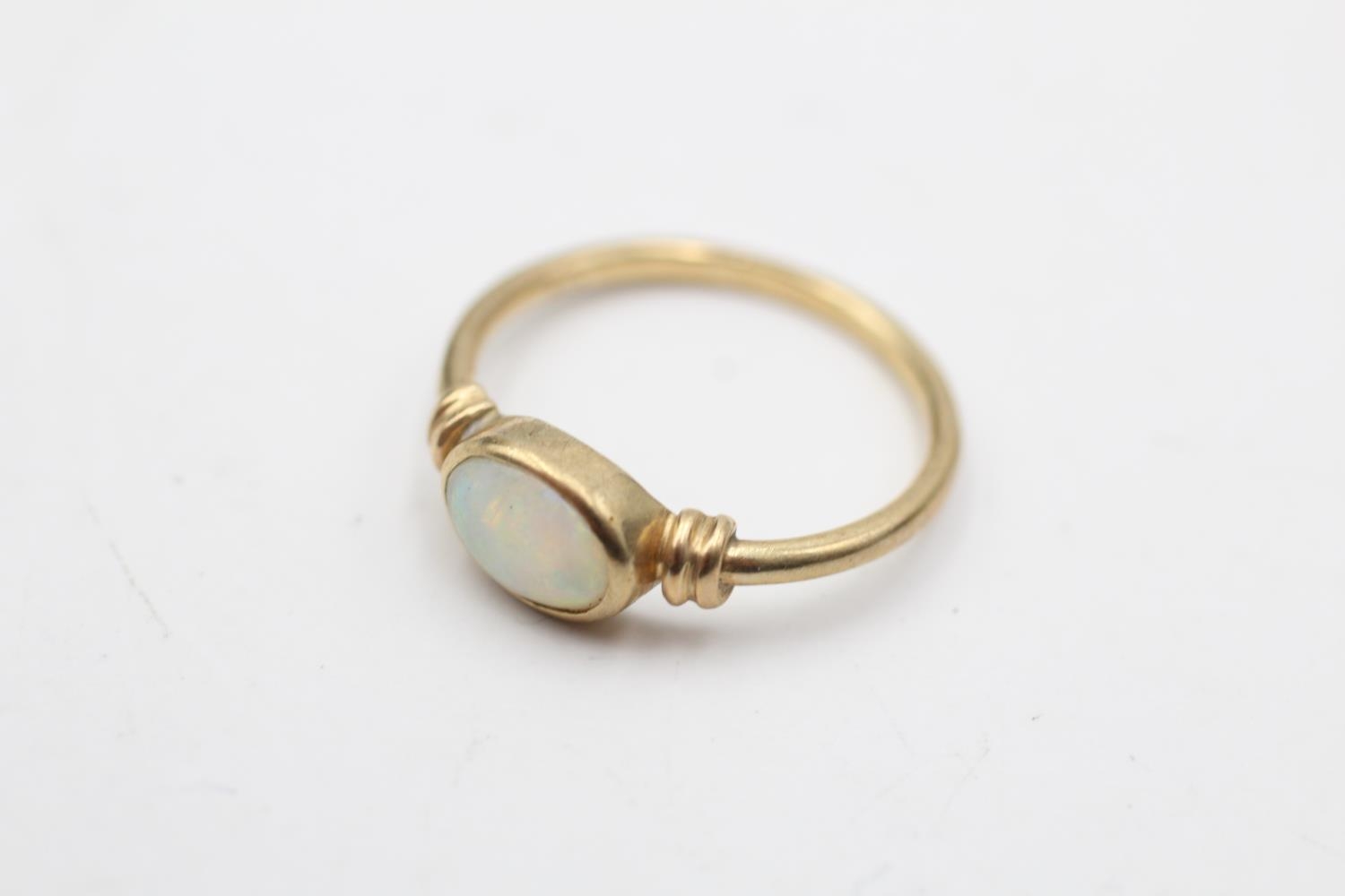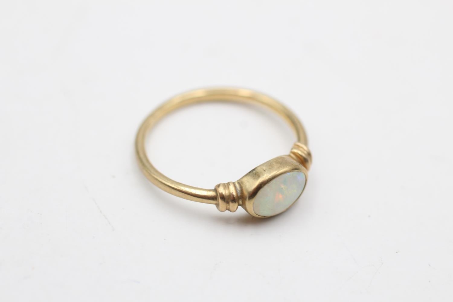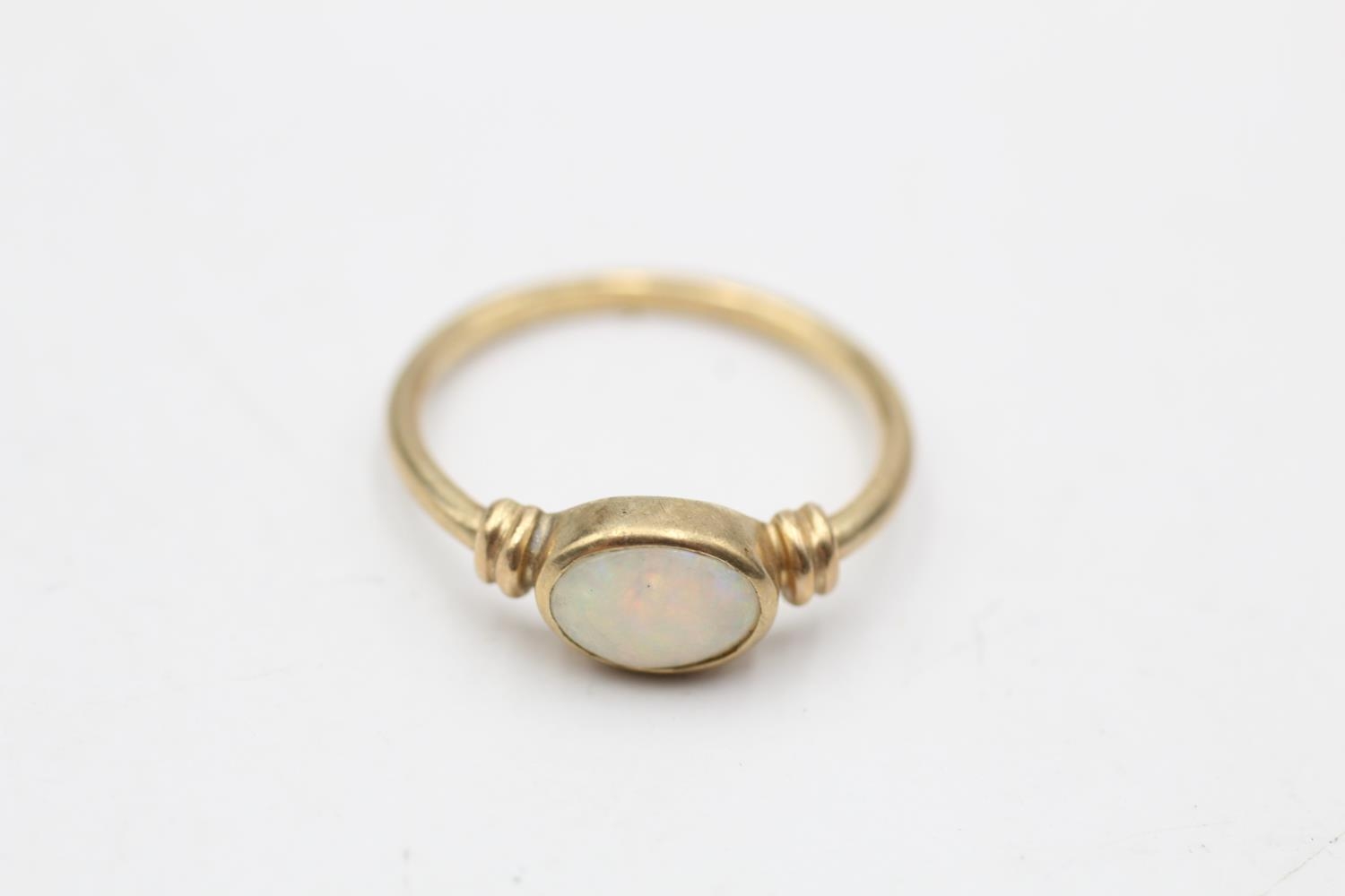 9ct gold opal ring with rub over setting. (1.4g) Size K