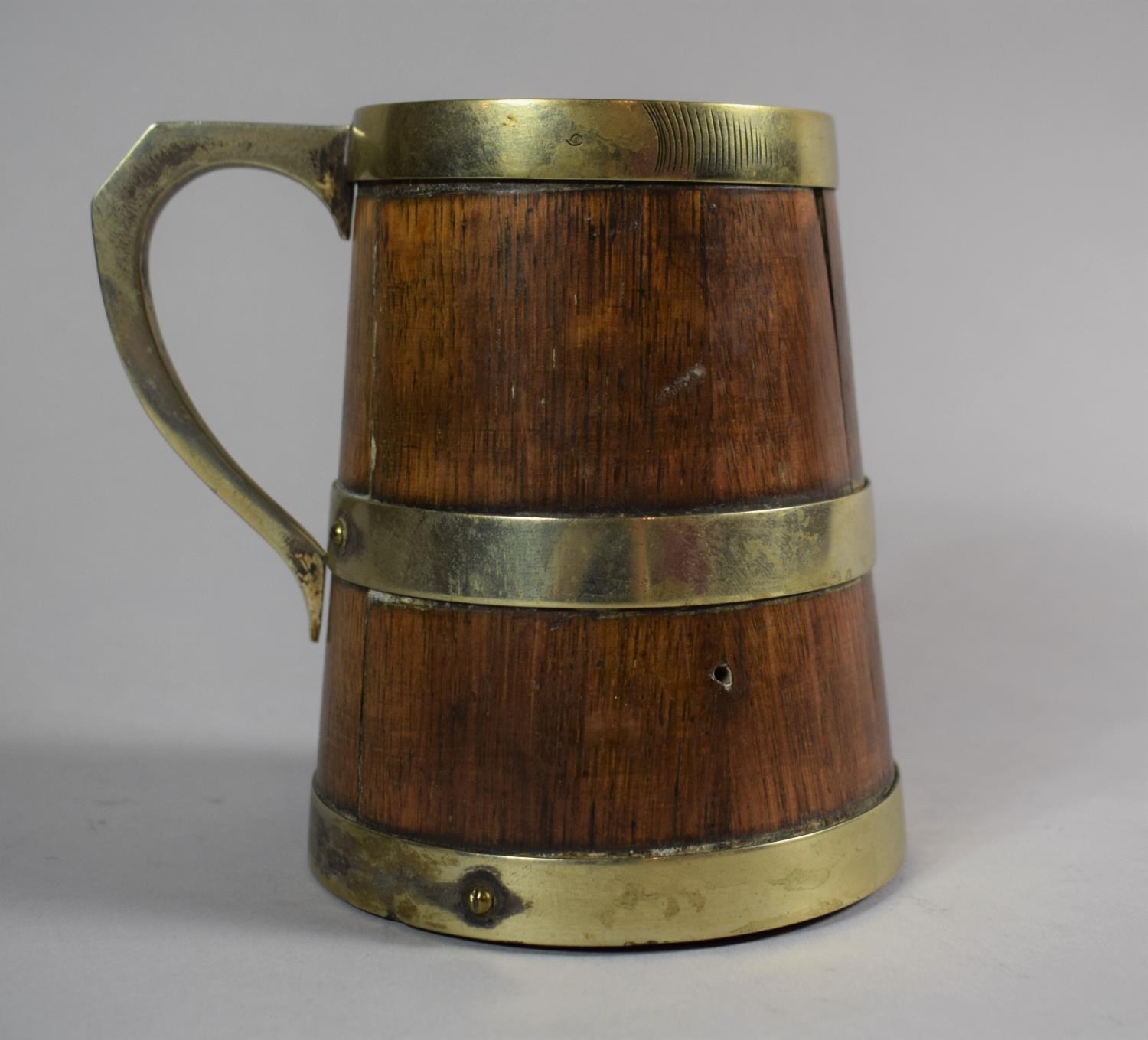 A Mid 20th Century Silver Plate Mounted Oak Tankard, 12.5cm High