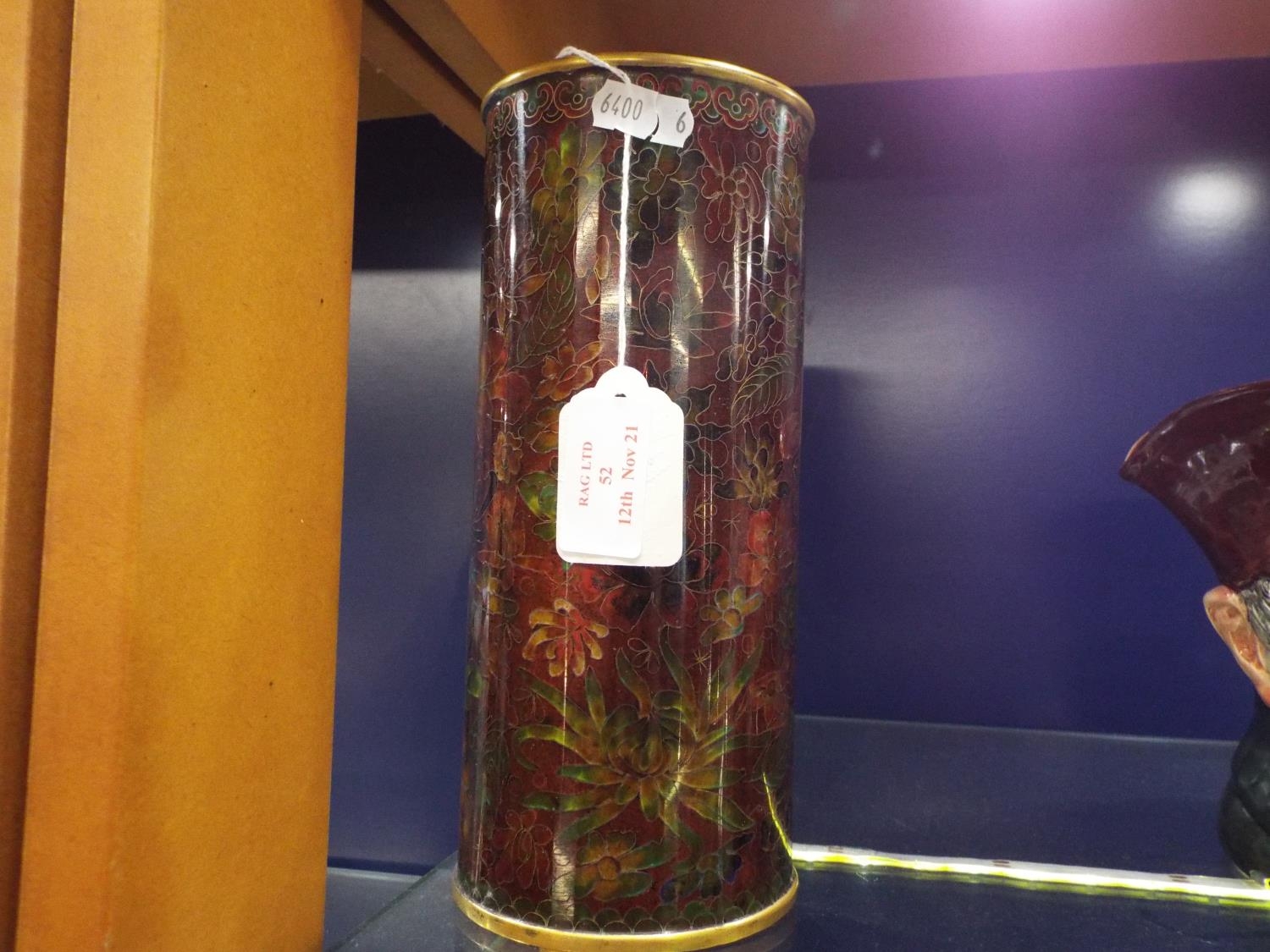 A cloisonné tube vase having gilt rim and base and floral decoration signed to base