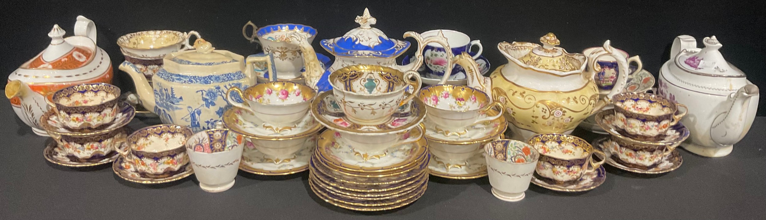 English Porcelain - a collection of early 19th century and later teaware, various factories, most with faults, qty