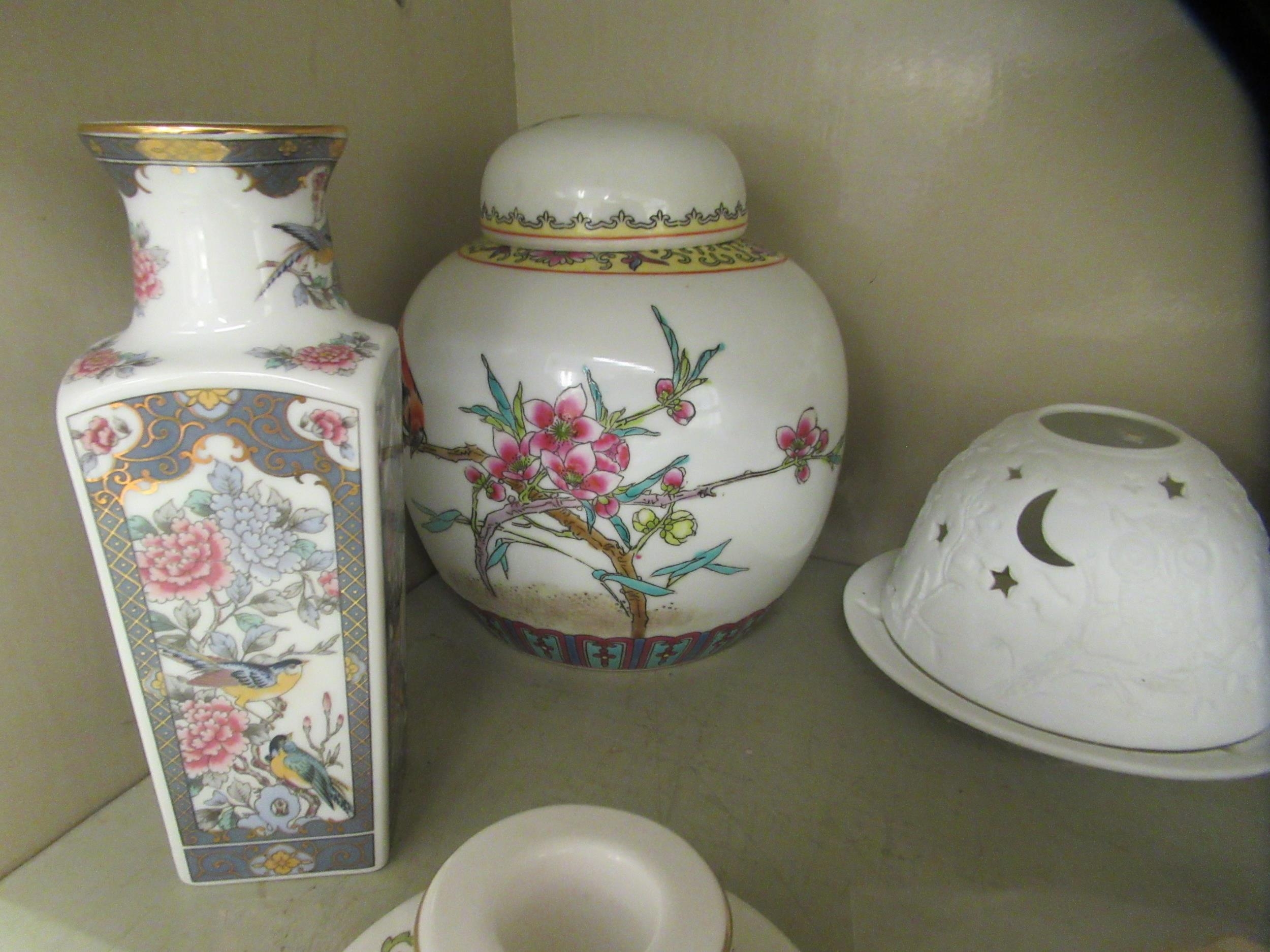 Ceramics: to include a mid 20thC Chinese porcelain vase and cover, decorated with flora and birds 6"h