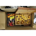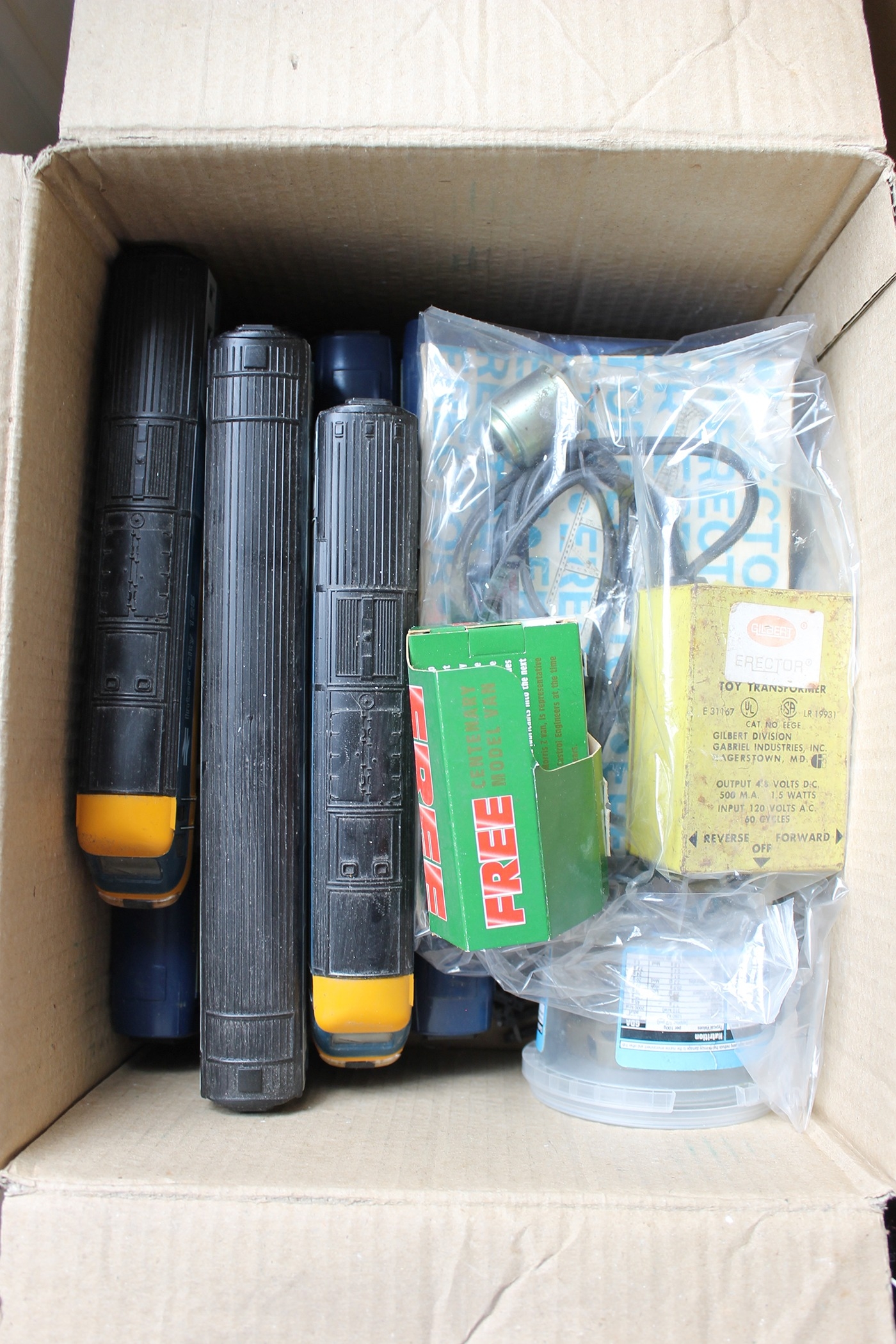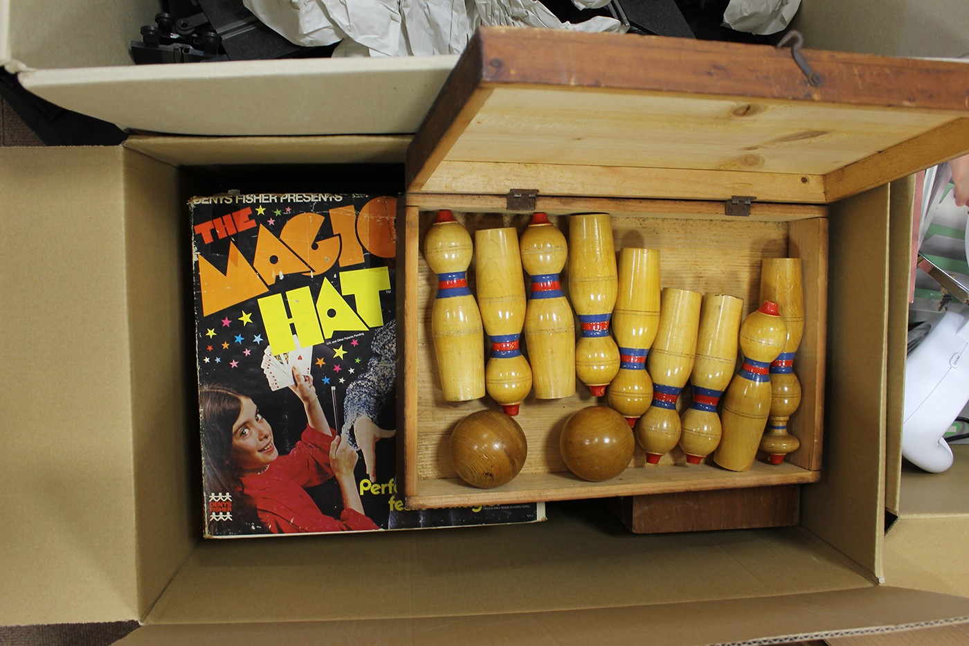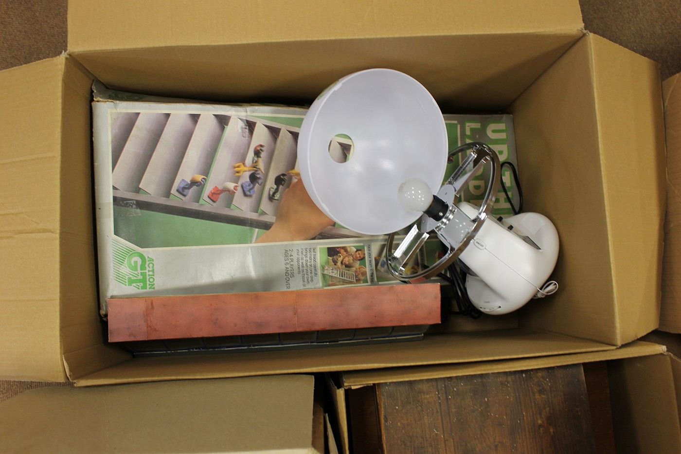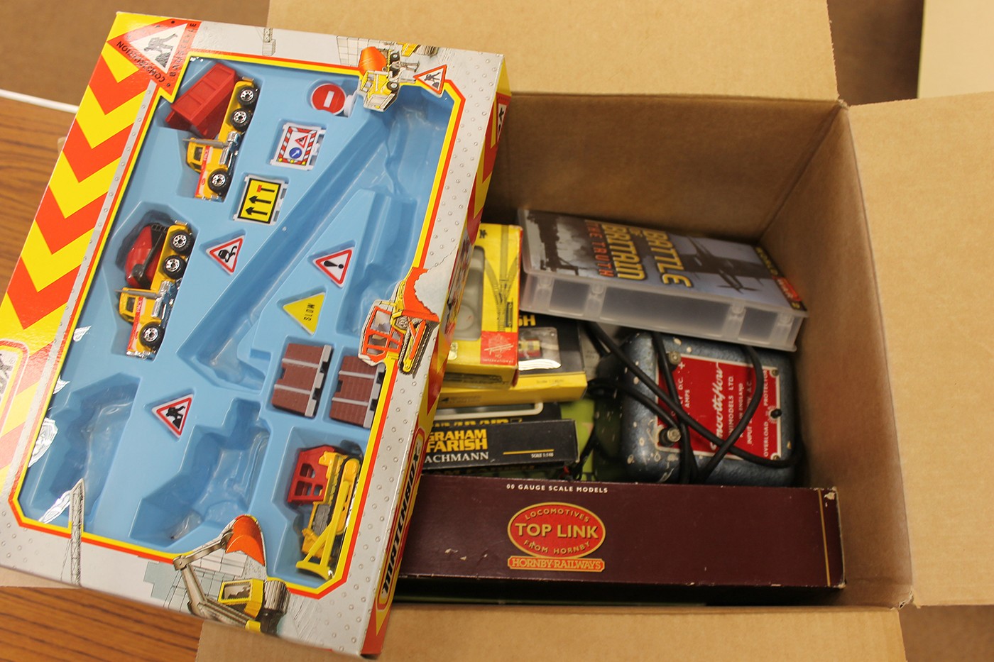 Collection including OO gauge unboxed coaches, track, etc, diecast in frame, soldiers, toys, Mamod, train ephemera, Pelham Puppets (2), Interlocking Building blocks, 'City of Birmingham sign, chess pieces and other games etc, generally good, sorting needed. GLASS WILL NOT BE POSTED. COLLECTION ONLY. (14B)