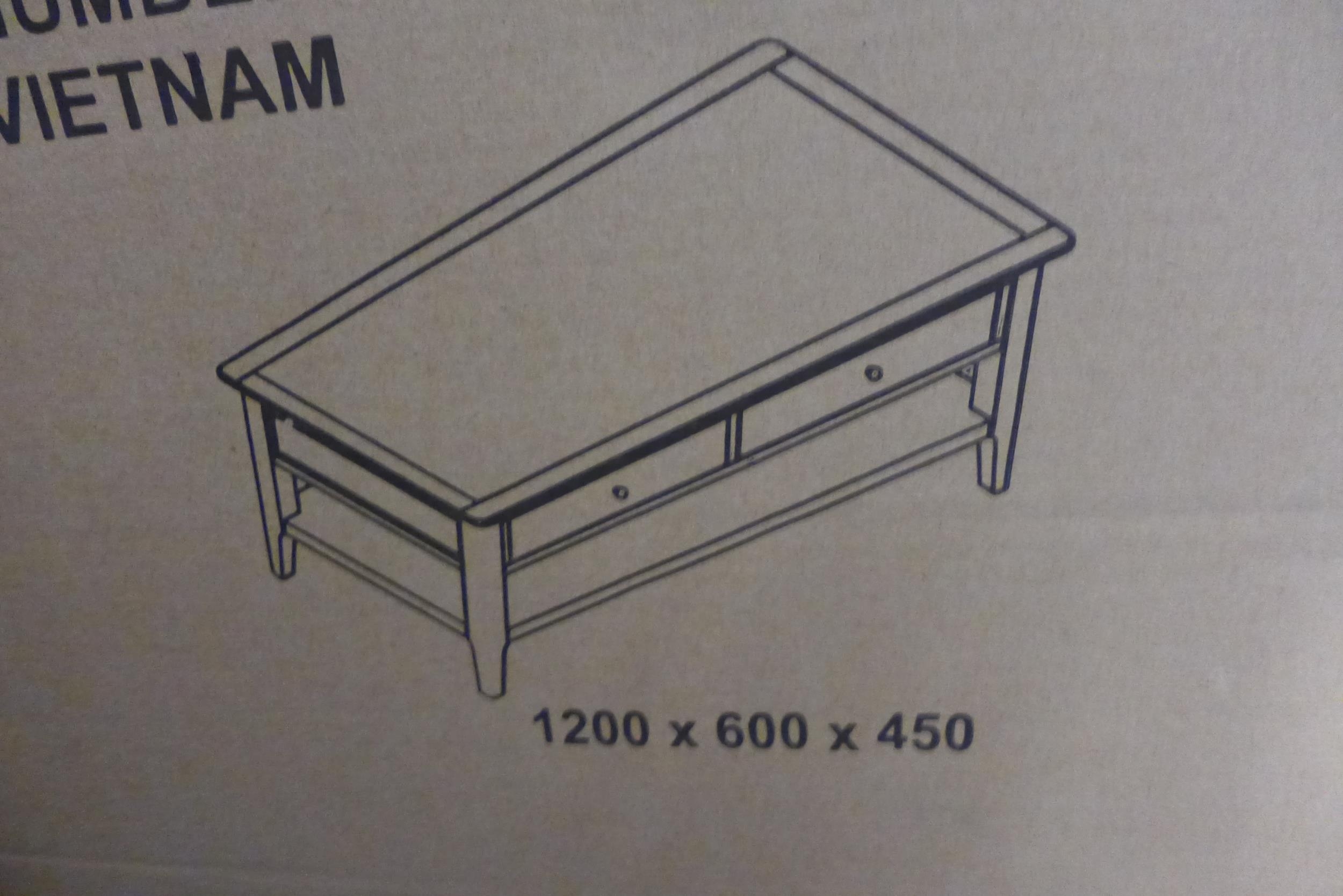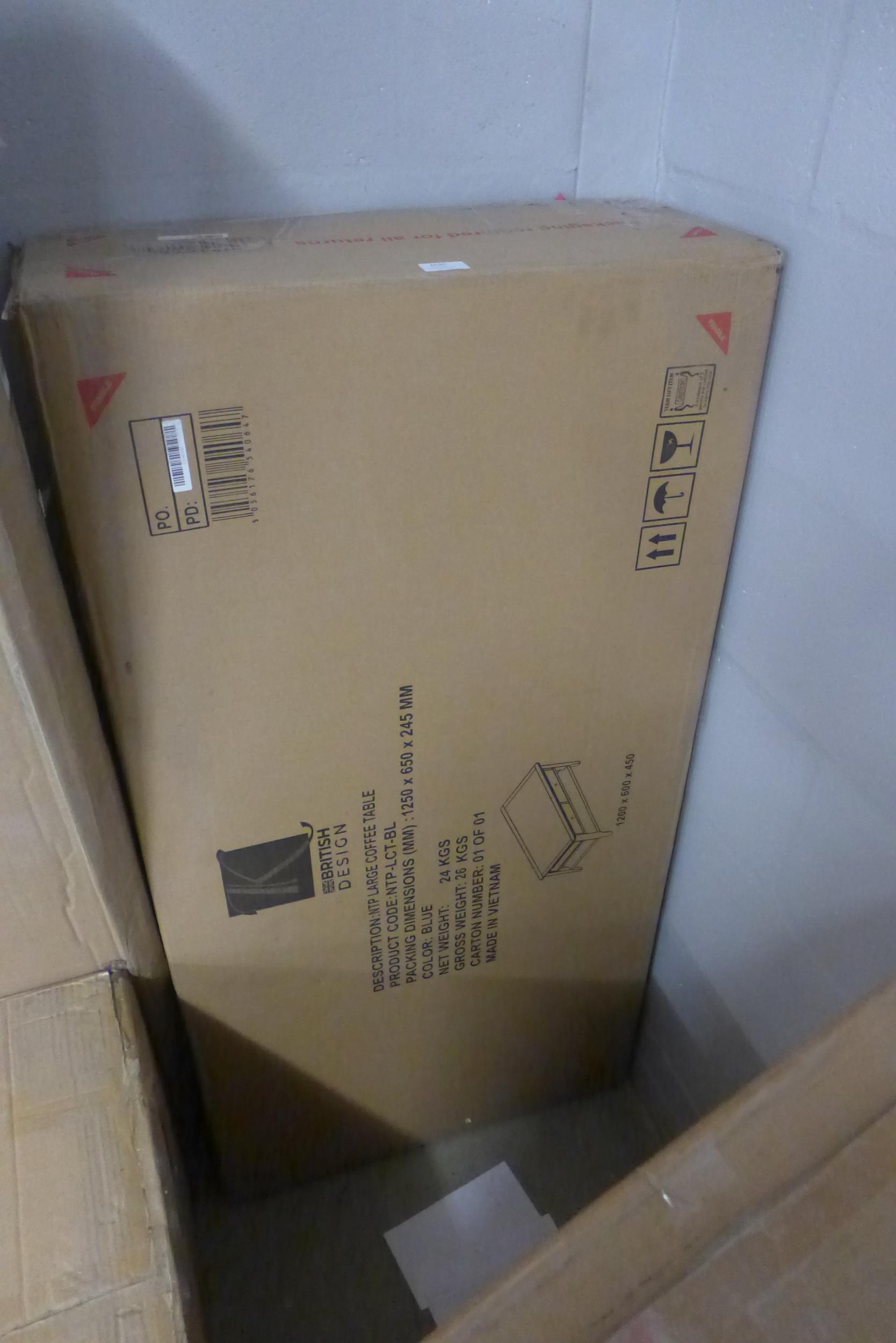 A blue painted oak large two drawer coffee table * This lot ...