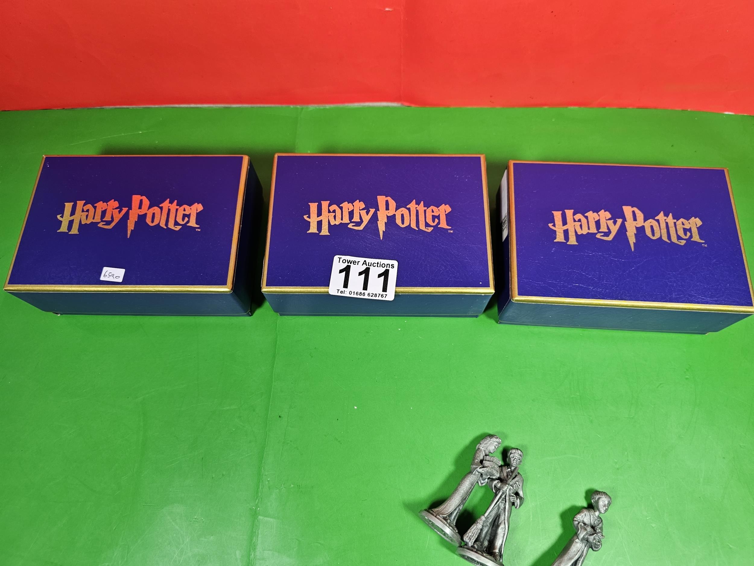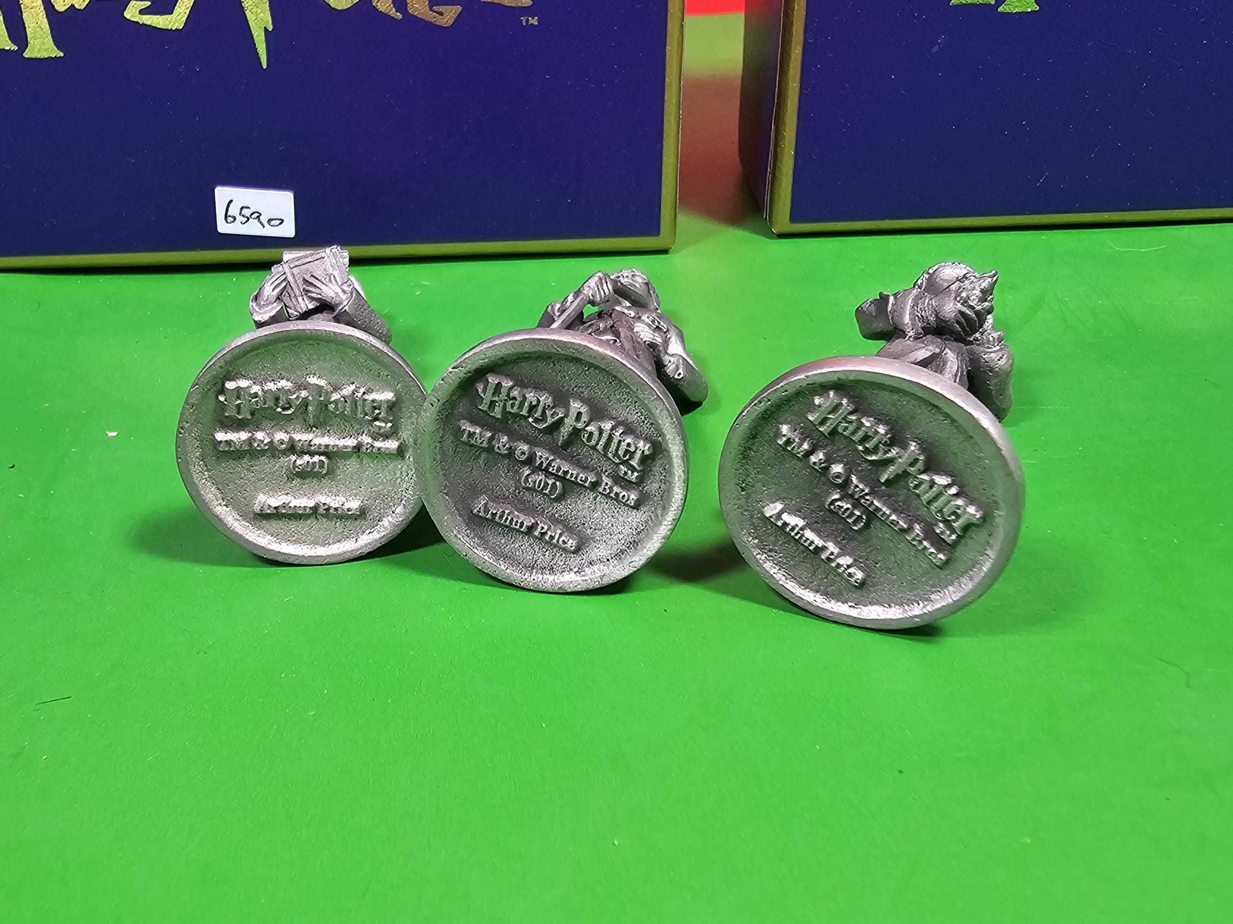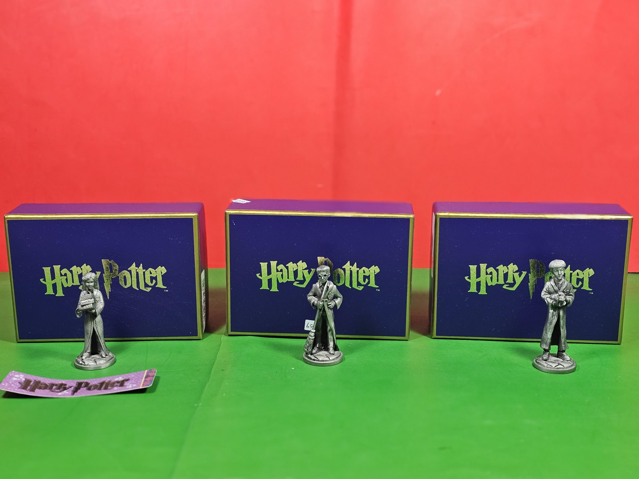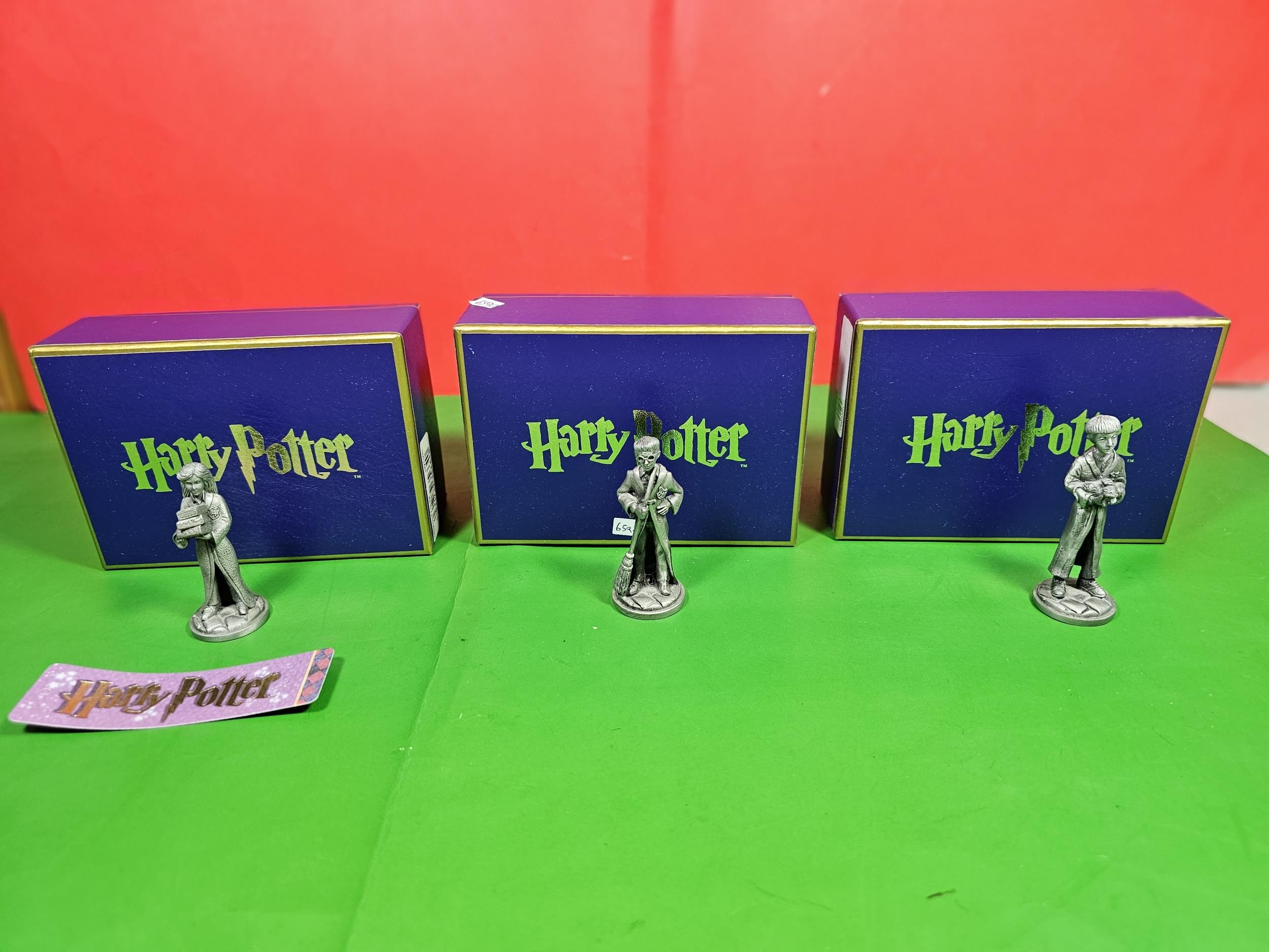 Collection of 3x boxed Harry Potter pewter figures by Arthur Price of England, to include Hermione and Ron, all figures are stamped to the base Harry Potter Warner Bros, each measures 6.5cm high