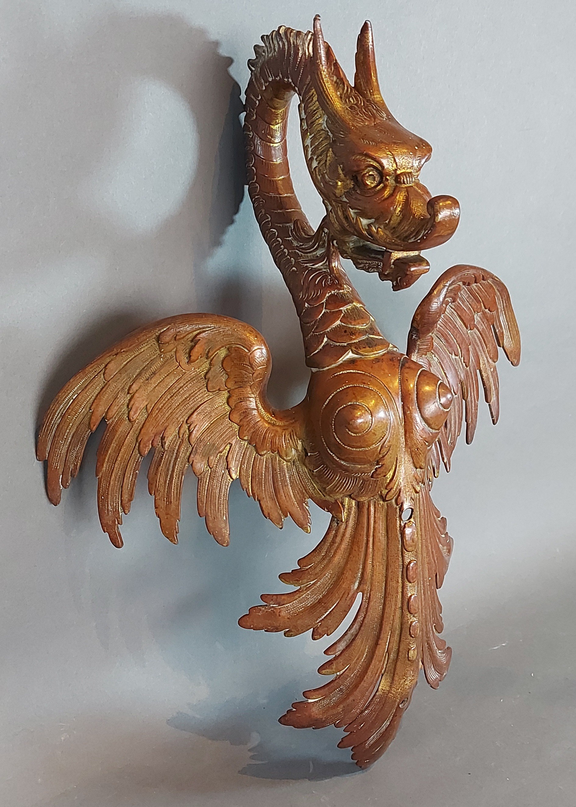 A gilded bronze model in the form of a winged Serpent, 44cms tall