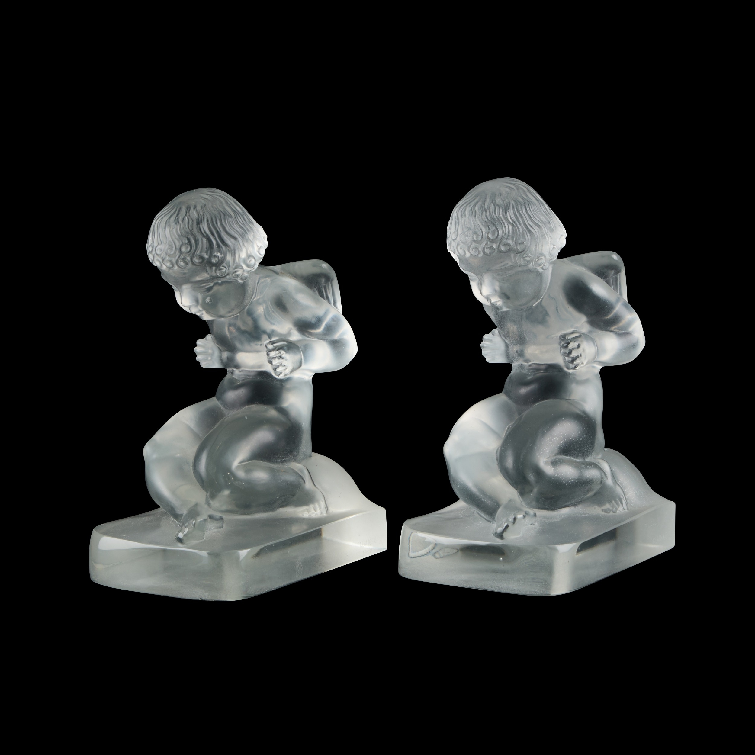 RENÃ LALIQUE (FRENCH, 1860-1945), A PAIR OF 'AMOUR' BOOKENDS, DESIGNED 1929