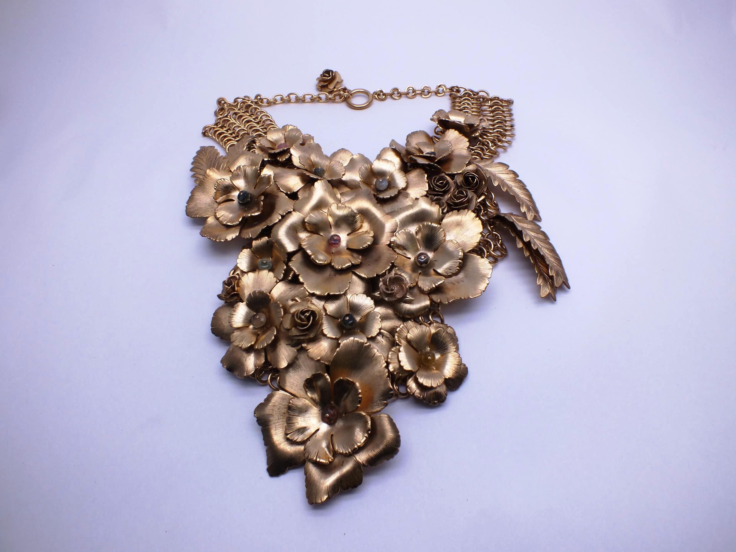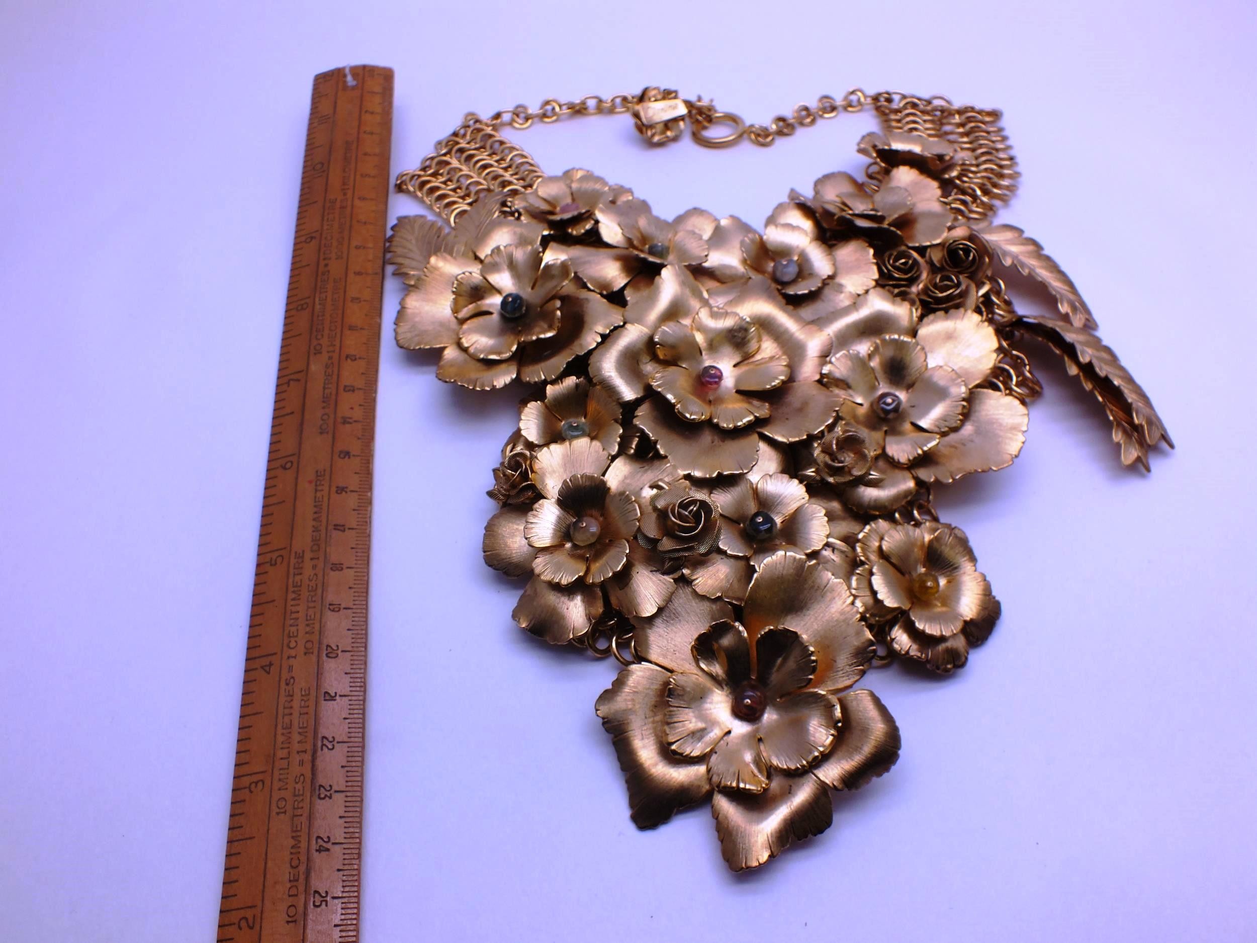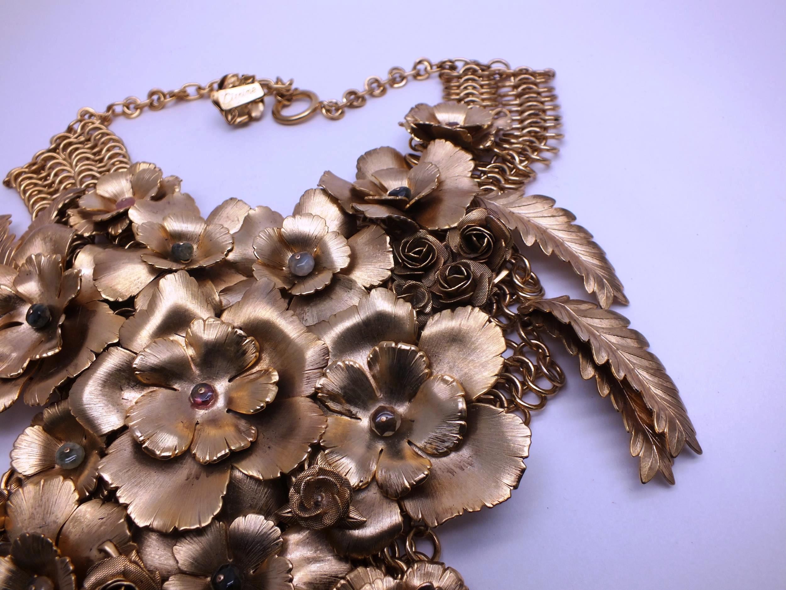 VINTAGE STUNNING GOLD TONE CITRINE SIGNED DESIGNER FLORAL BIB