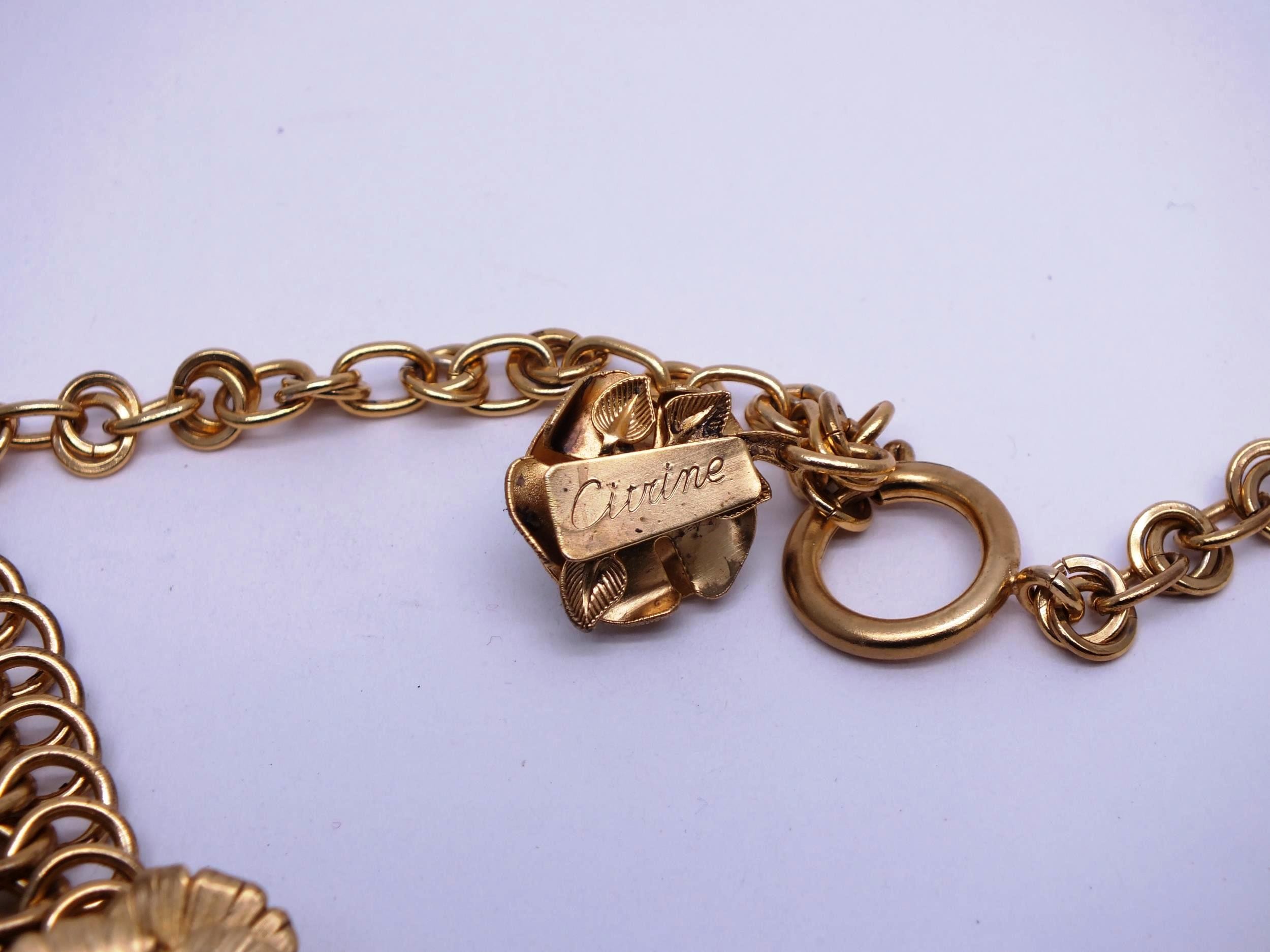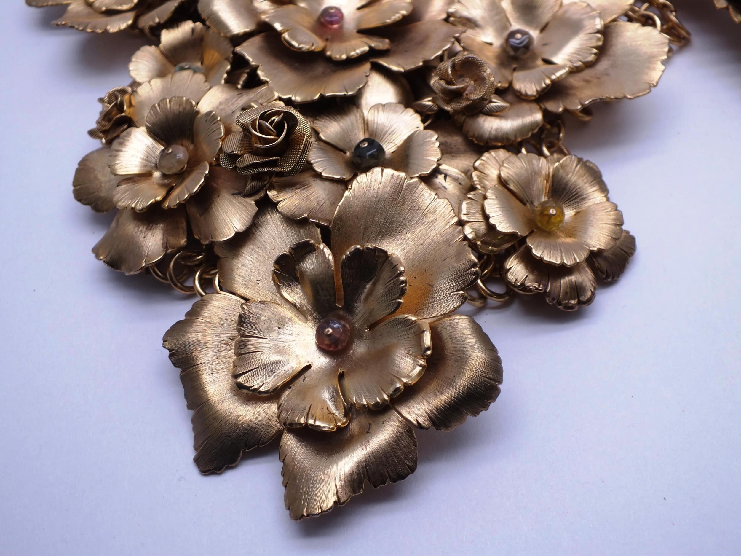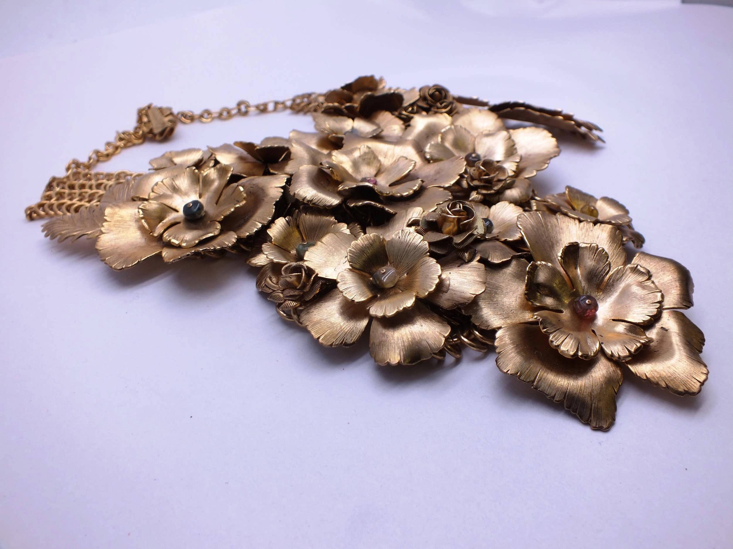 VINTAGE STUNNING GOLD TONE CITRINE SIGNED DESIGNER FLORAL BIB