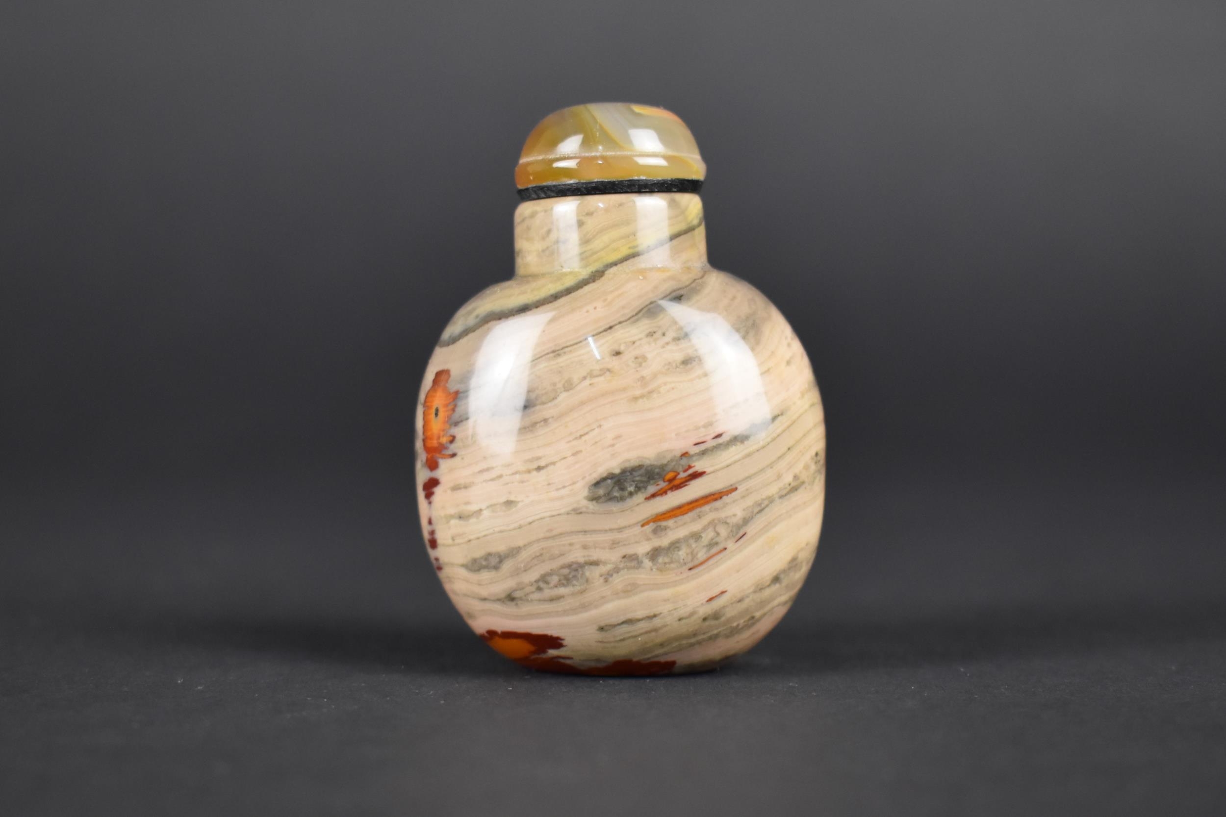 A Chinese Carved Hardstone Snuff With Red, Grey and Brown Inclusions, 6cm High
