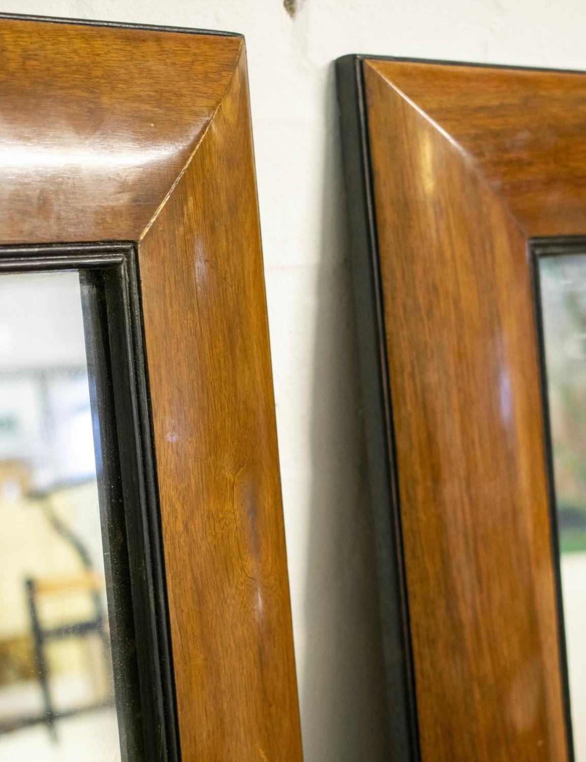 WALL MIRRORS, 150cm x 100cm, a pair, 20th century walnut and ebonised. (2)