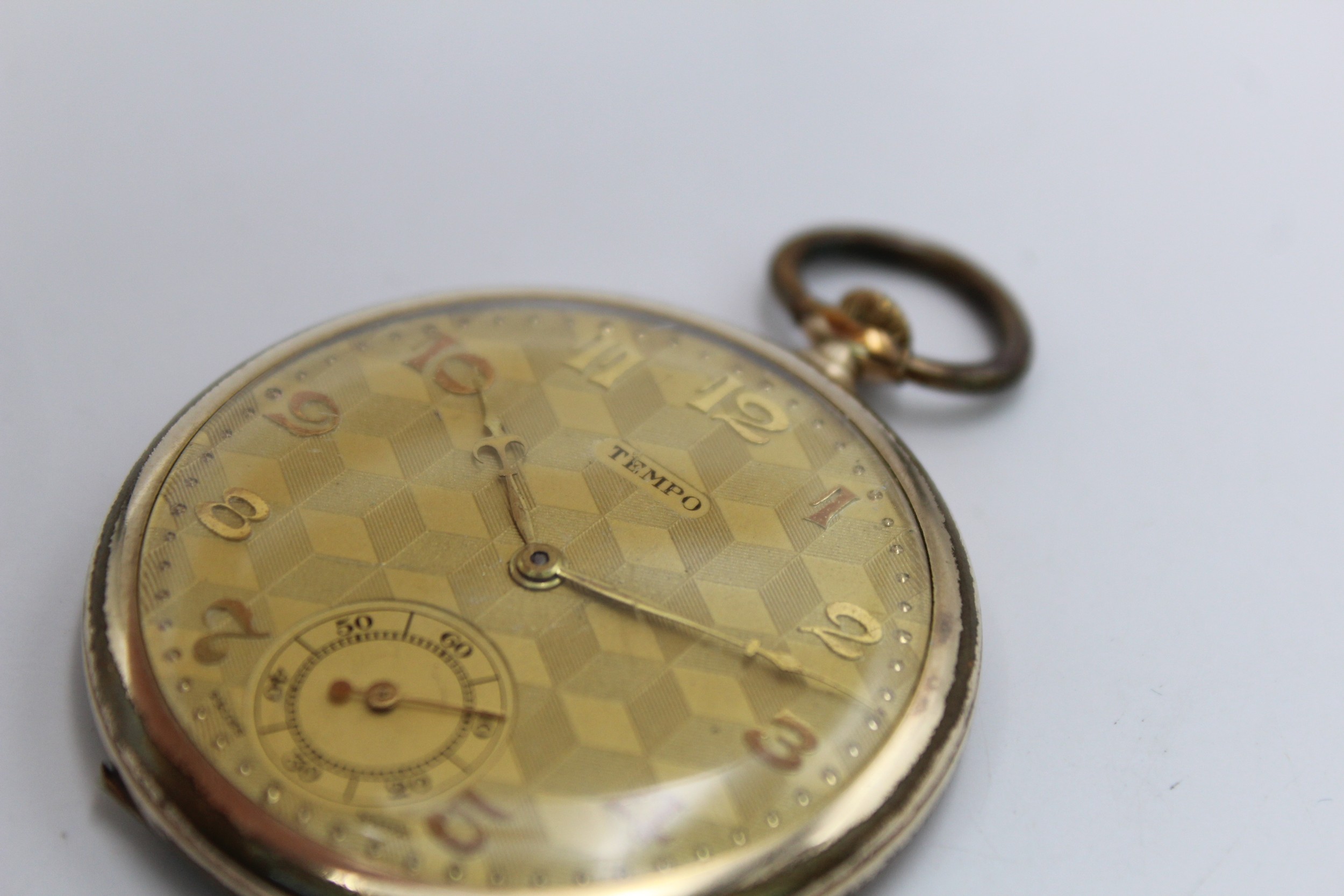 Vintage Gents TEMPO Rolled Gold Open Face POCKET WATCH Hand-Wind WORKING (56g)
