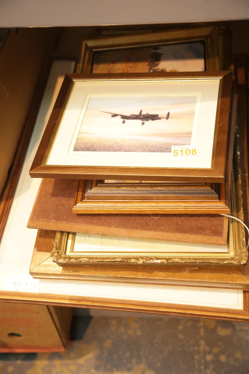 Collection of mixed framed and glazed pictures including a vintage oil on board seascape. This lot is not available for in-house P&P.