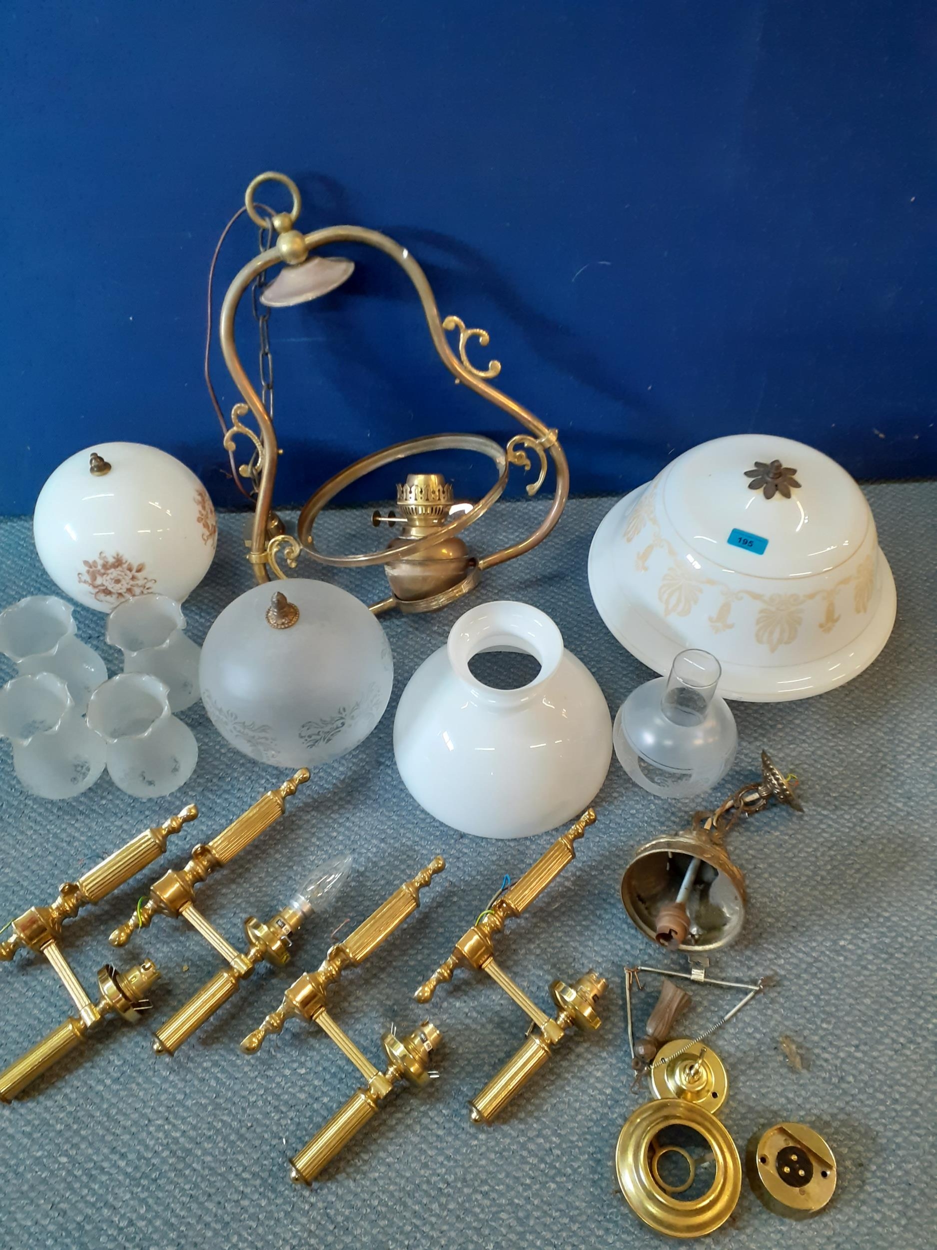 Mixed 20th century lighting to include ceiling, wall lights and glass shades