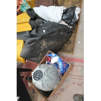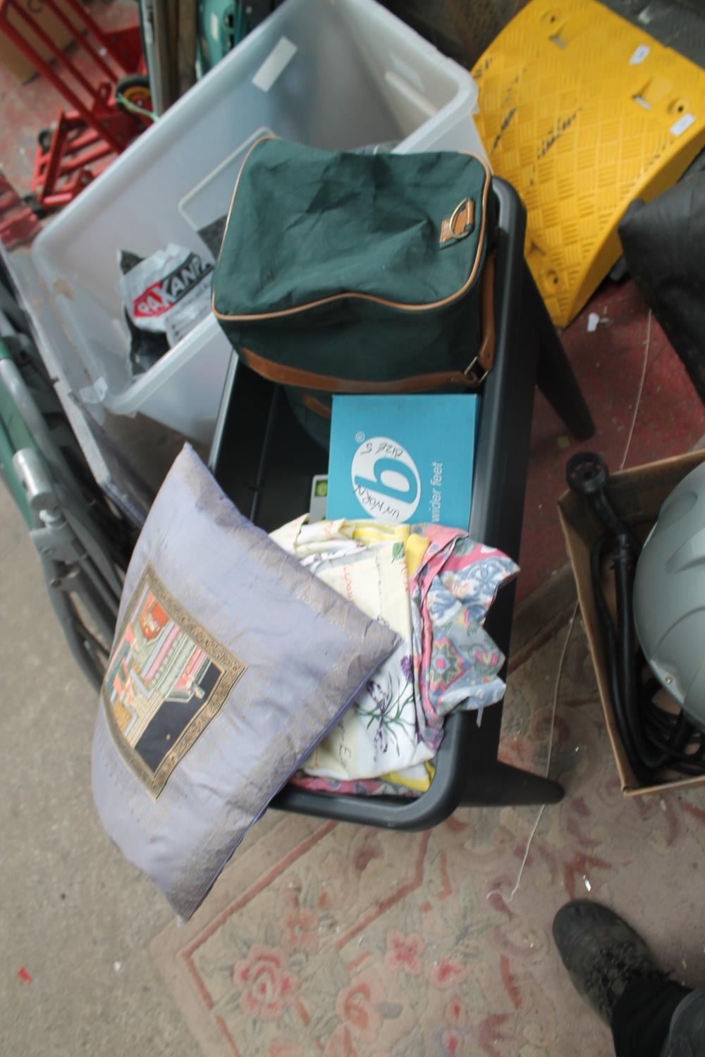 PLASTIC PLANTER CONTAINING MIX MATERIAL, FOOT PUMP AND SHOES