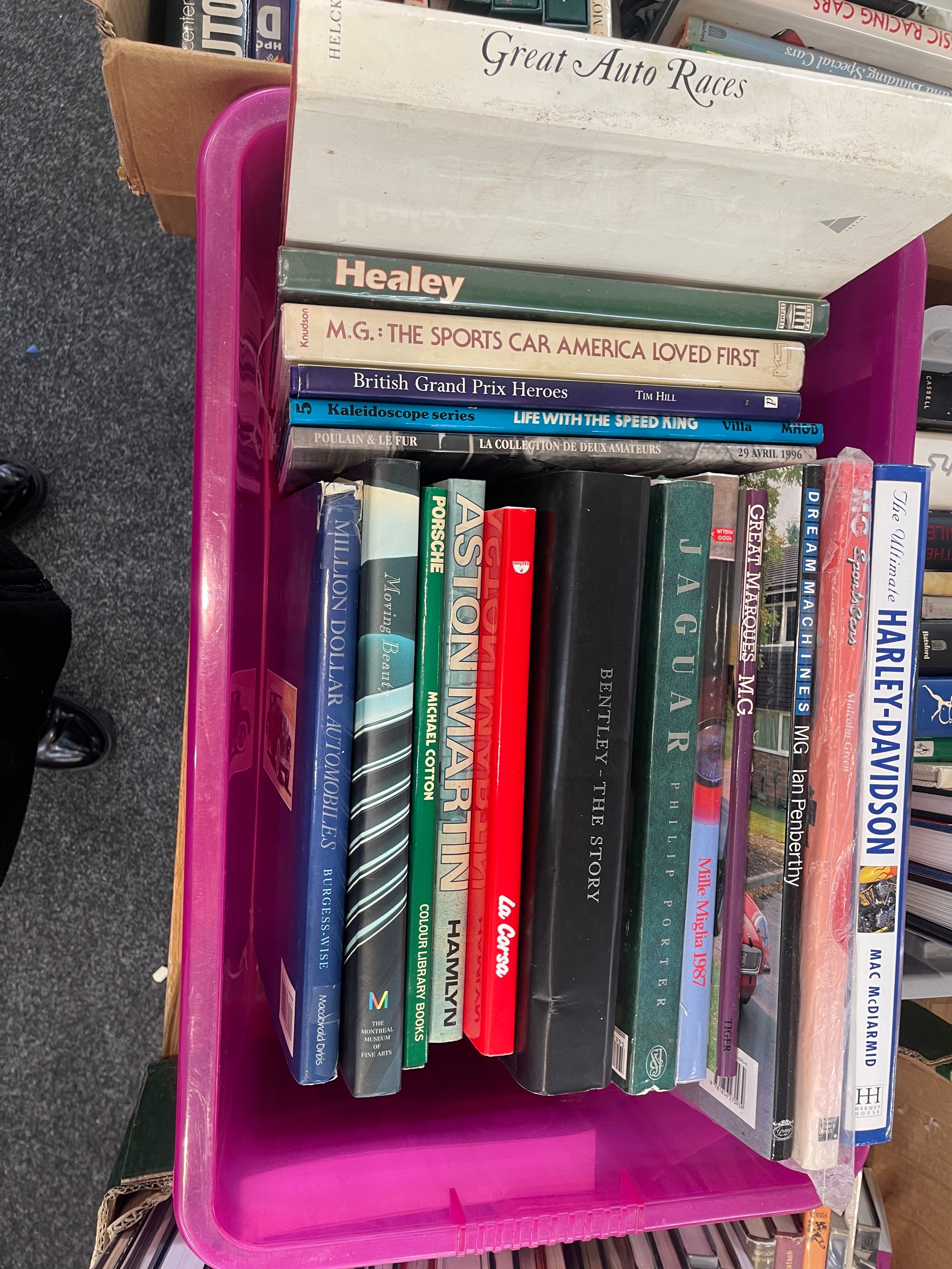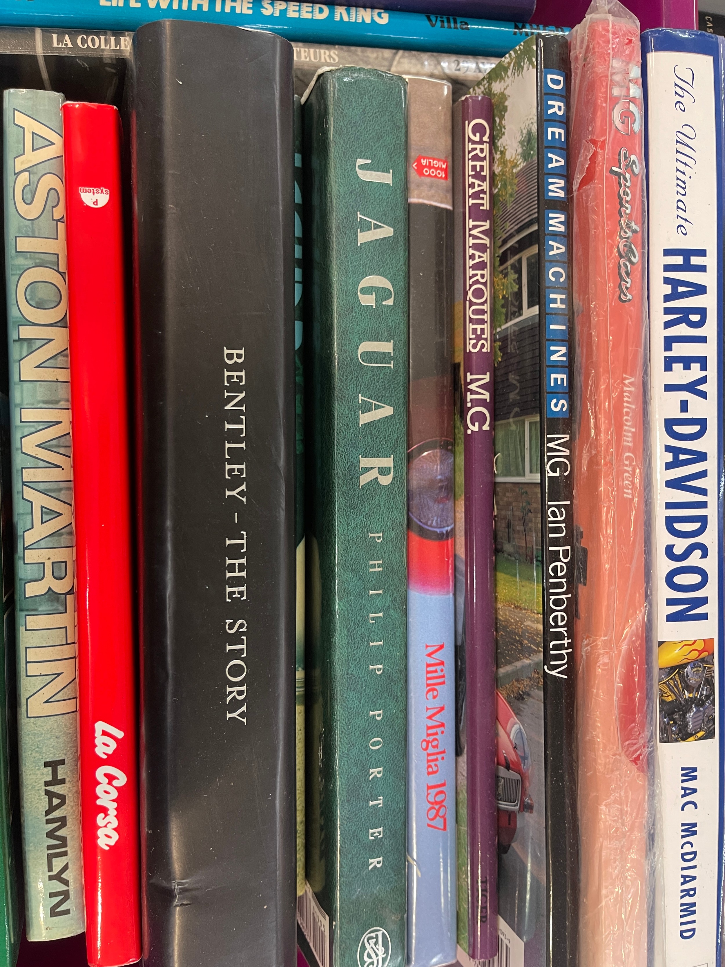 Selection of motoring and motor racing books to includes Harley Davidson, Aston Martin, Healy etc