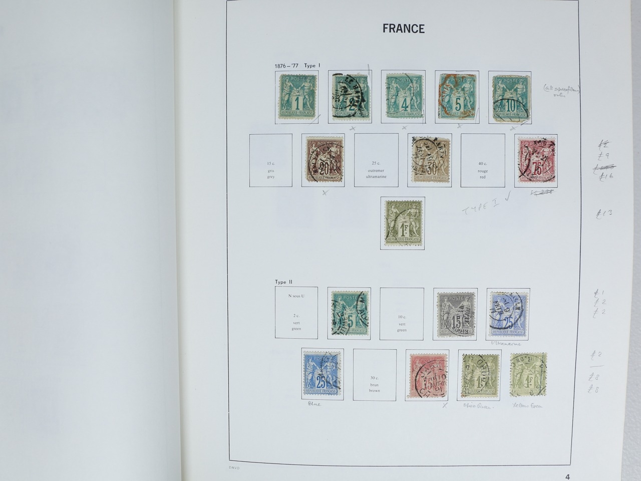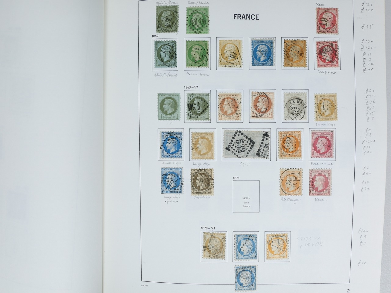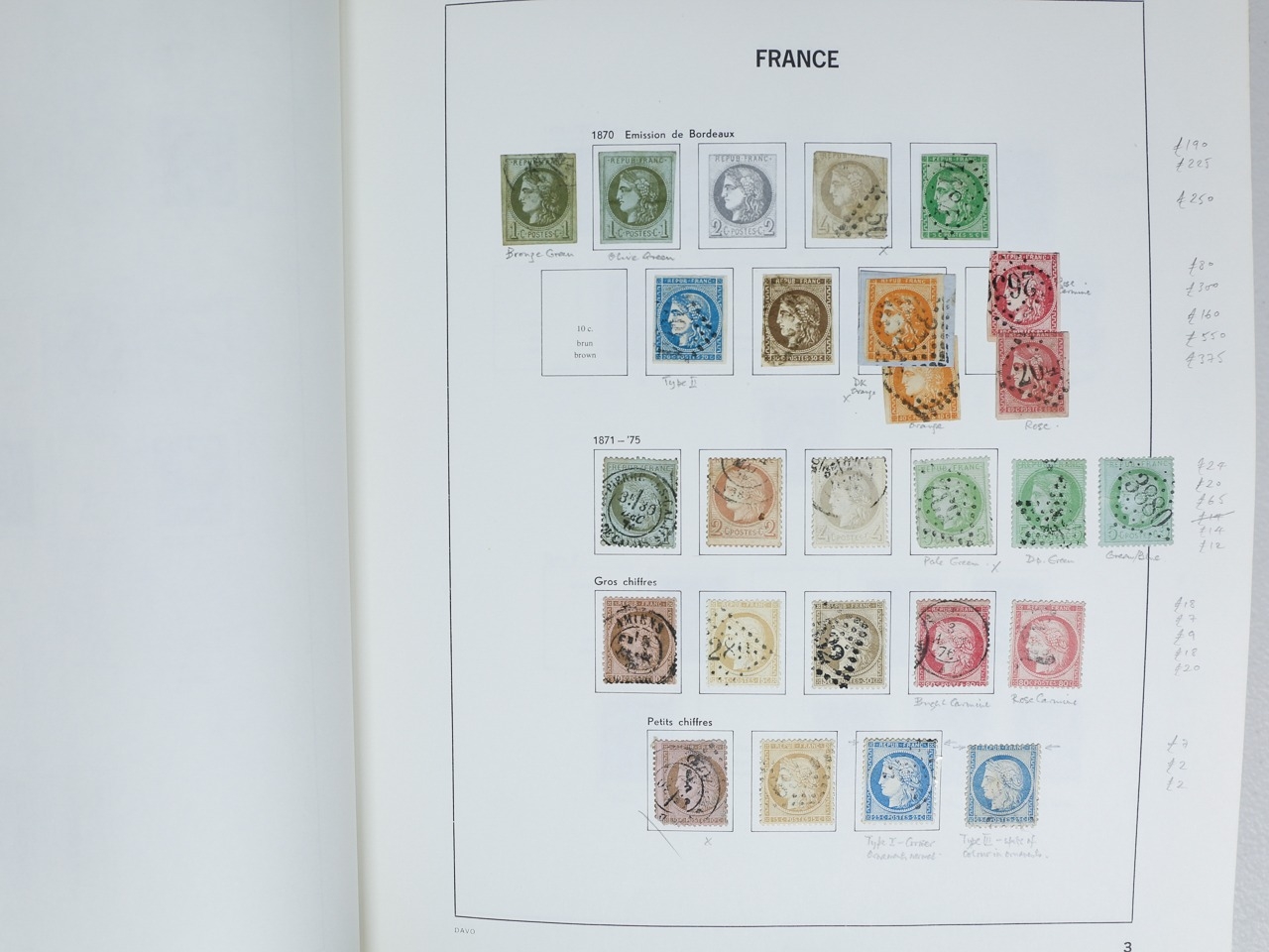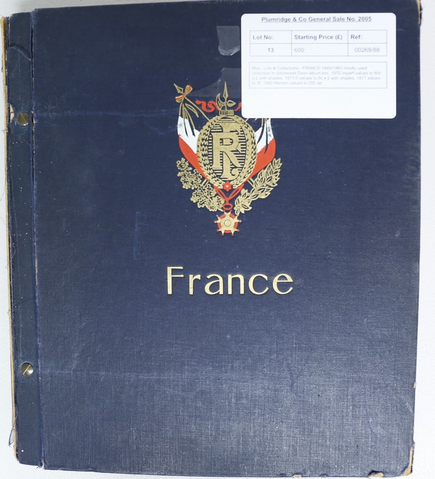Misc. Lots & Collections FRANCE 1849/1983 mostly used collection in distressed Davo album incl. 1870 imperf values to 80c x 2 with shades, 1871/5 values to 8c x 2 with shades, 1877 values to 5f, 1900 Merson values to 20f, large range of later Defin., substantial selection of Commem. issues with many sets, mostly fine, STC £11,100 (Ref: 00269/88)
