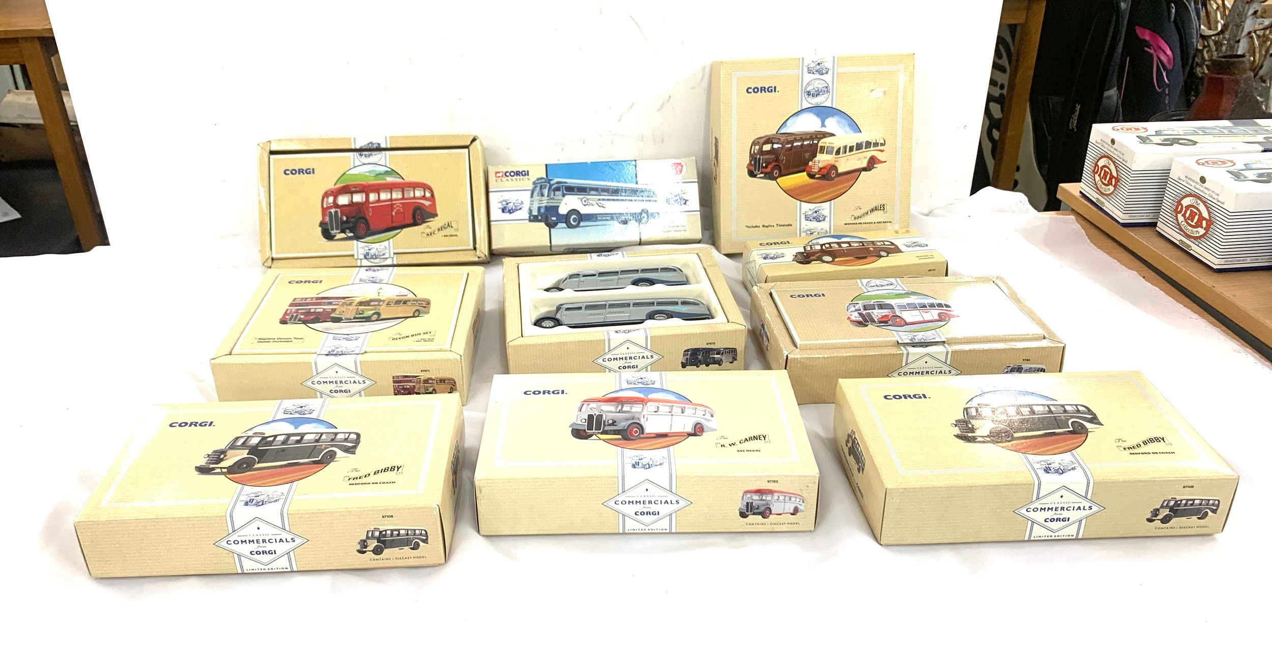 Selection of ten boxed corgi Commercials diecast vehicles includes Yellow Coach, Fred Biddy etc