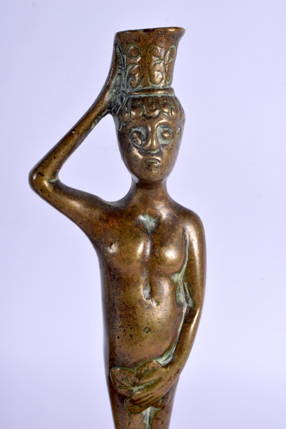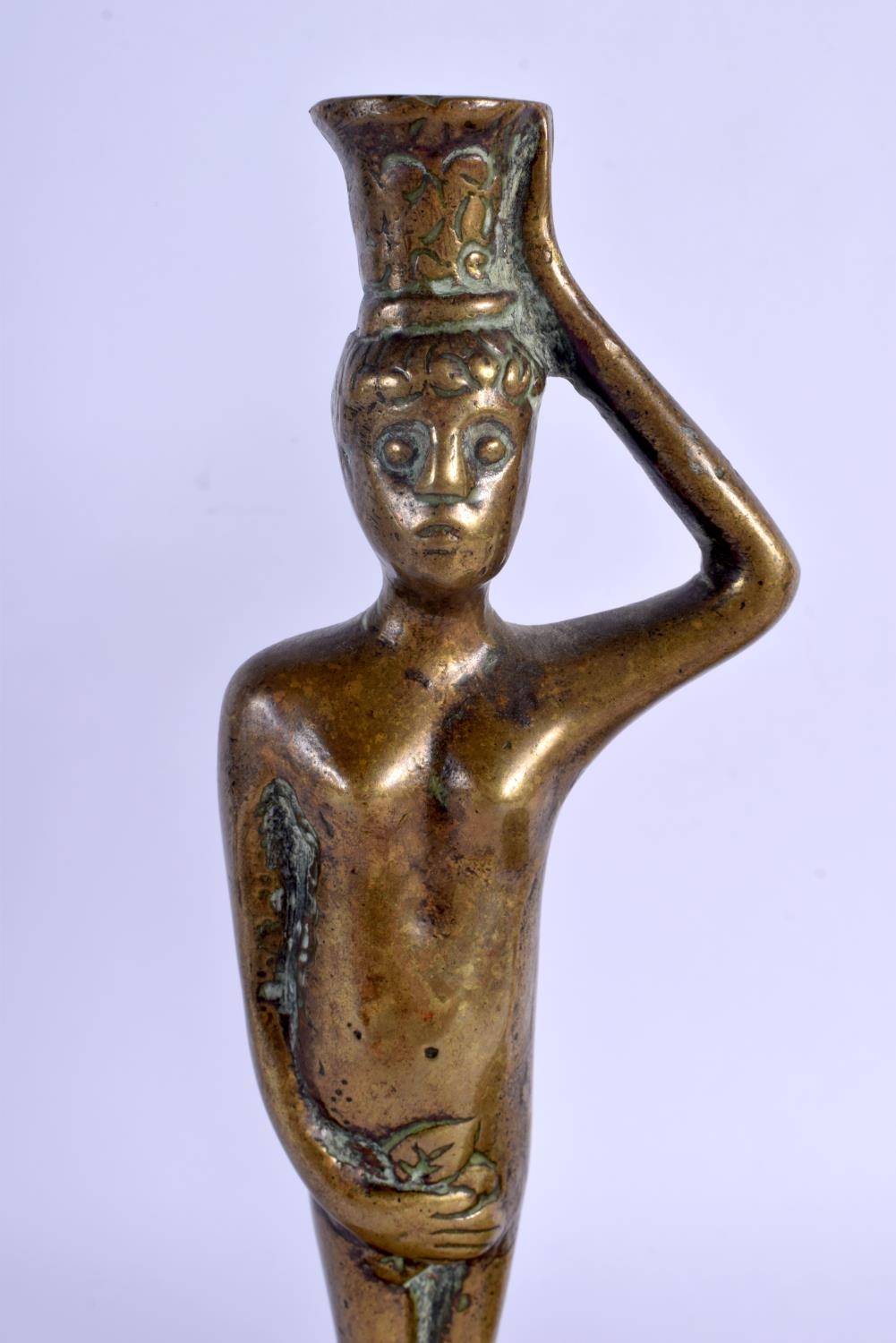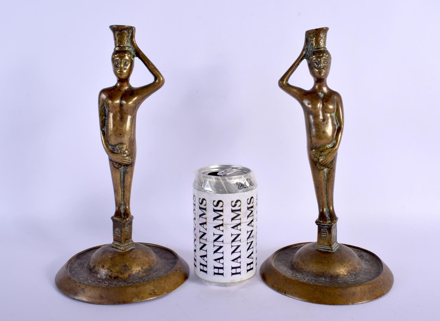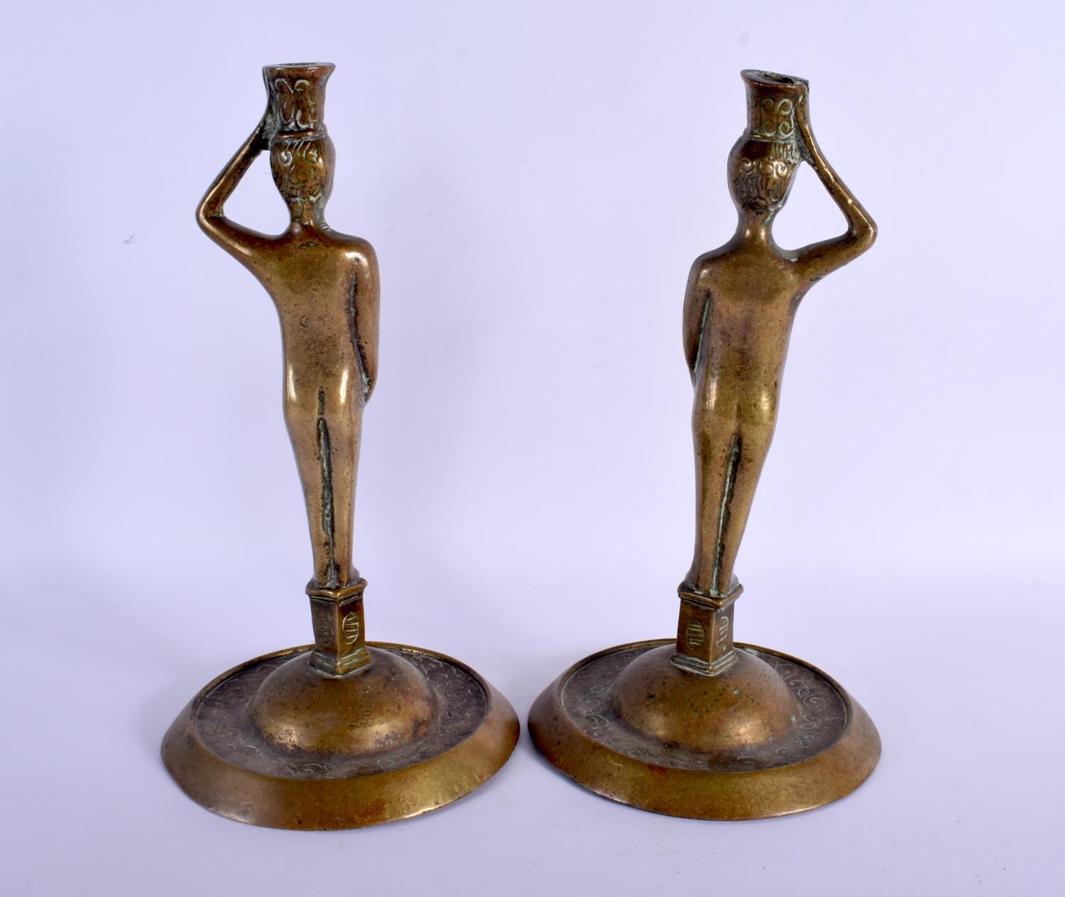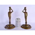 A PAIR OF 17TH/18TH CENTURY EUROPEAN BRONZE CANDLESTICKS modelled as Adam & Eve. 27 cm high.