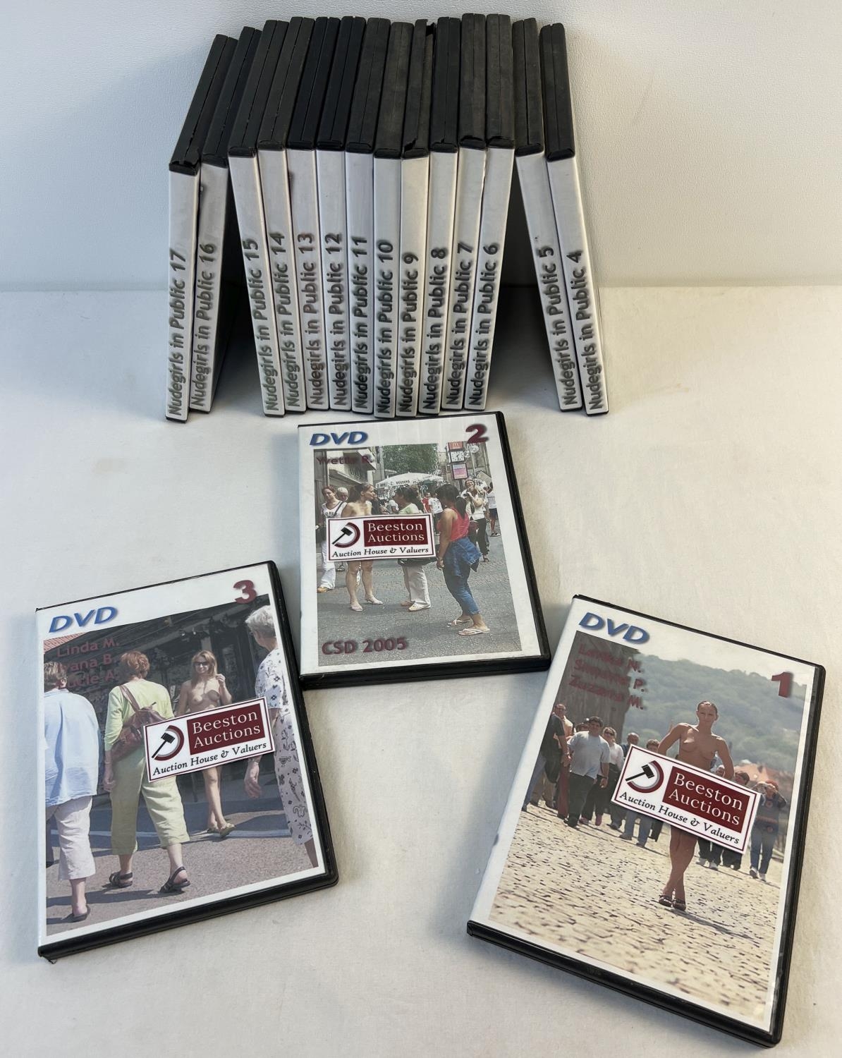 17 consecutive 'Nude Girls in Public' adult erotic DVD's from Sven Mose Produktions. All in plastic cases. Comprising DVD's 1 - 17.