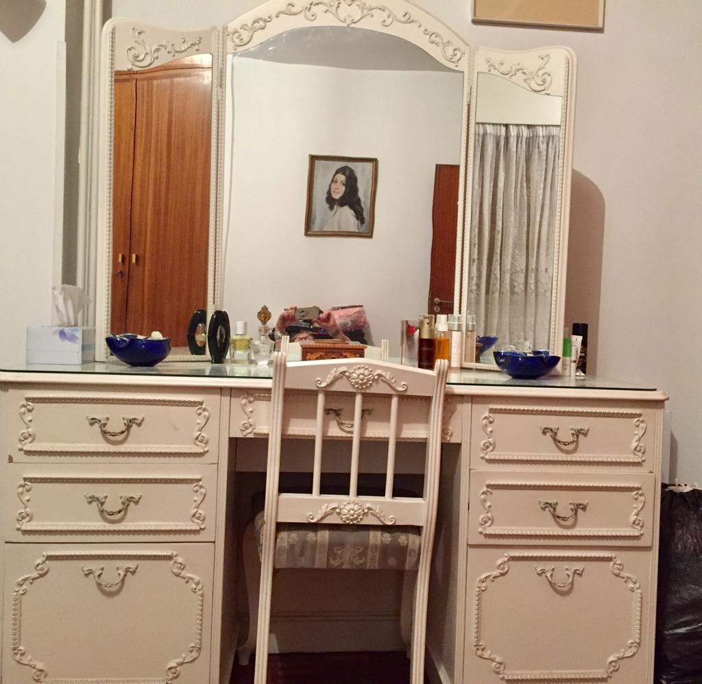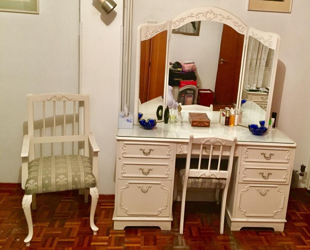 Vintage Ornate Wood Dressing Table with Matching Chair