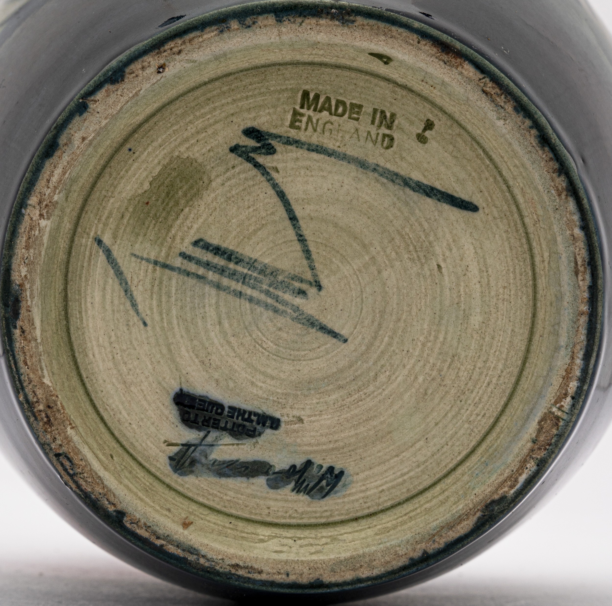 Pink and purple Anemones on a green ground graduating to blue, signed Walter Moorcroft in blue, impressed 'Potters to the Queen'
