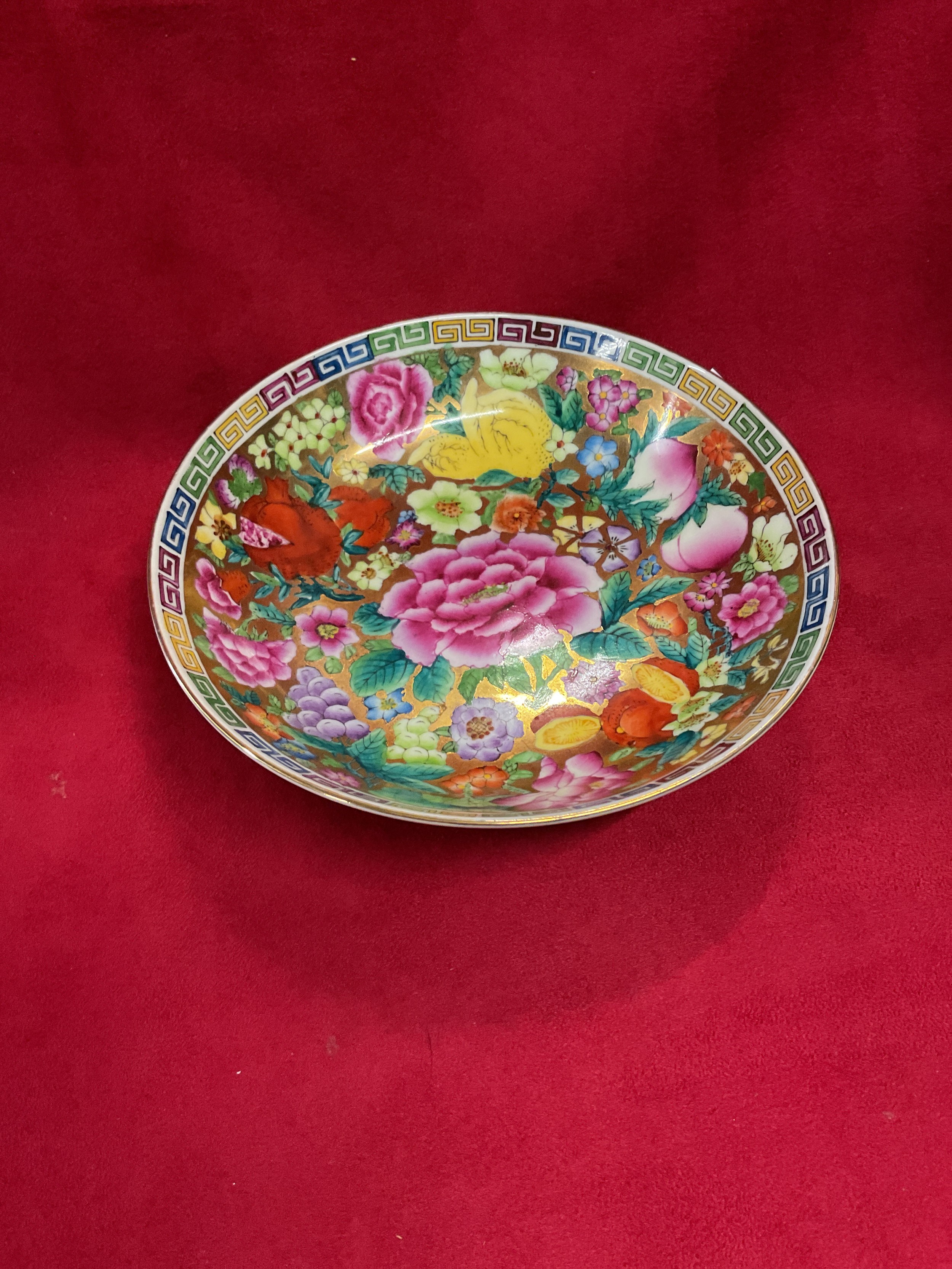 A Chinese millefleurs dish with an iron red mark