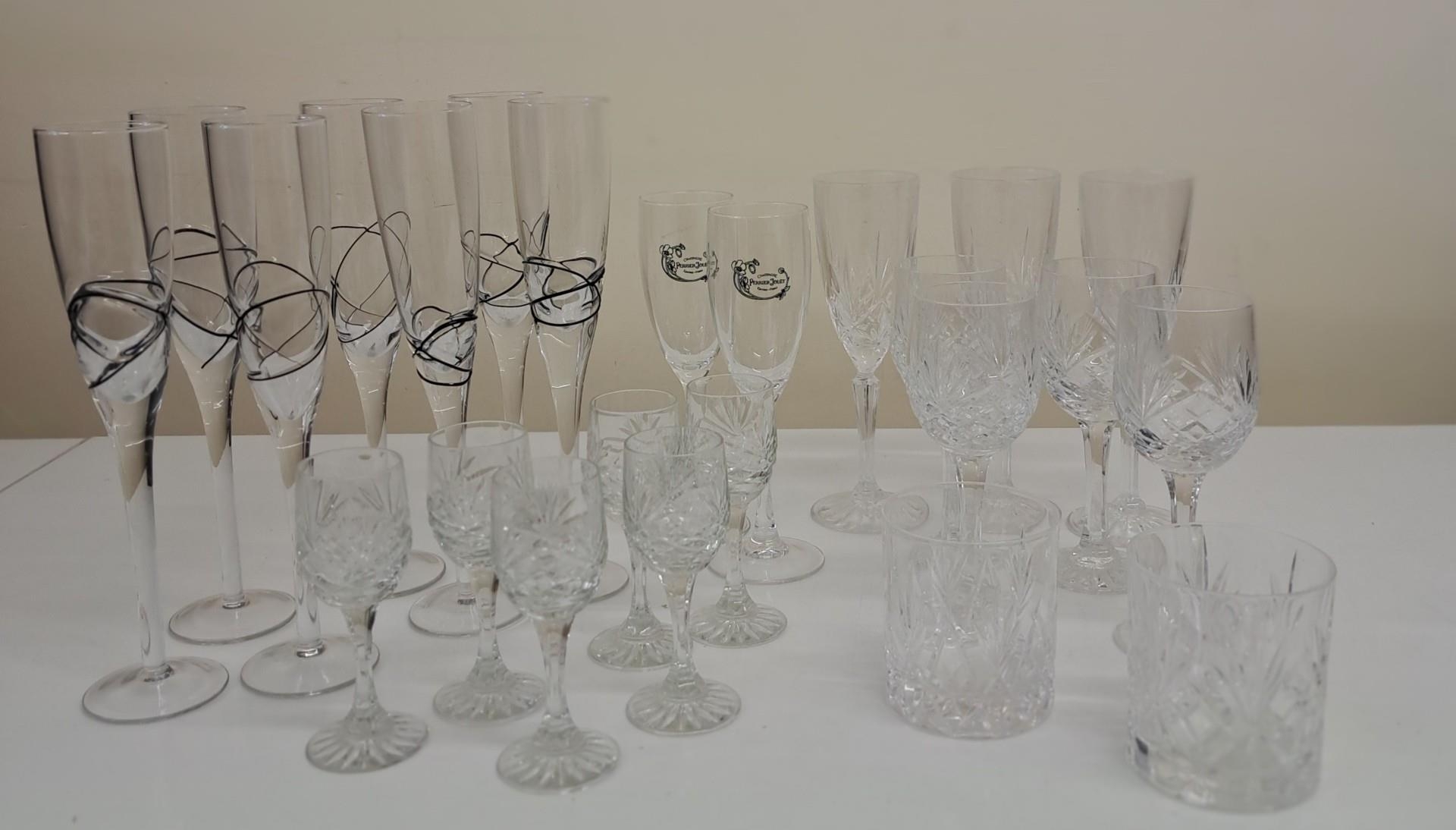 A mixed selection of good quality glassware. 24 items in total. To include champagne flutes, lead crystal tumblers etc.