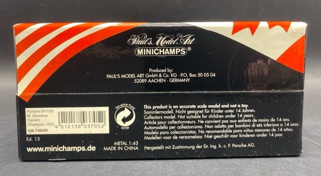 CanAm Series Minichamps 1:43 Porsche 917/30 M.Donuhue CanAm Champion 1973