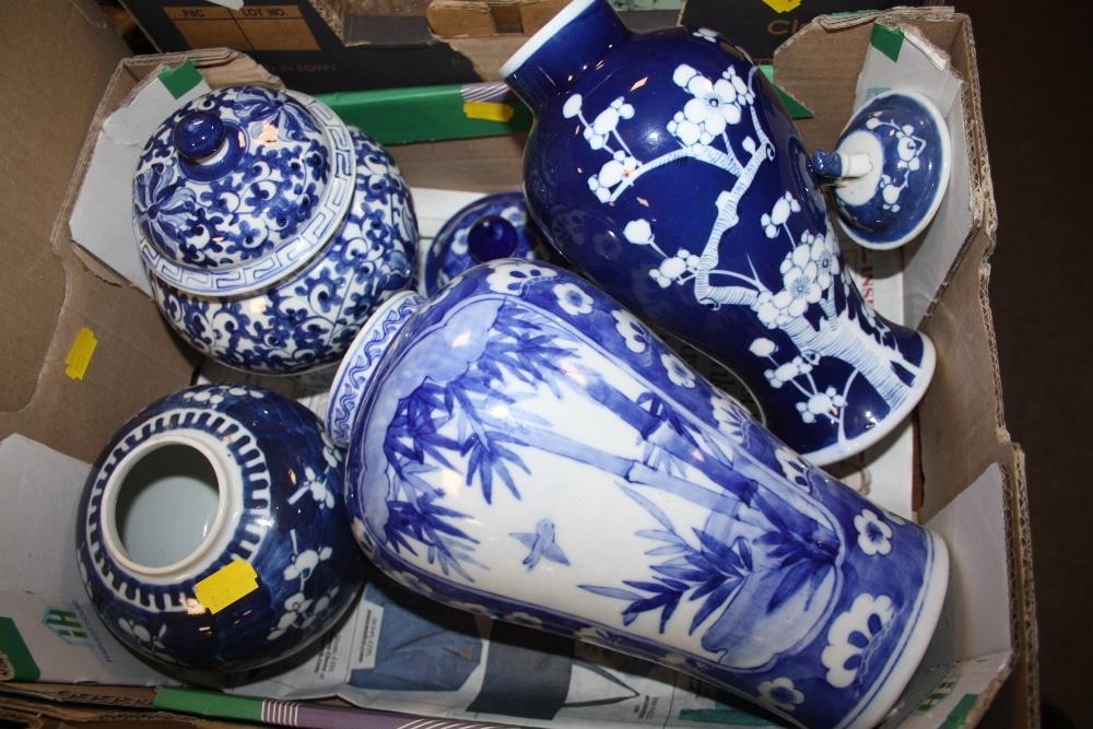 FOUR ORIENTAL BLUE AND WHITE VASES AND JARS