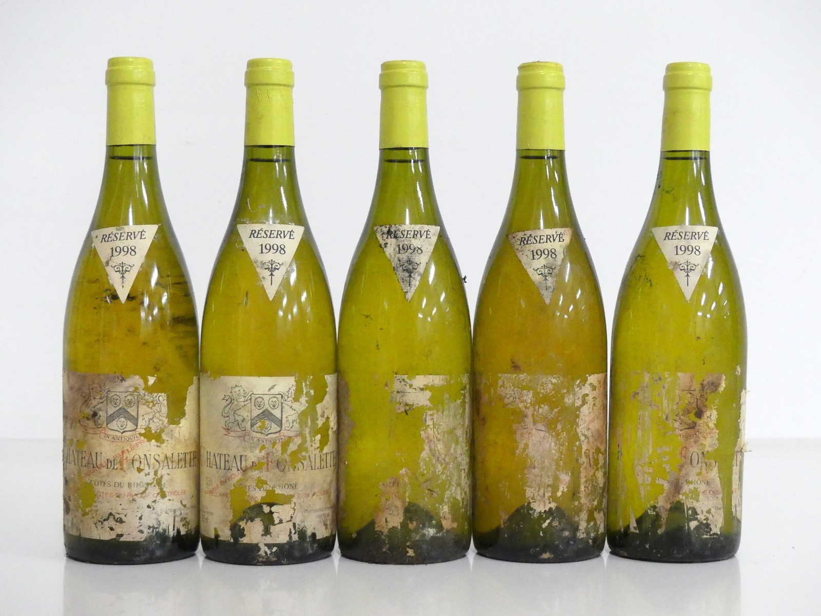 5 bts Ch. de Fonsalette Côtes-du-Rhone Réserve (blanc) 1998 3 hf, 2 hf/i.n, bs, cdl, pt dis