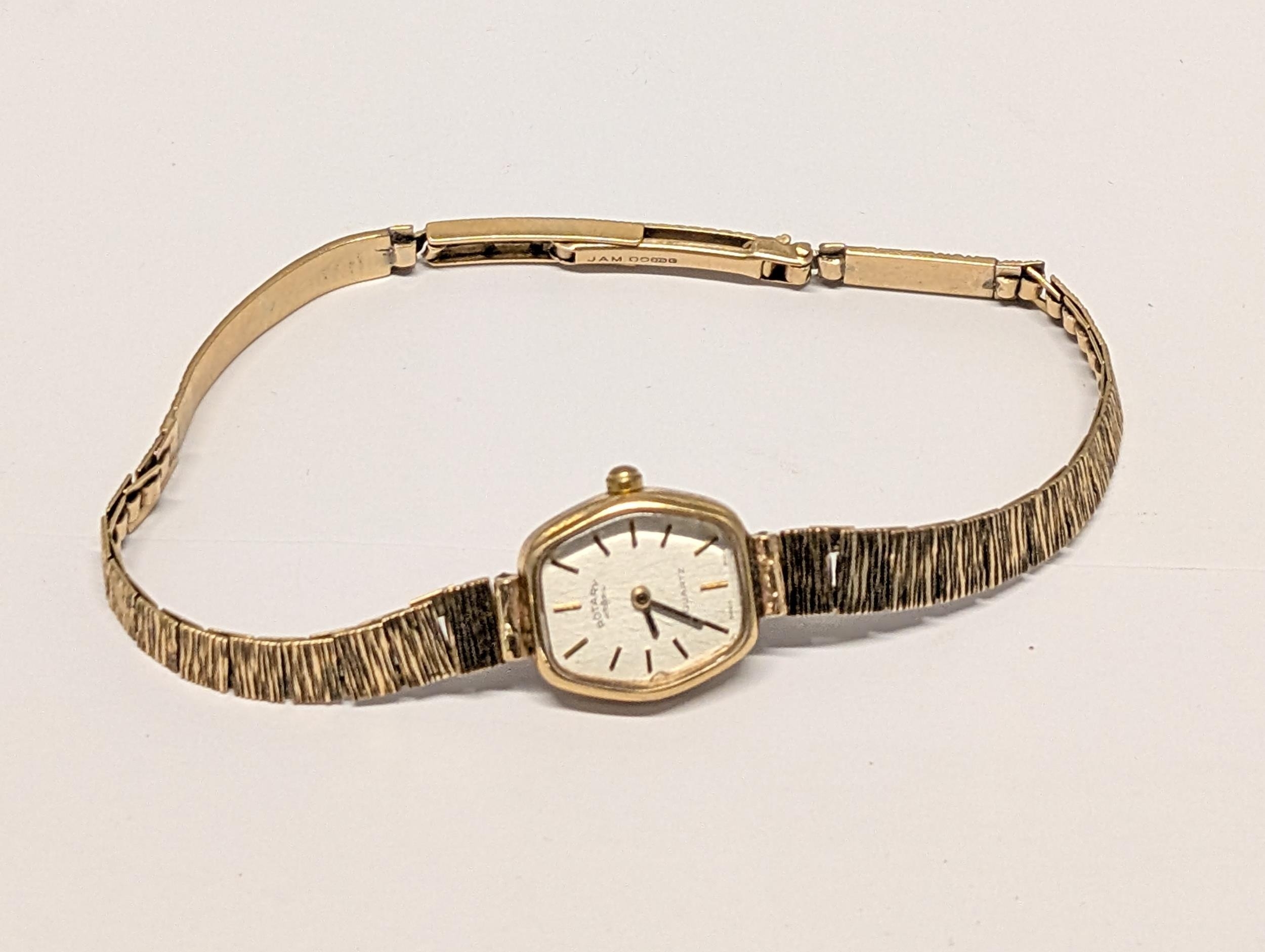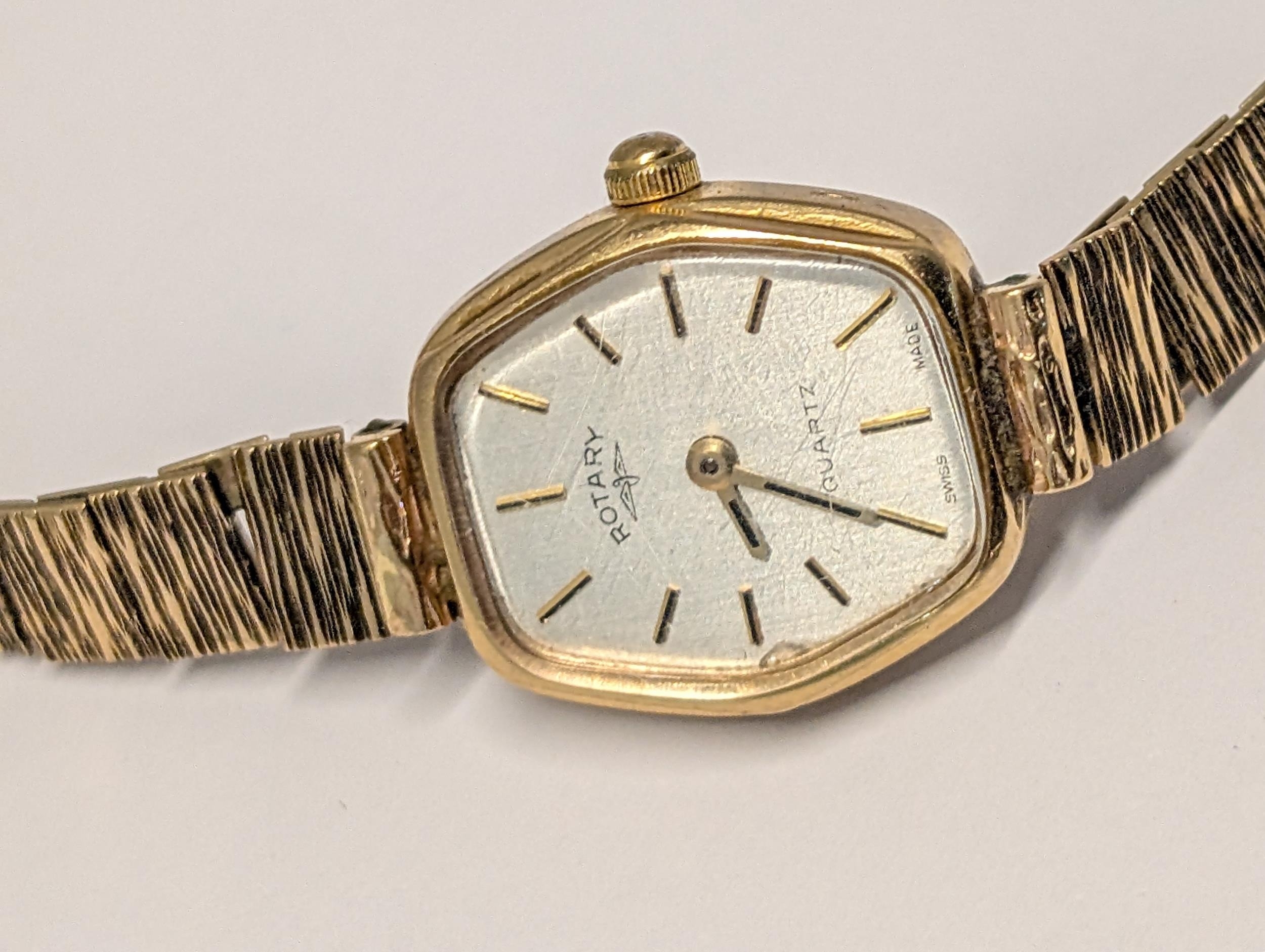 A Rotary Quartz 9ct Gold Ladies Wristwatch with Integrated 9ct Bracelet Gross Weight 17.34g
