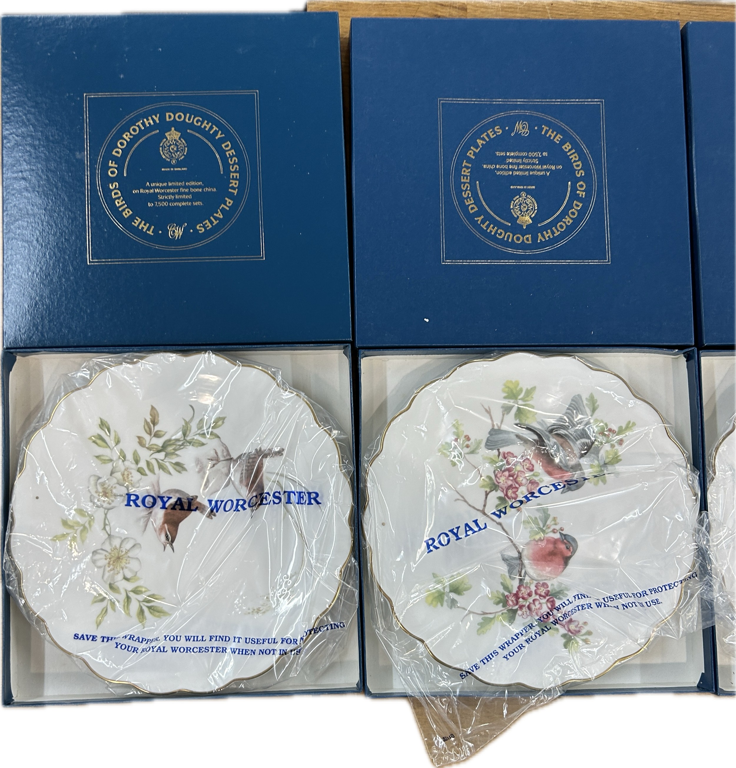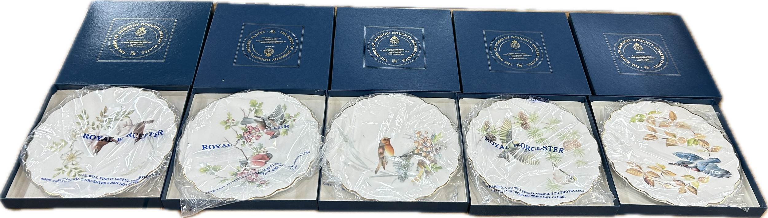 Five original boxed Royal Worcester The Birds of Dorothy Doughty desert plates