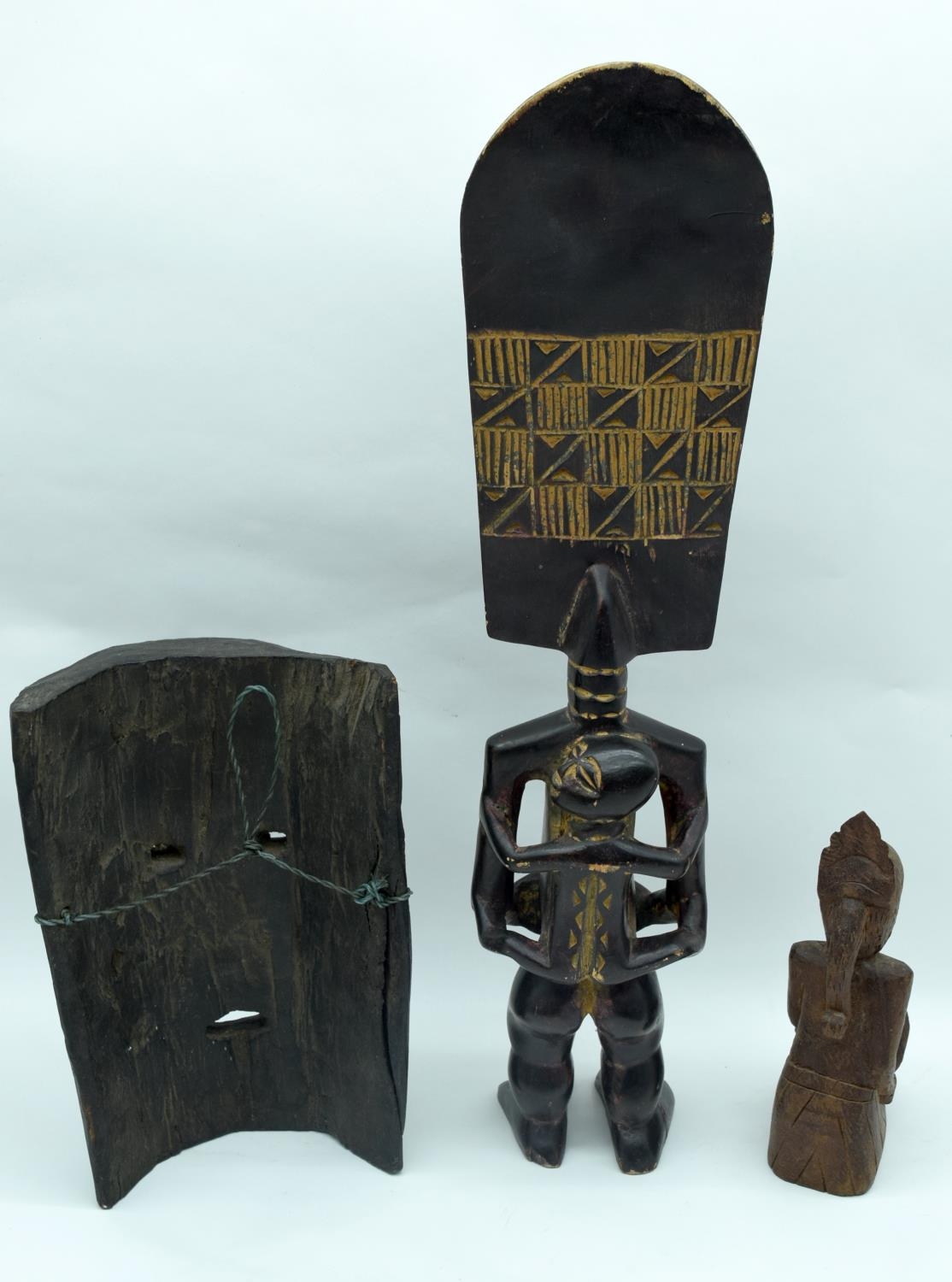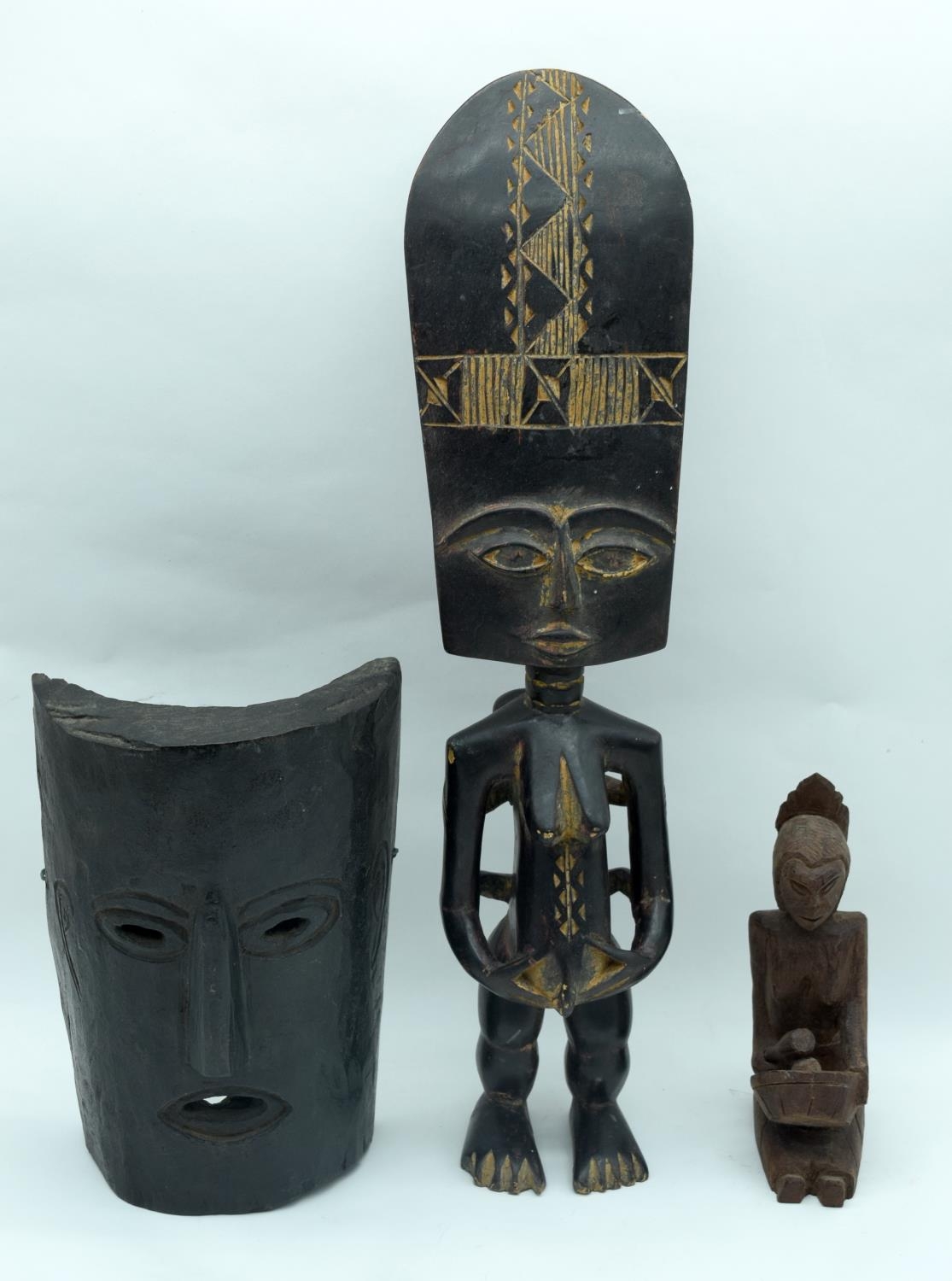 A African wooden fertility figure together with an African mask and figure 50cm (3).