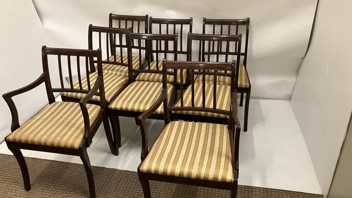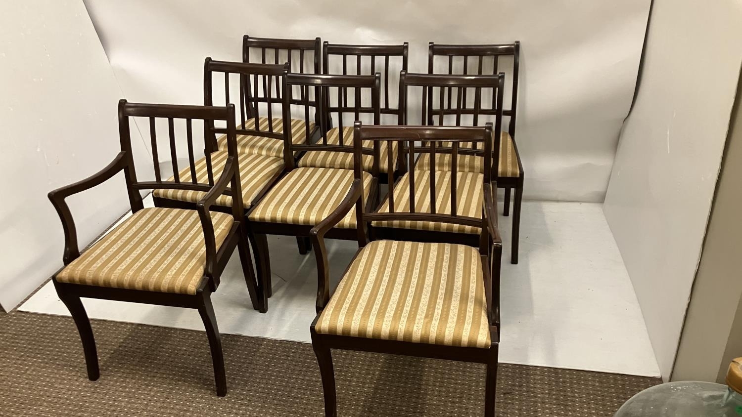 A set of 8 mahogany Cork style dining chairs. (6 singles + 2 carvers)