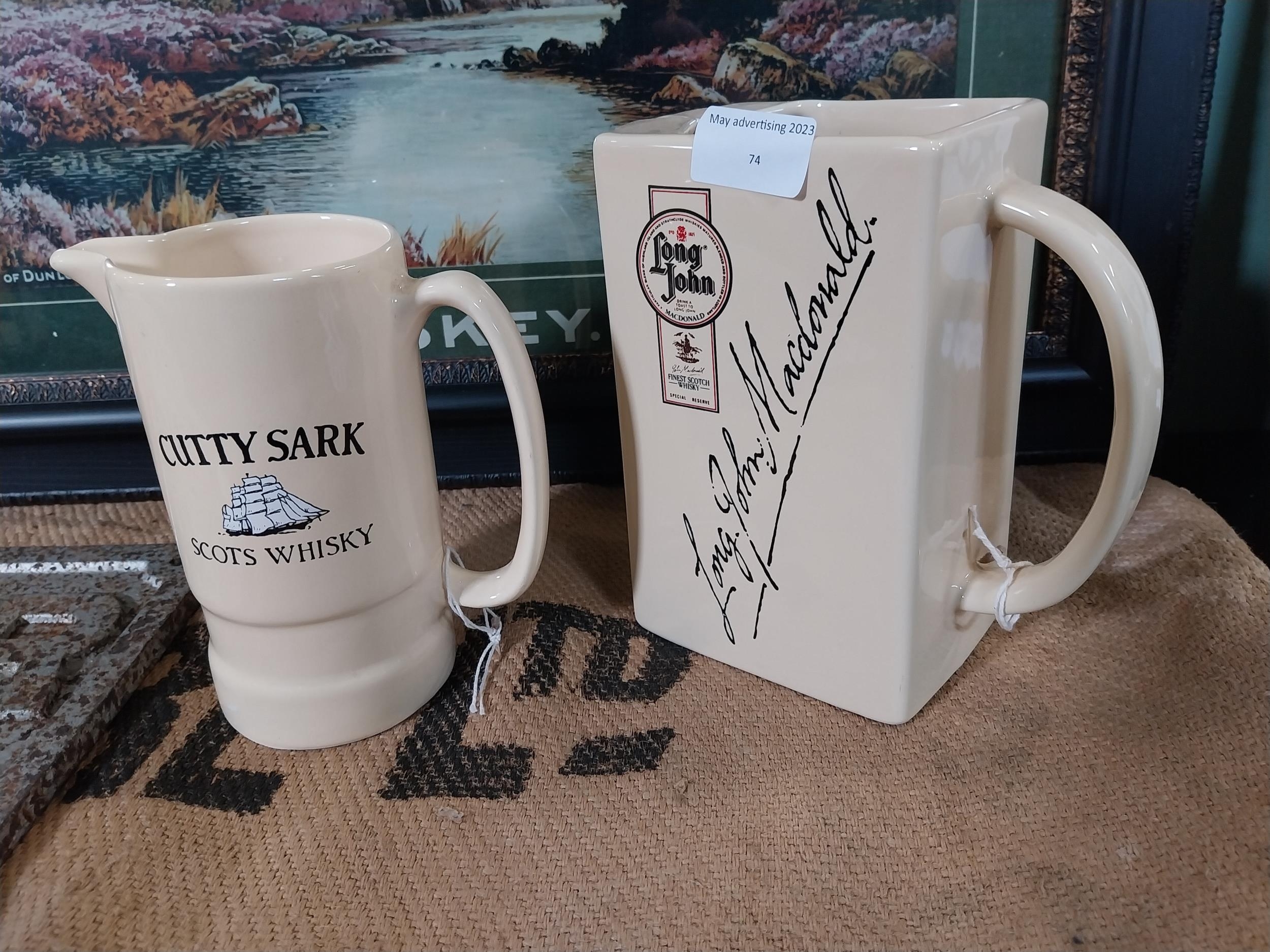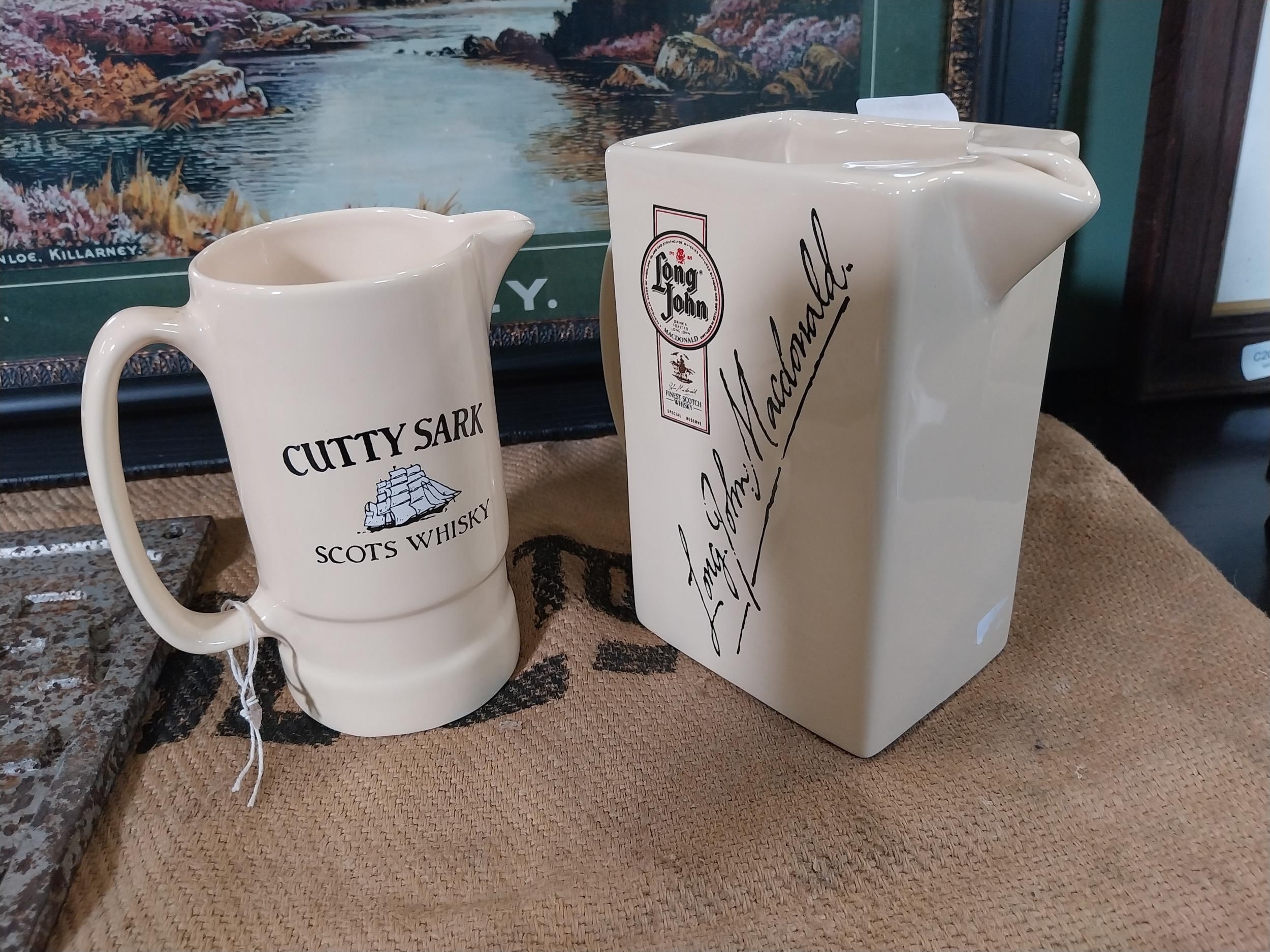 Cutty Sark and Long John McDonald Whiskey ceramic advertising jug. {16 cm H x 15 cm W x 9 cm D} and {29 cm H x 18 cm W x 9 cm D}
