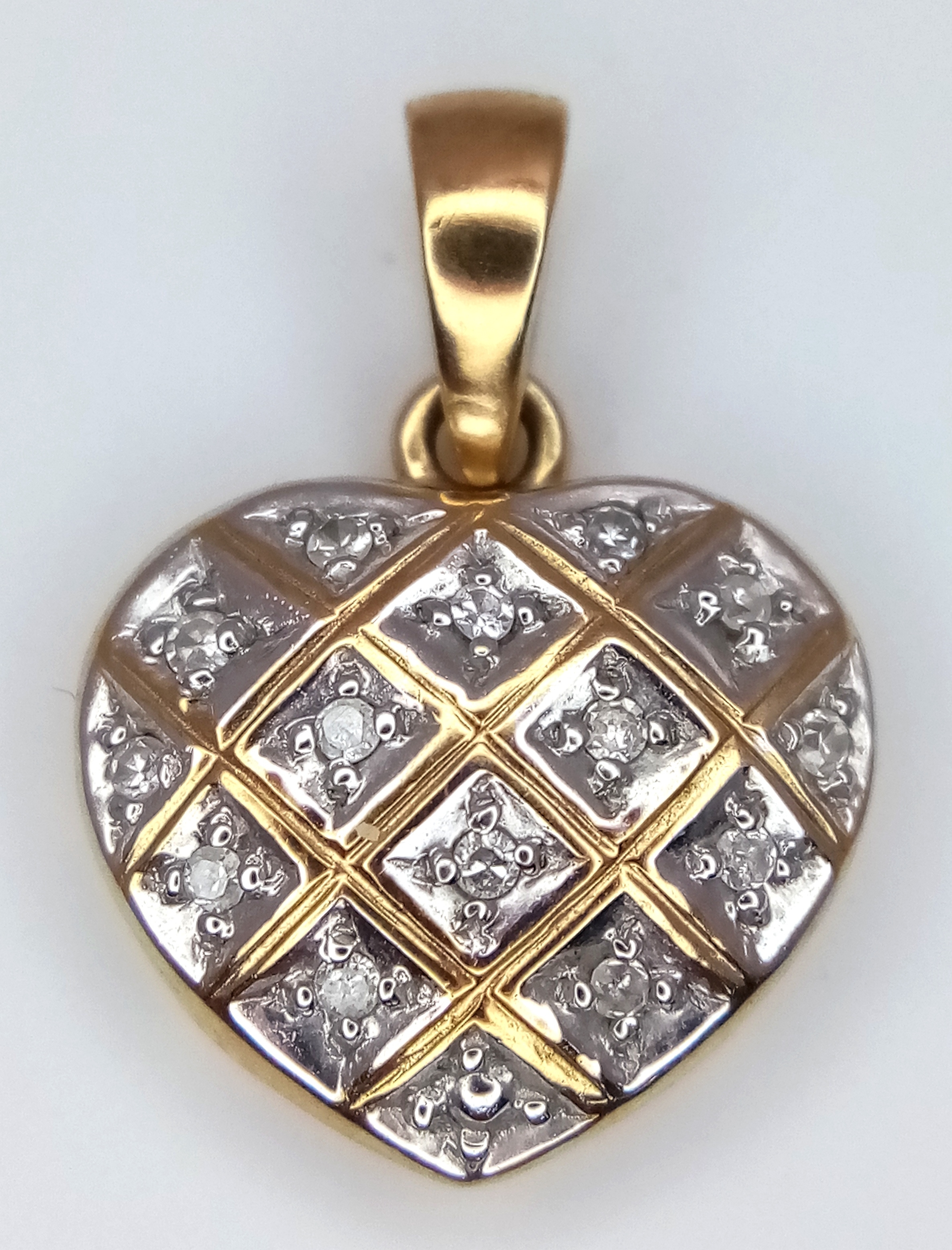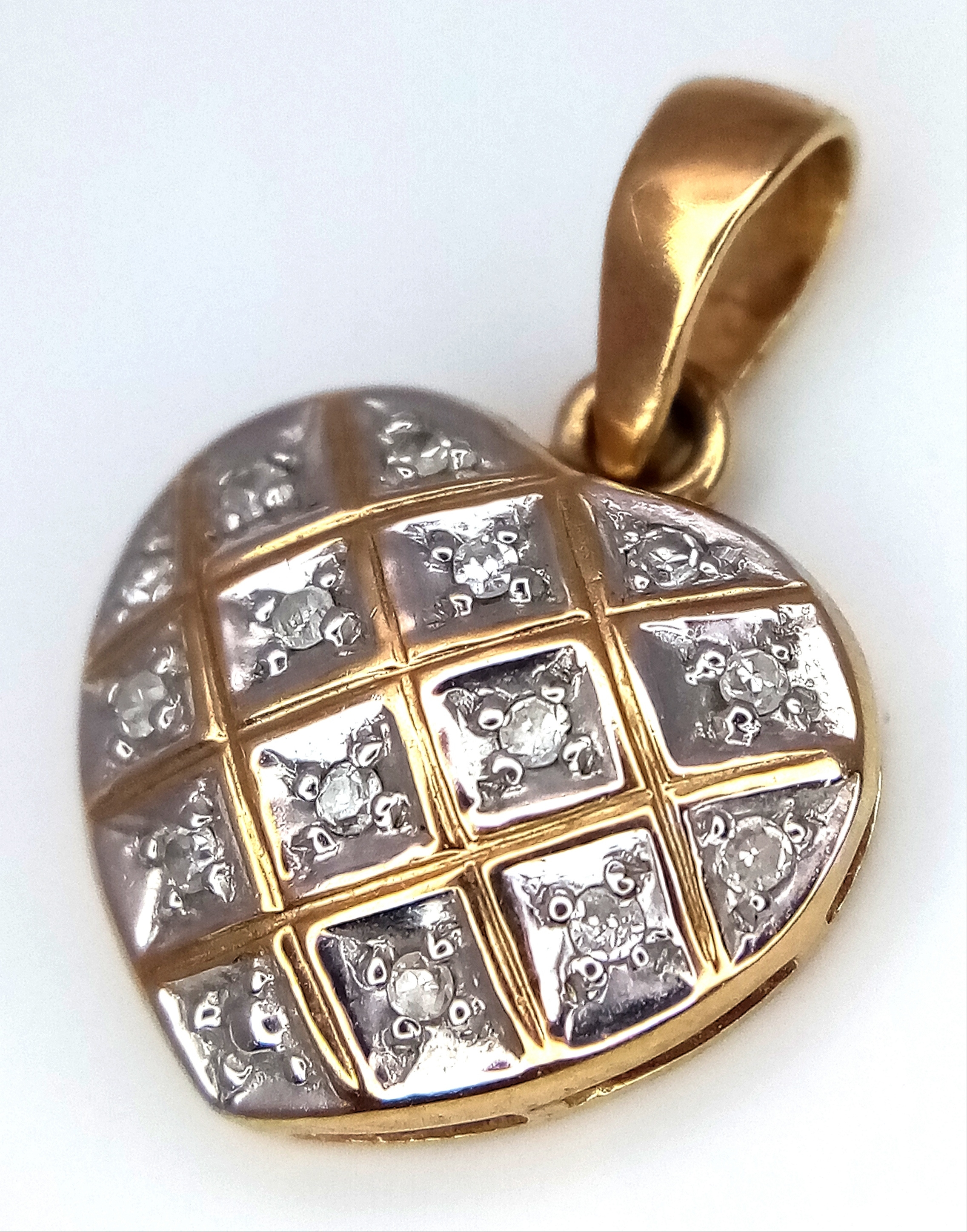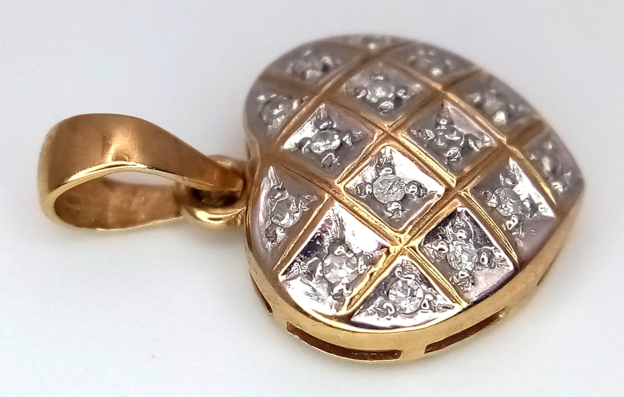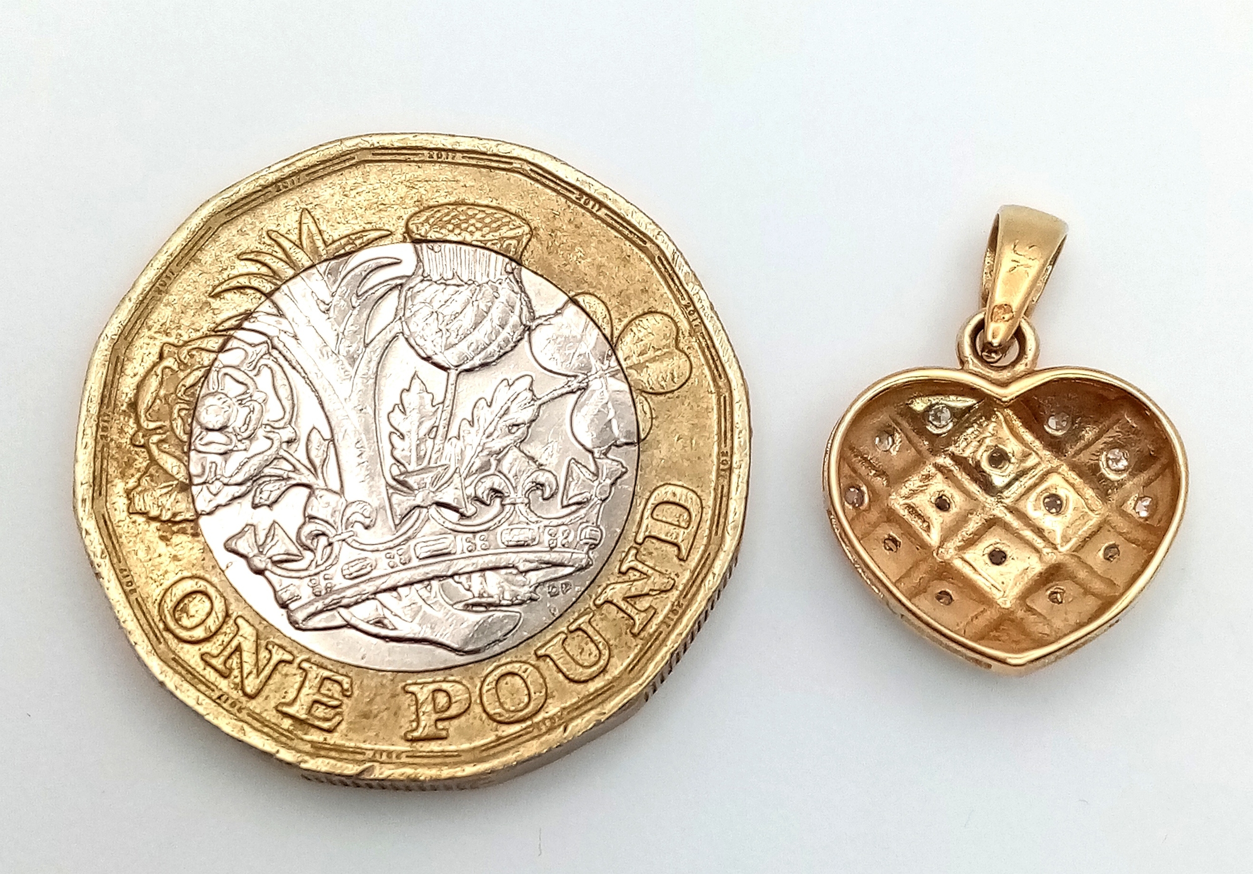 A 9K Yellow Gold Diamond Heart Pendant. 2cm. 0.95g.