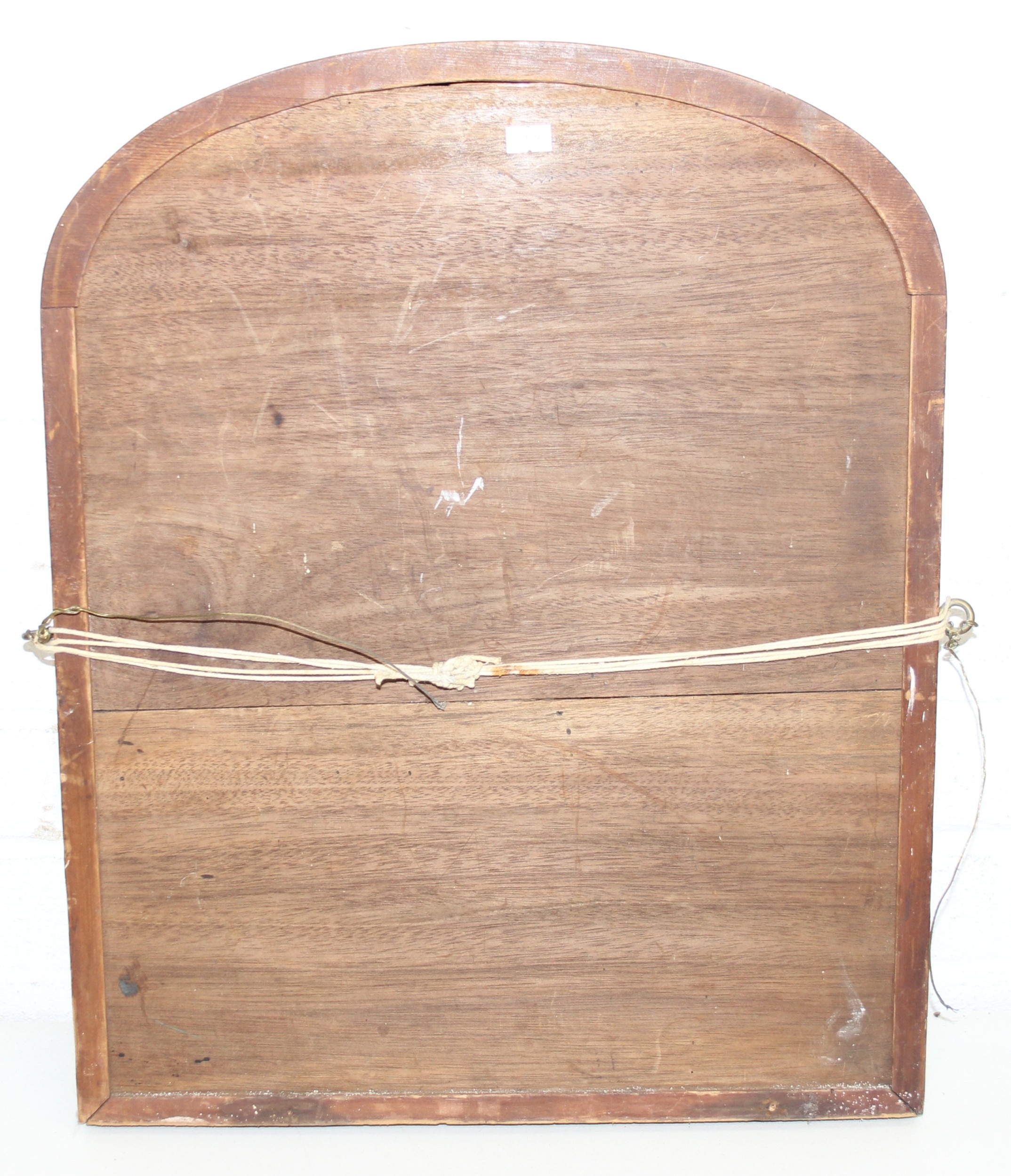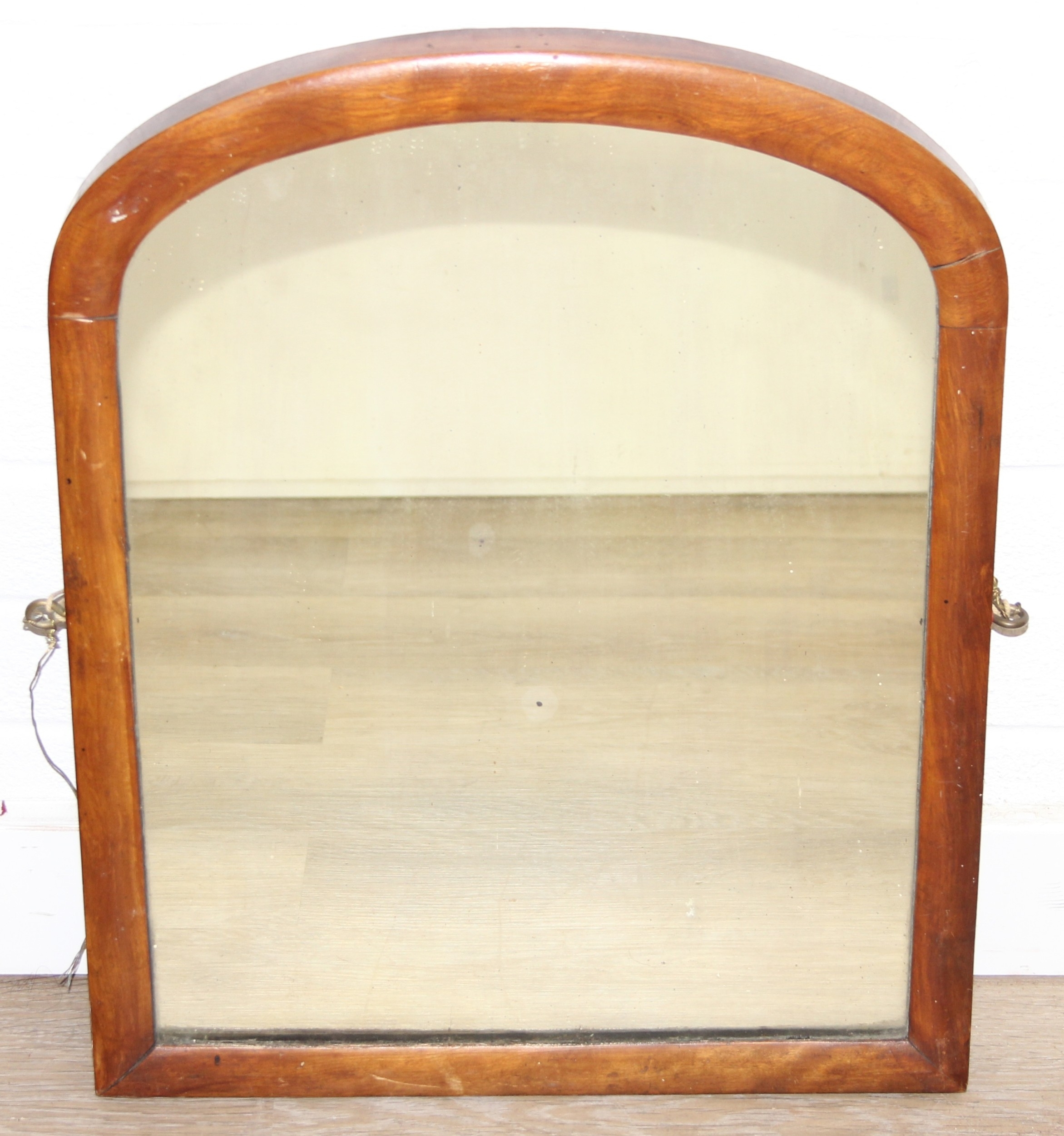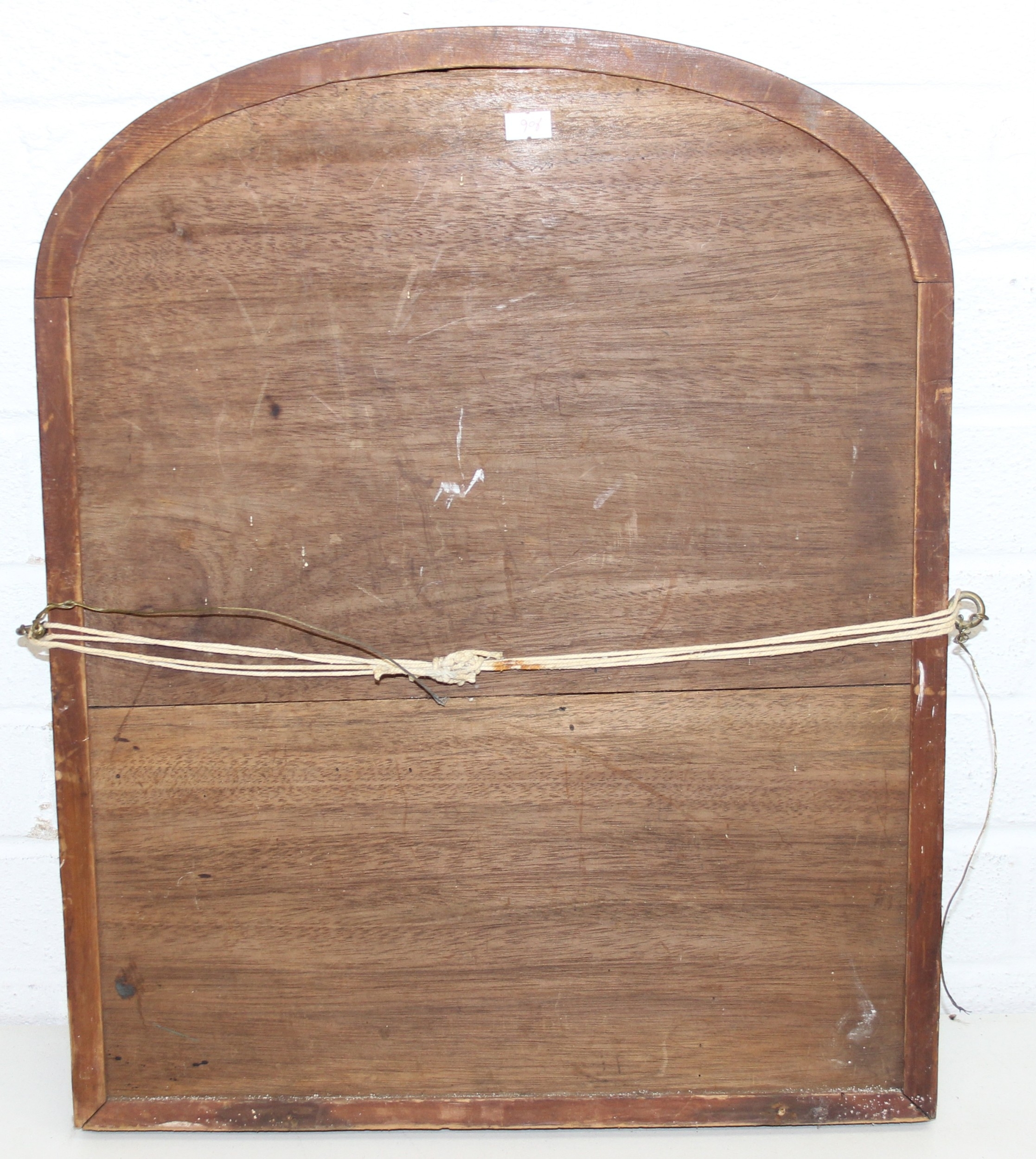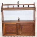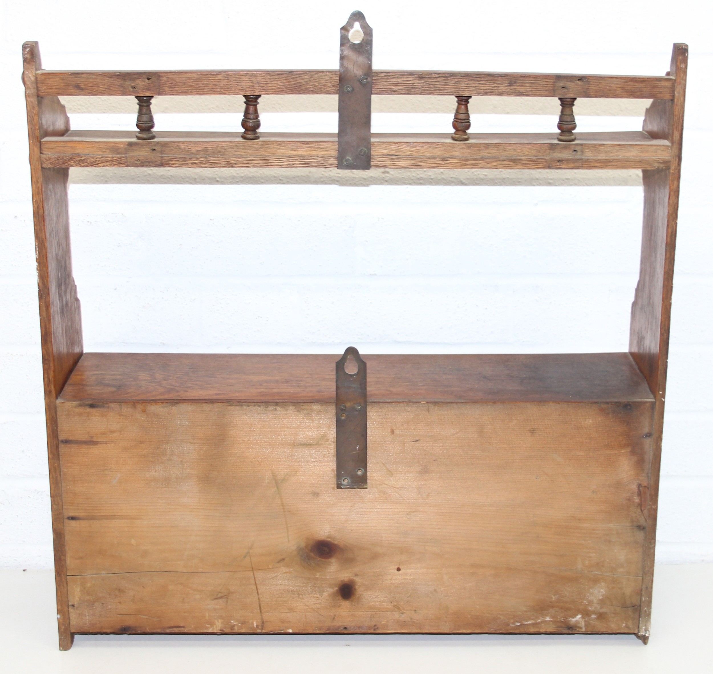 A small oak wall mounted cupboard and shelf unit, early 20th century, 58cm x 15cm x 60cm and a wall mirror with mahogany frame [2]