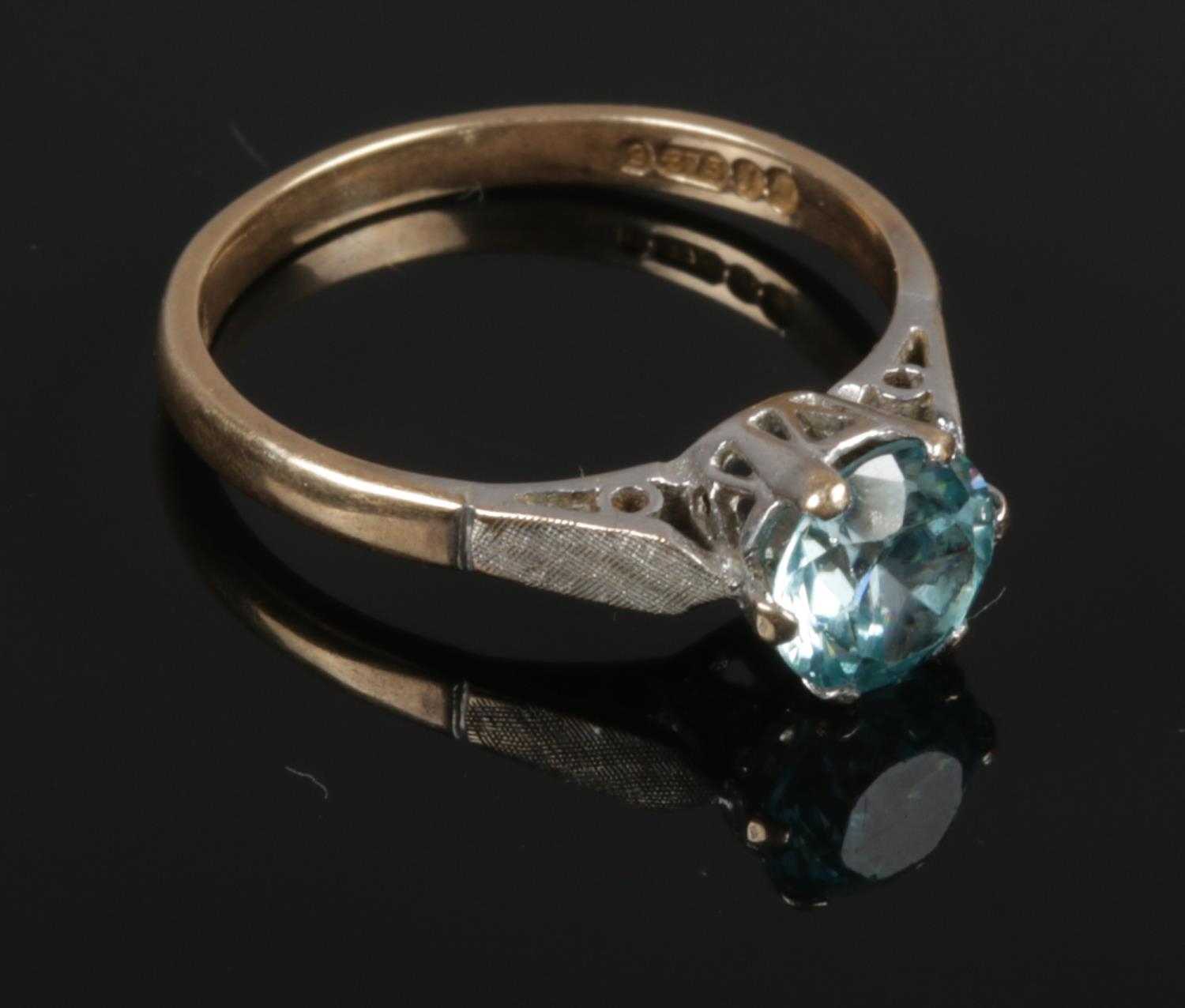 A 9ct gold blue zircon solitaire ring, assayed London 1966. Size M. 2.19g gross weight.