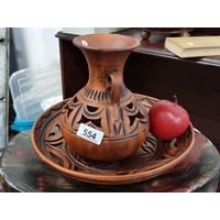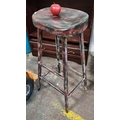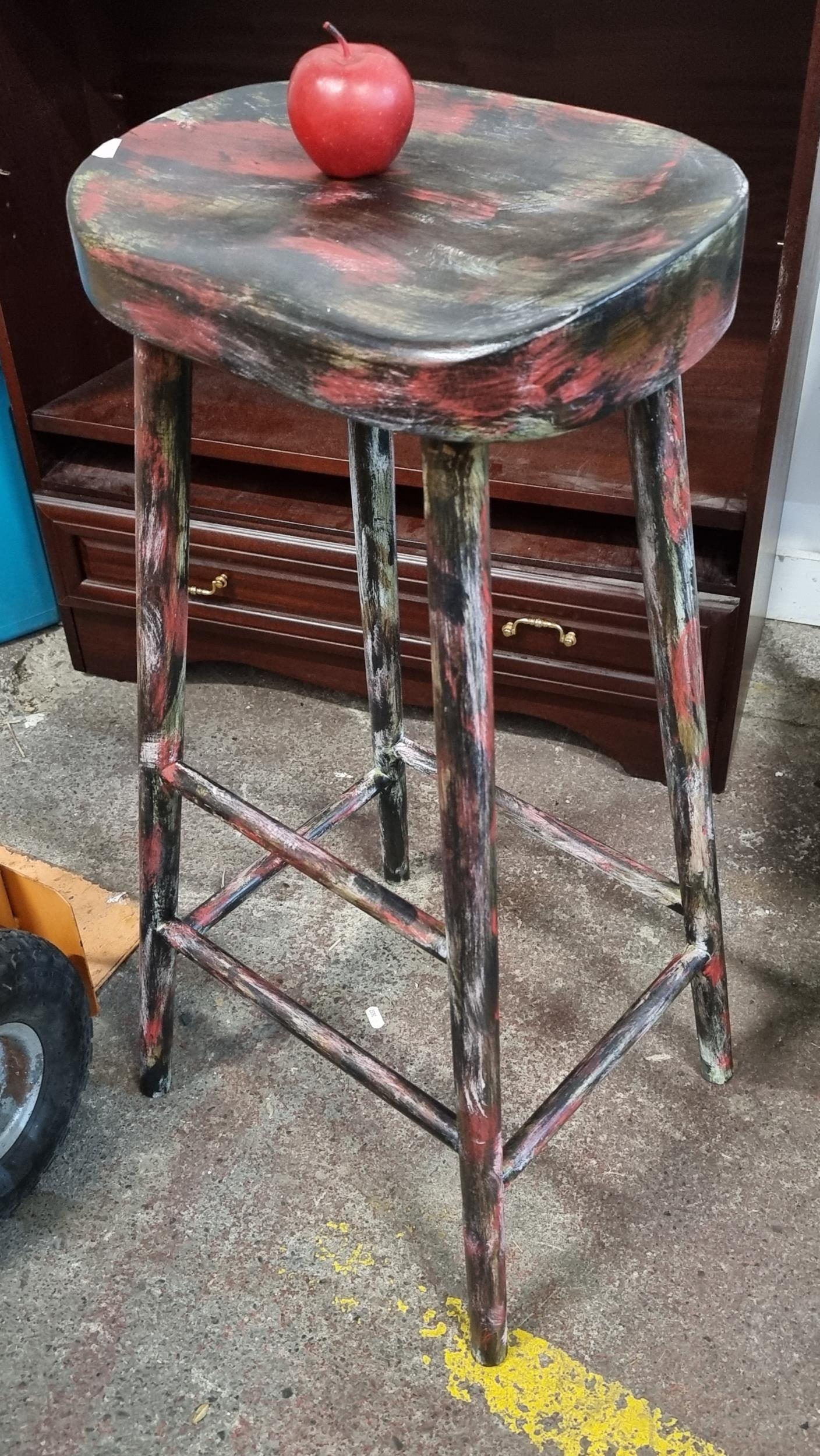 A tall wooden bar stool with an unusual brush coloured finish in red, black and gold for an added artsy effect. Mm:80cm tall