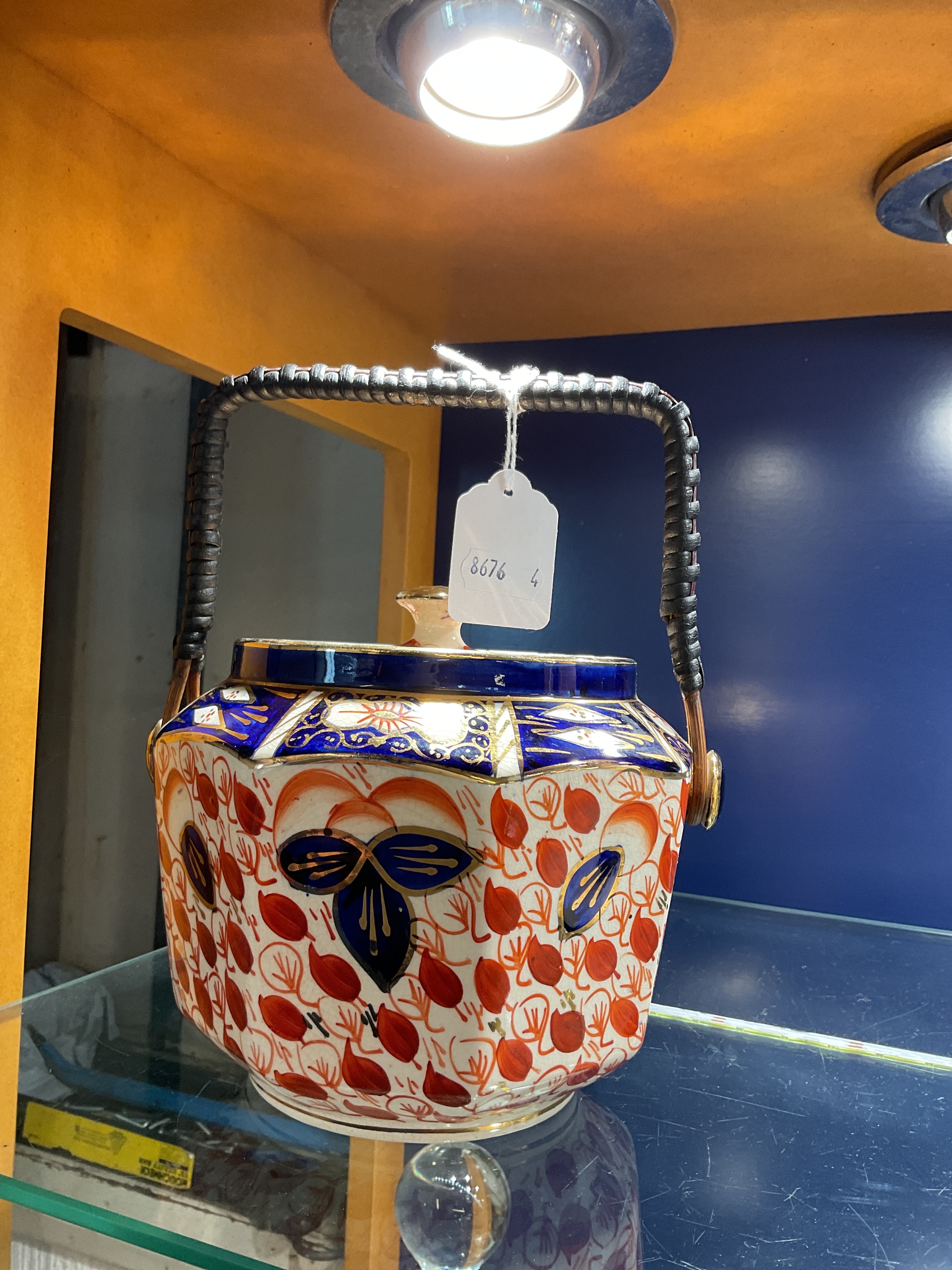 A Crown Derby ware Imari pattern biscuit barrel, A/F