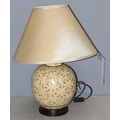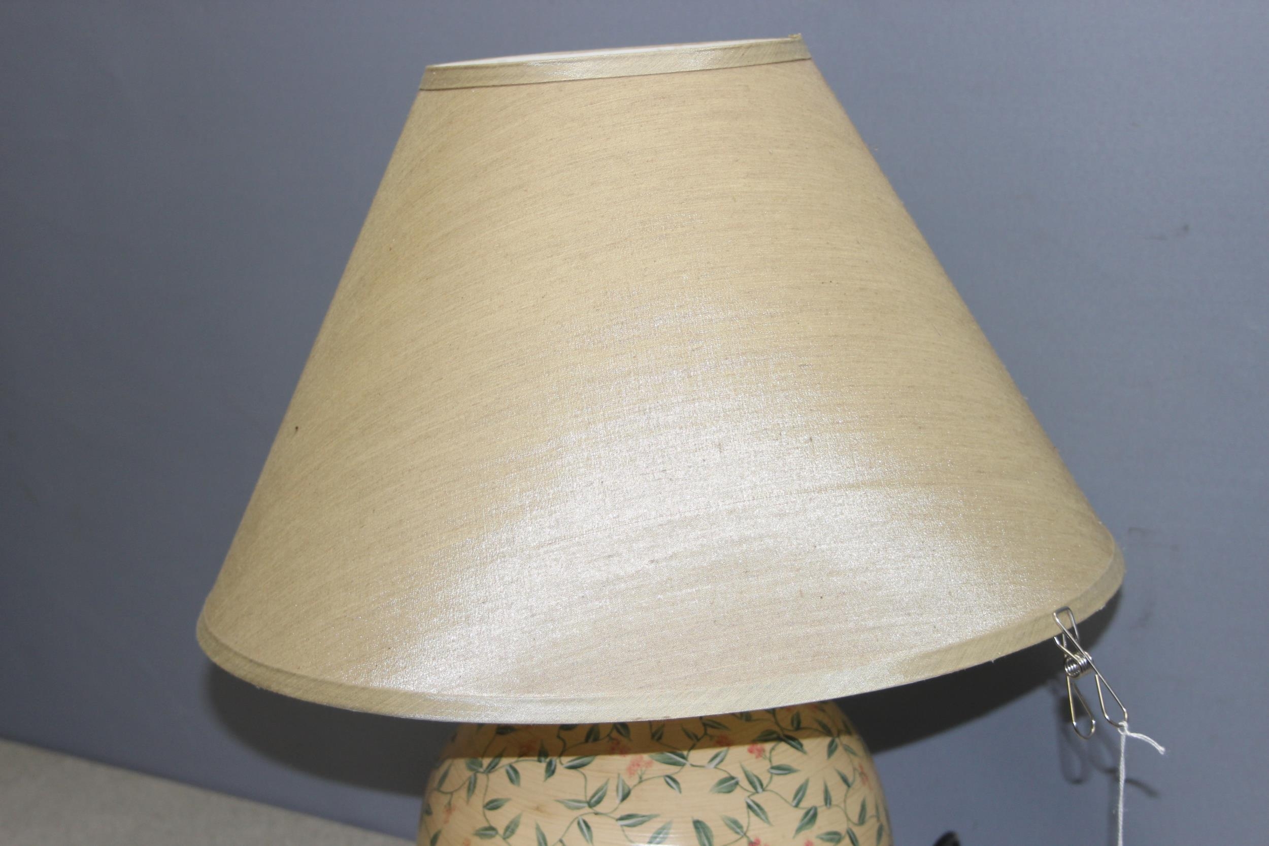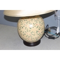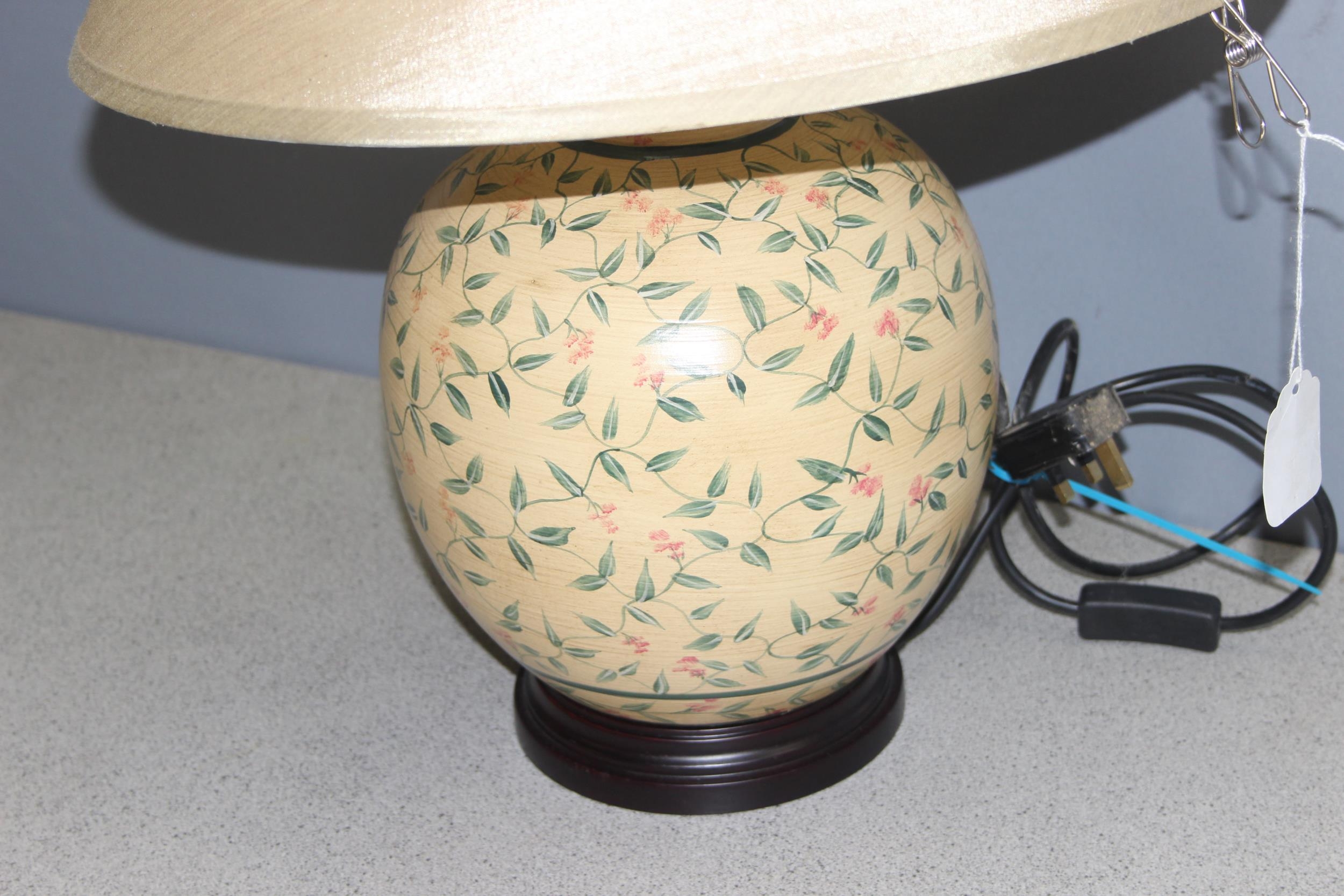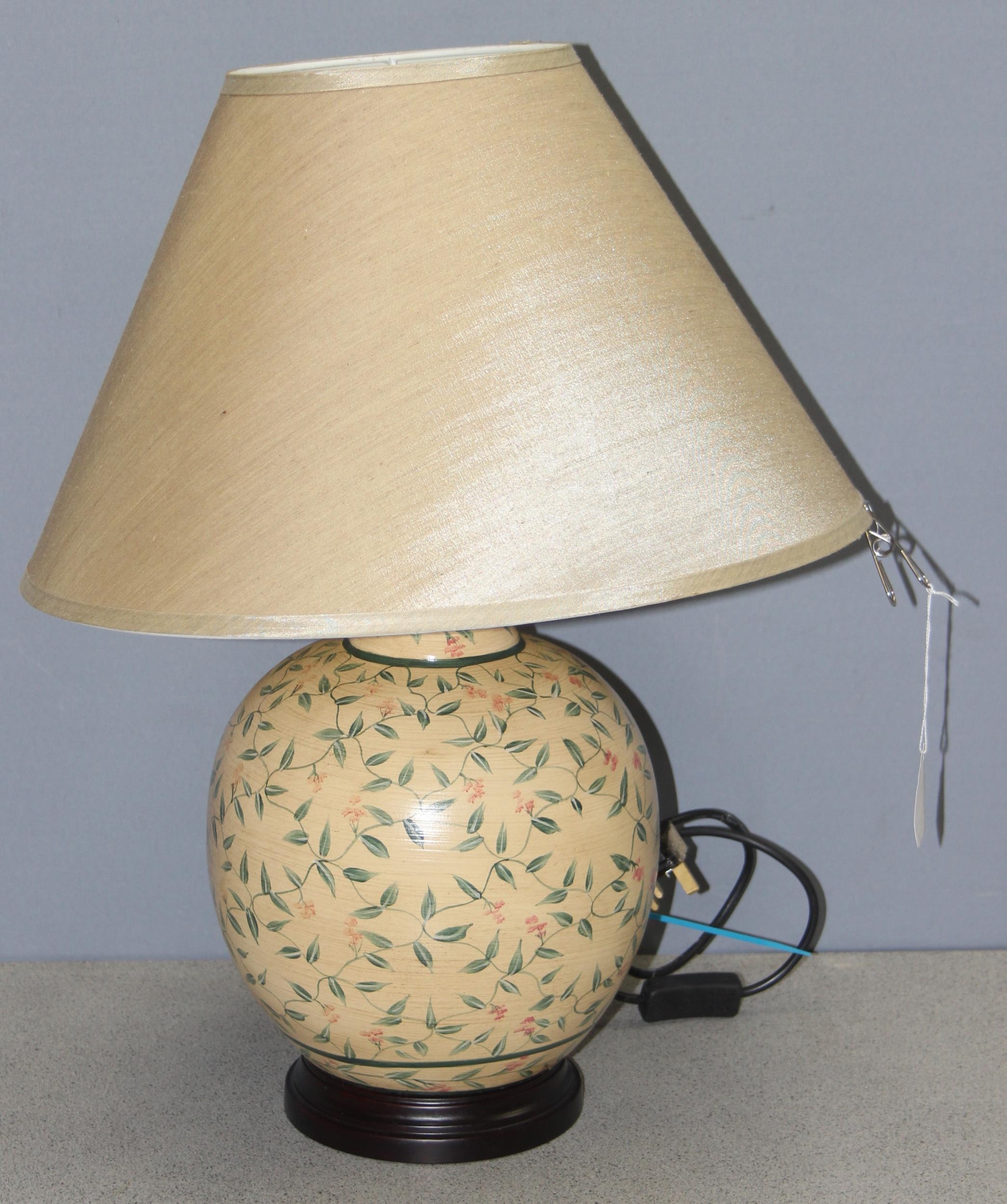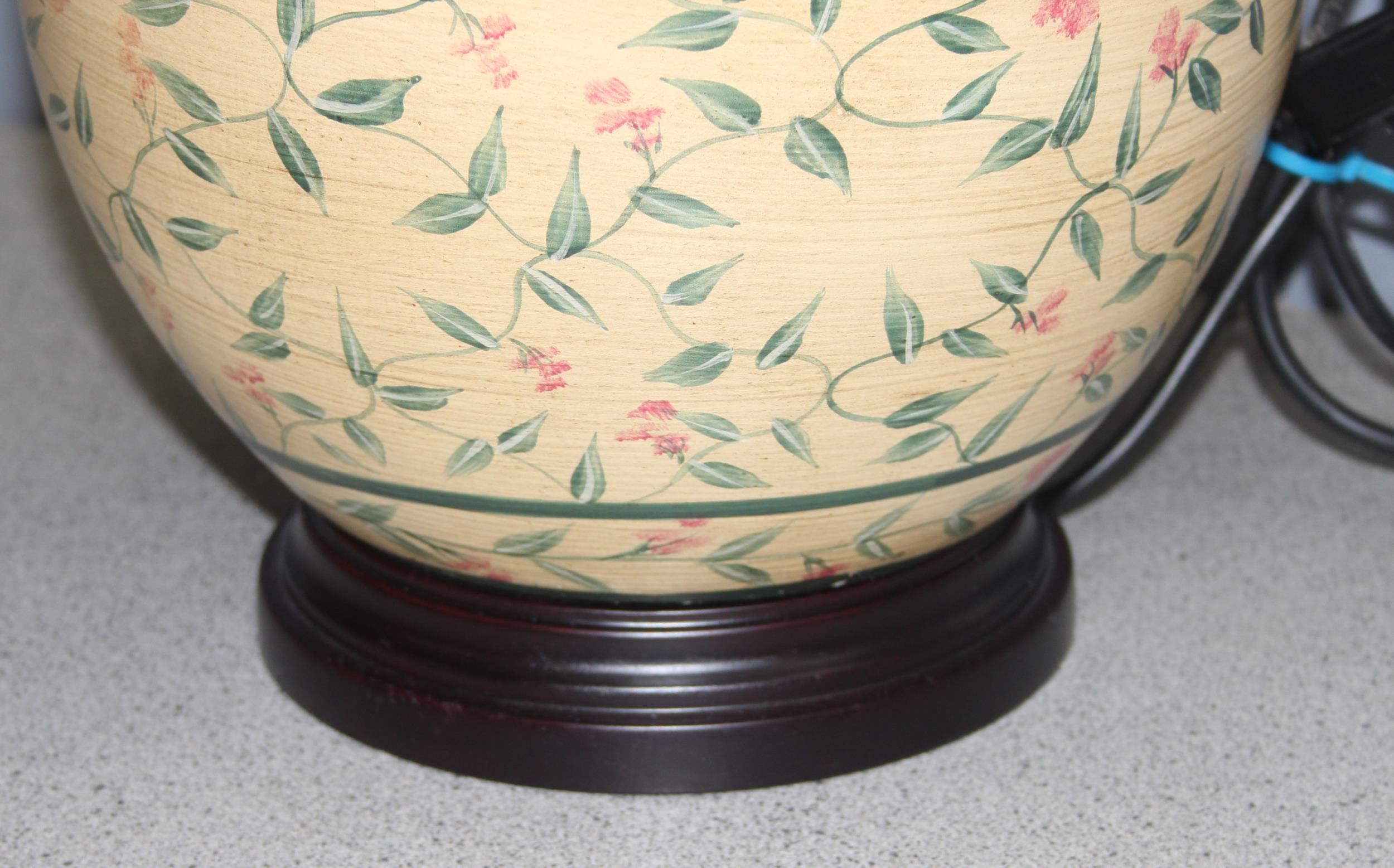 Vintage pottery lamp with hand-painted decoration, approx 59cm tall incl shade