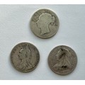 Three silver Victorian half crown coins - 1885 / 1889 / 1893.