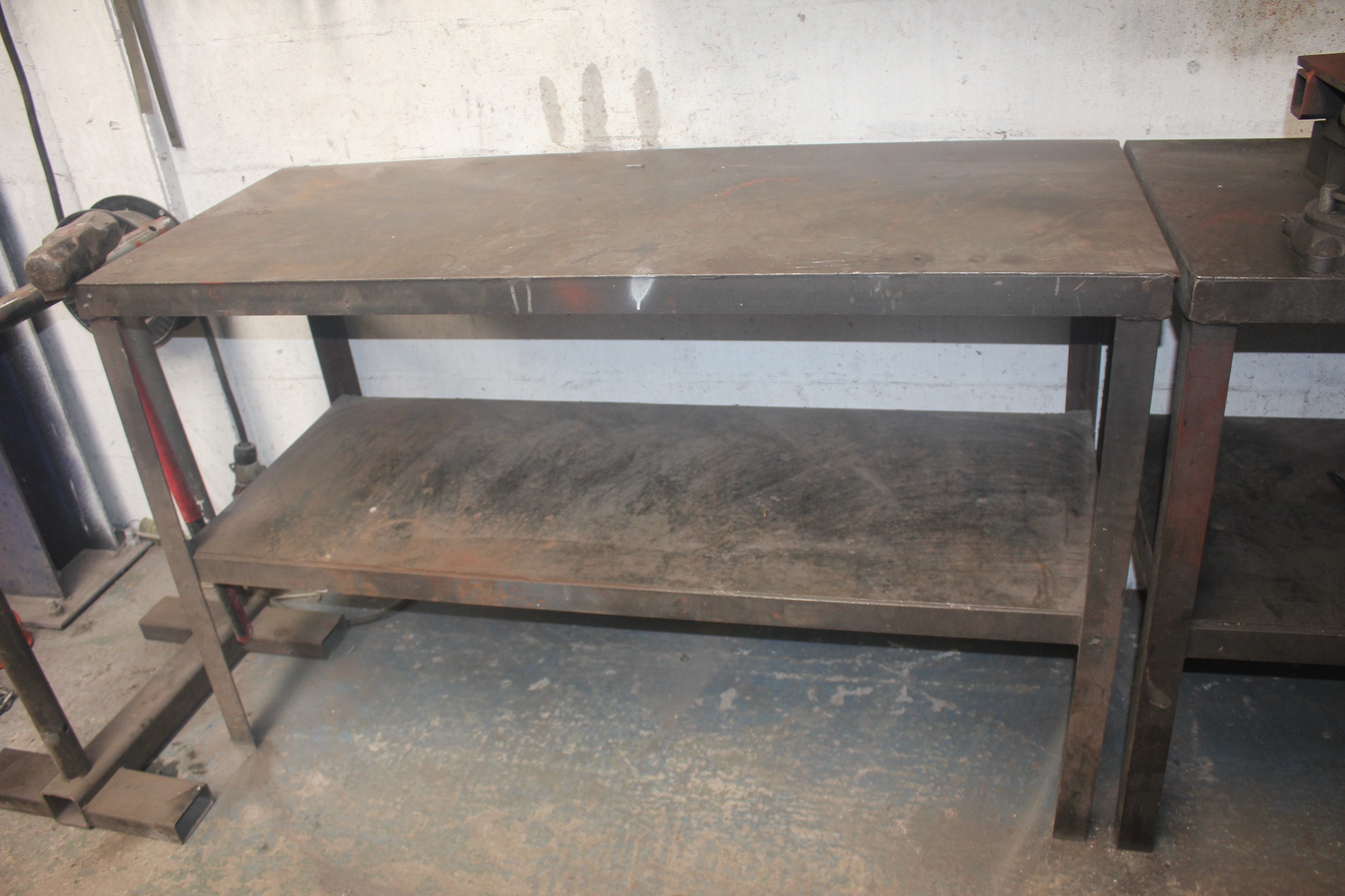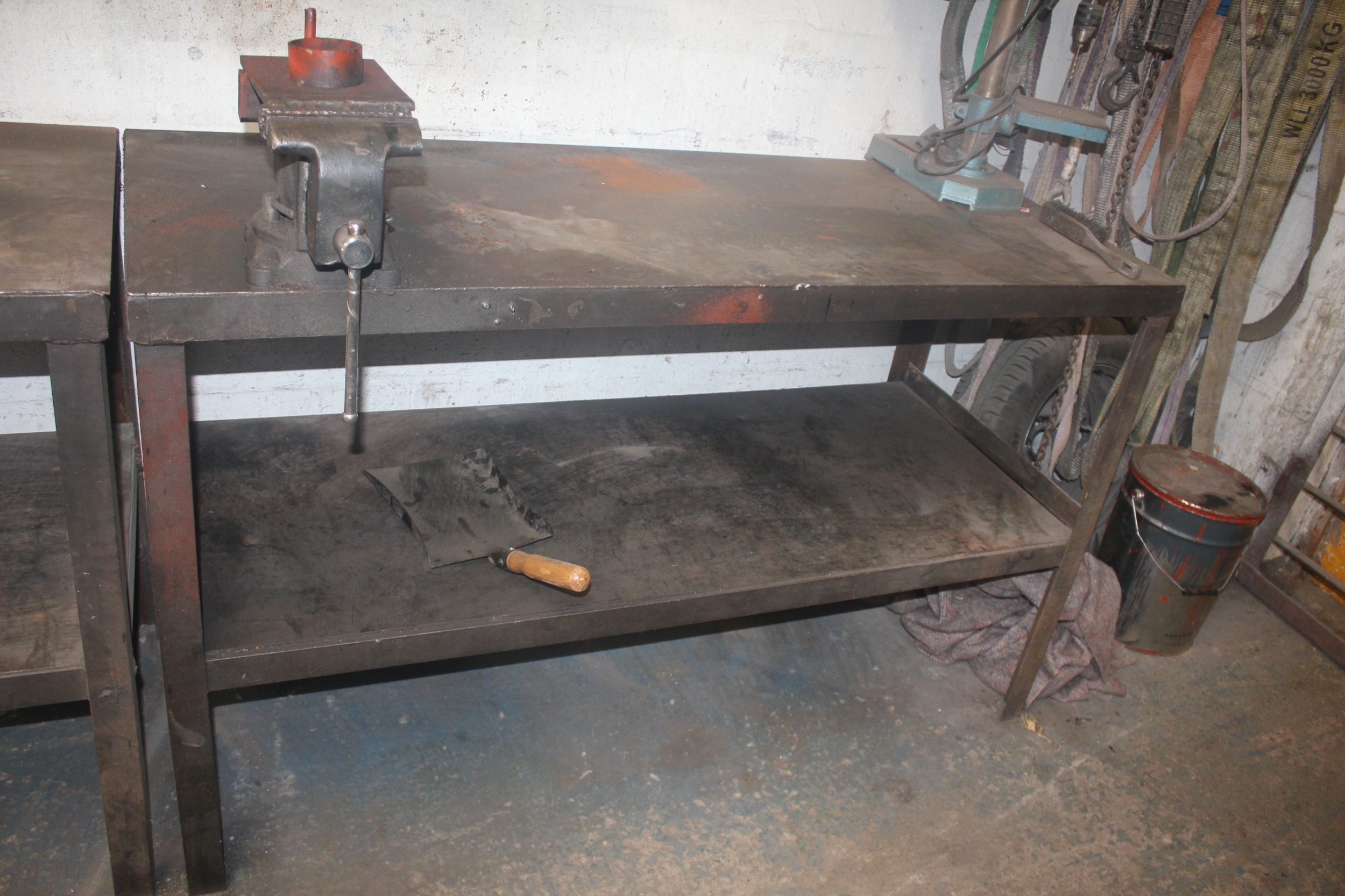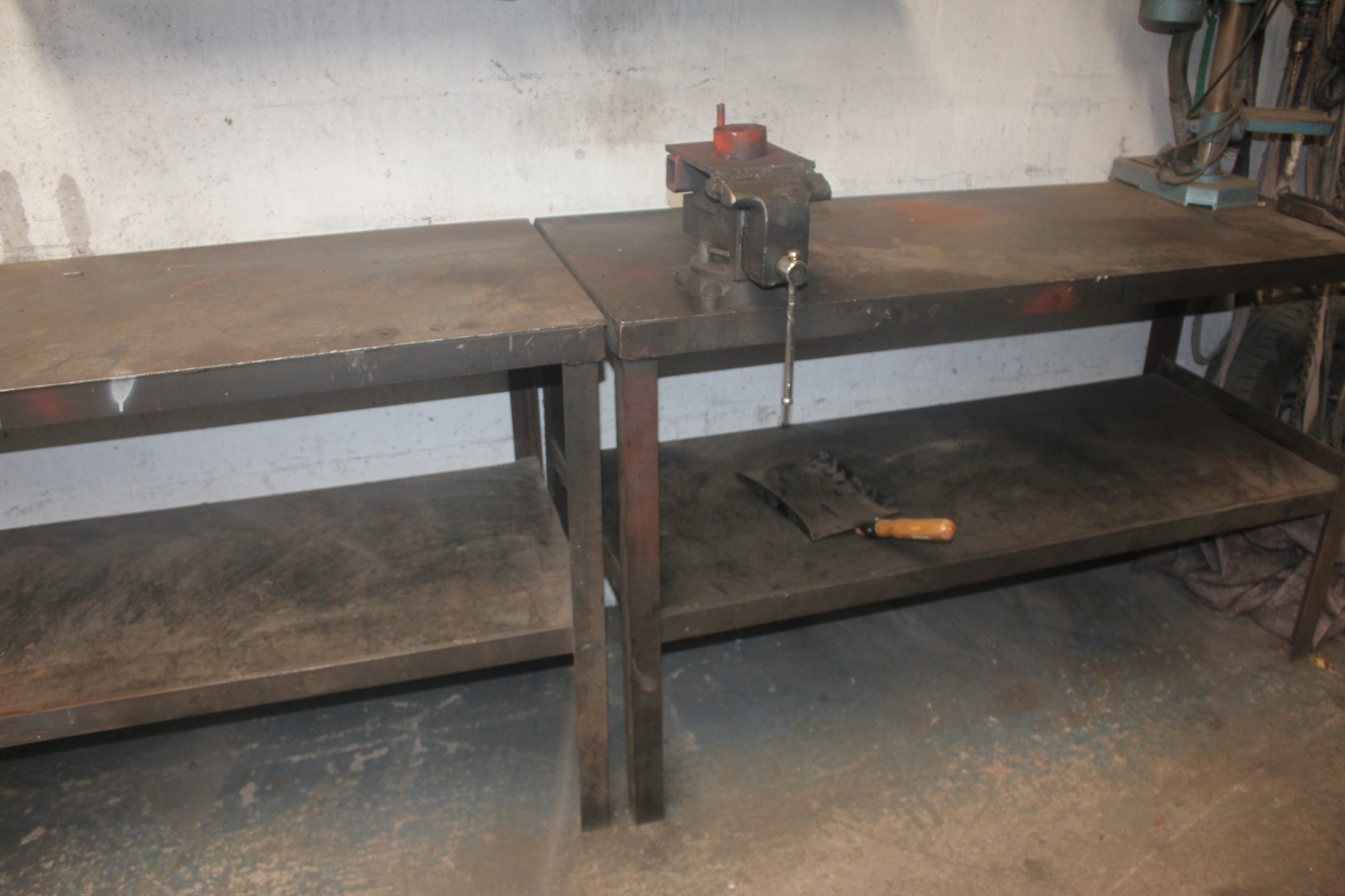 2 X 5FT WORKBENCHES, 1 WITH ENGINEERING VICE