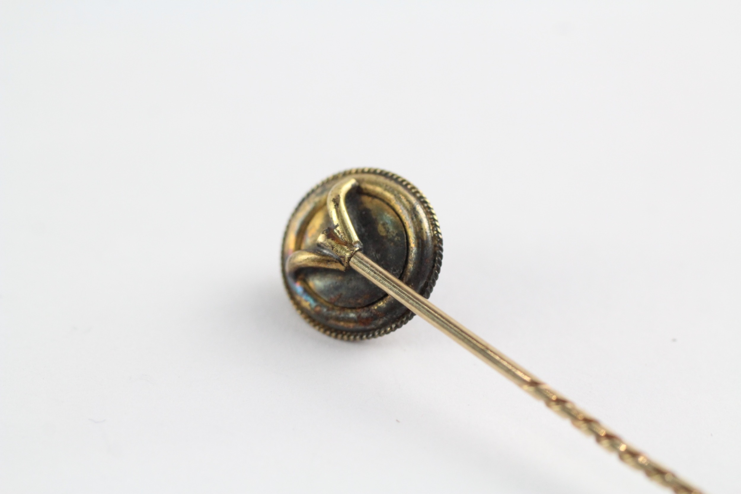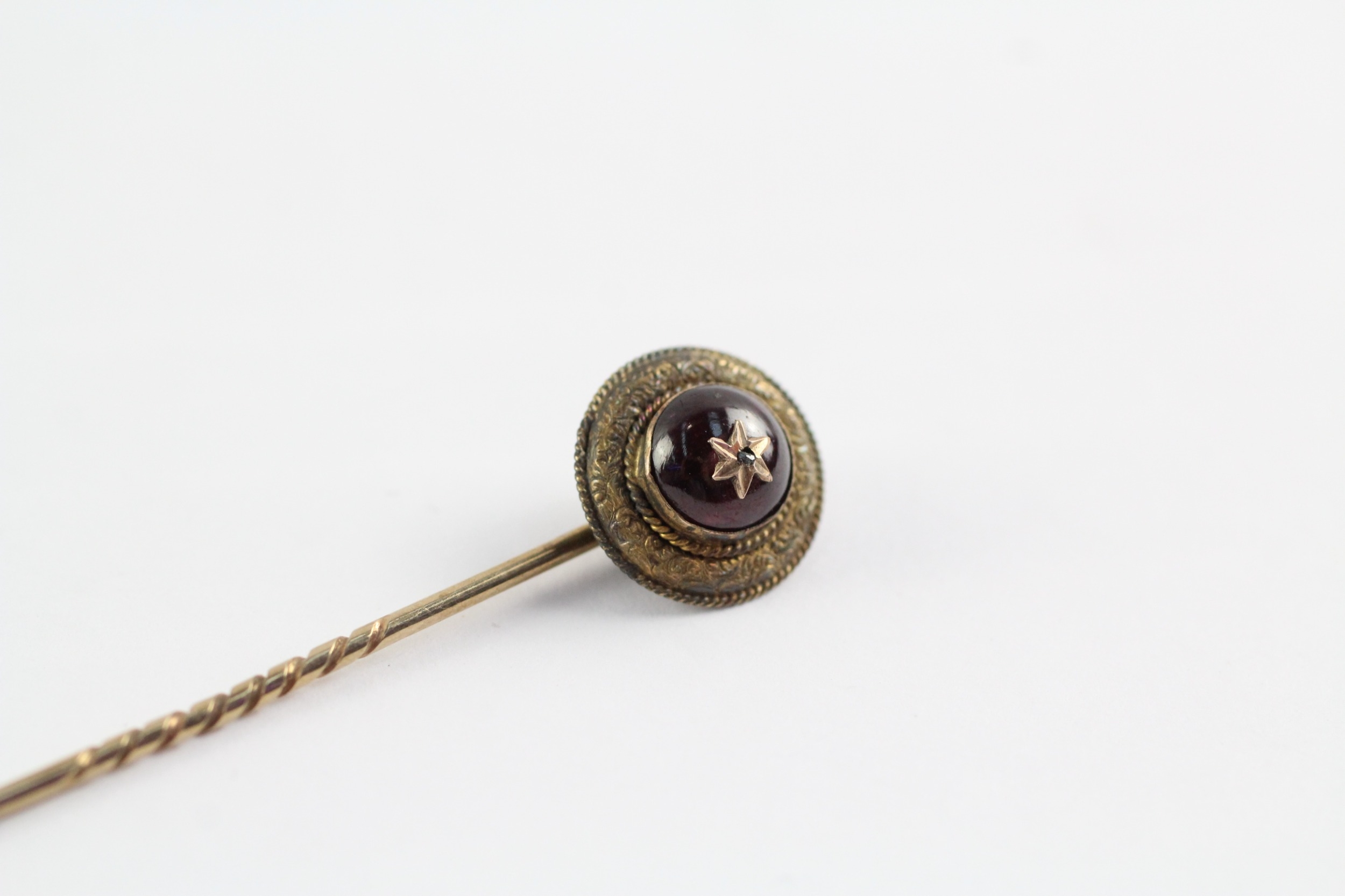 15ct gold top with garnet and diamond, 9ct gold pin (2.4g)