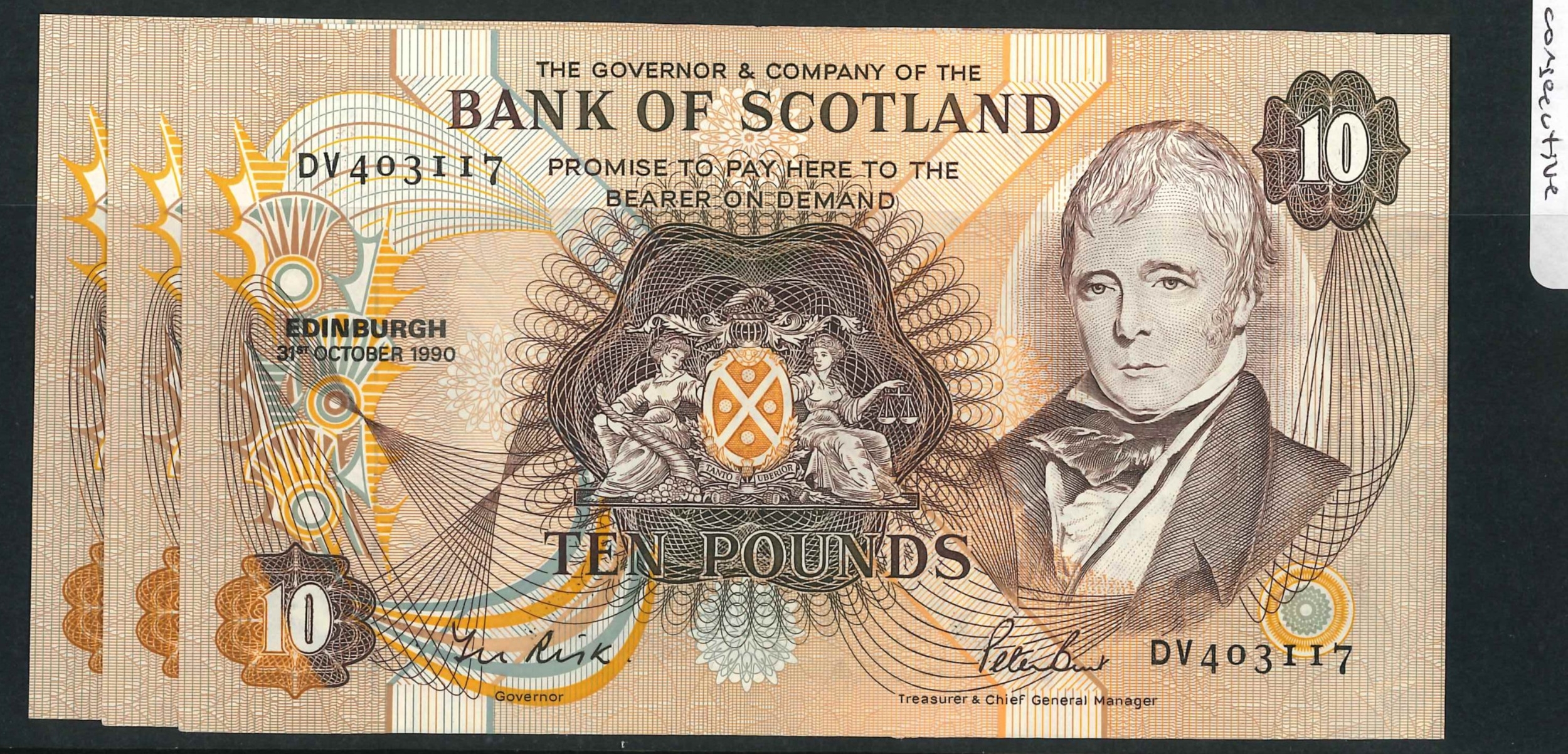 Banknotes; Scotland; Bank of Scotland; 1990 (31 Oct.) £10 - three consecutive notes, EF, PMS BA116d.