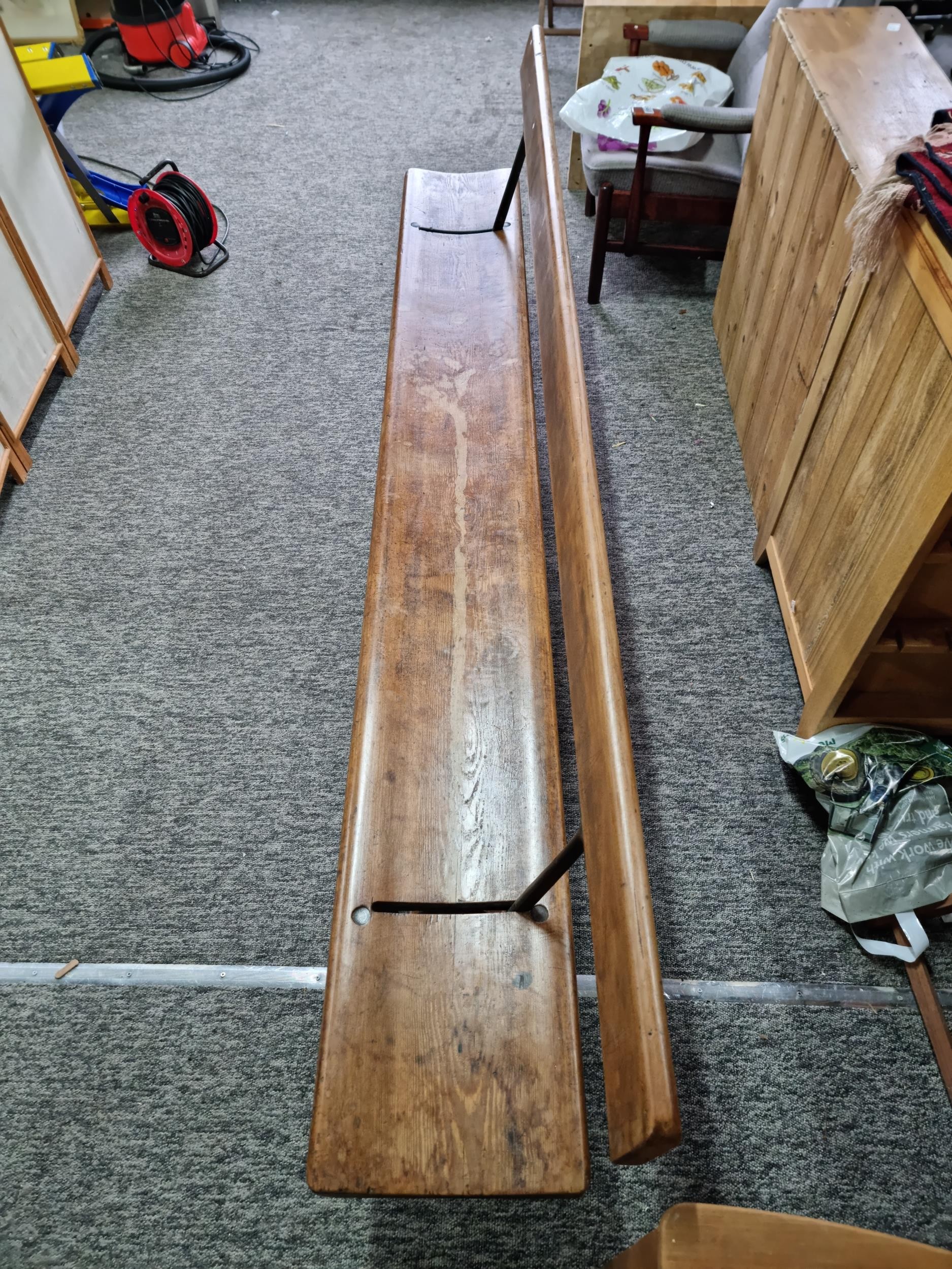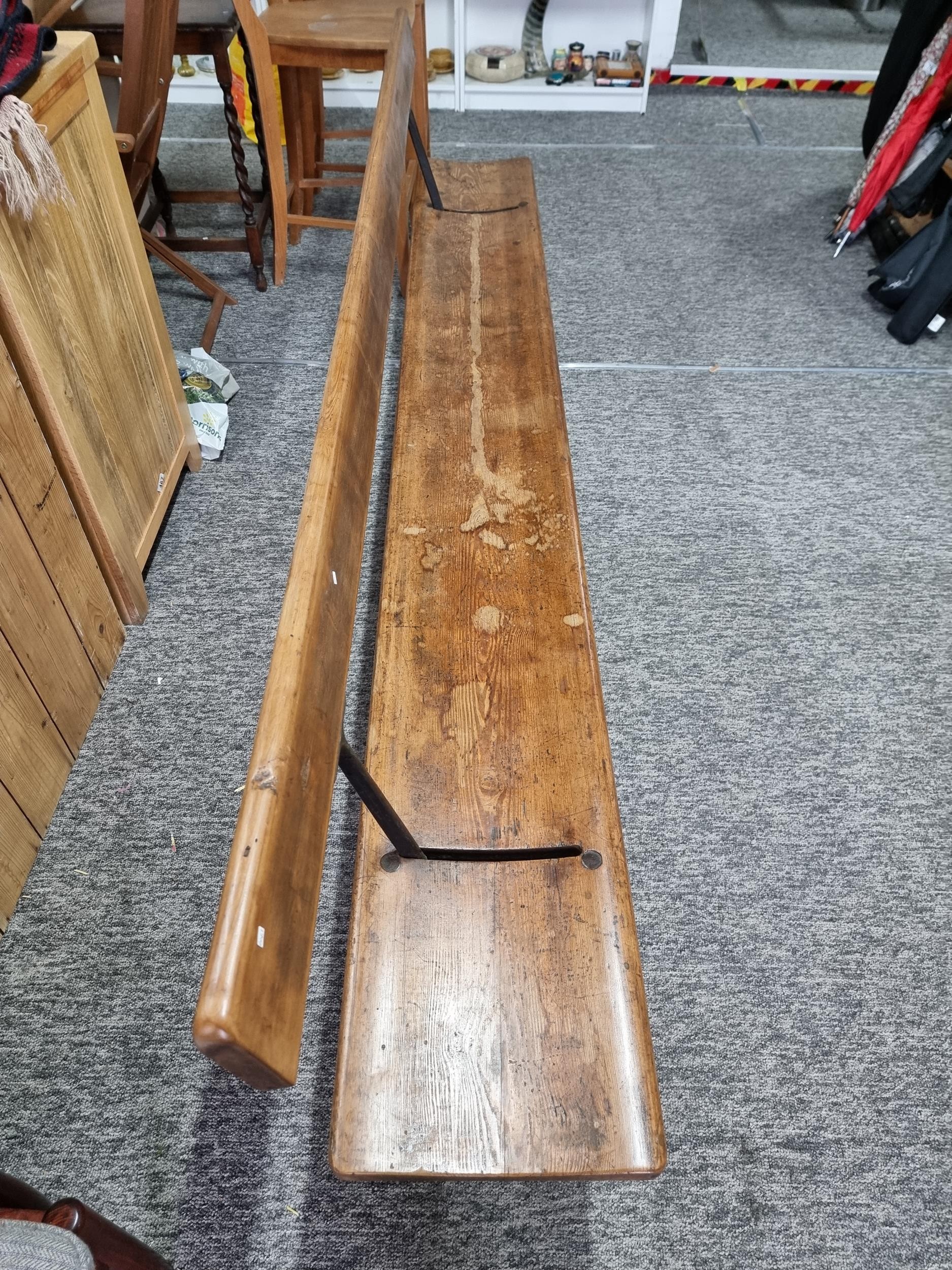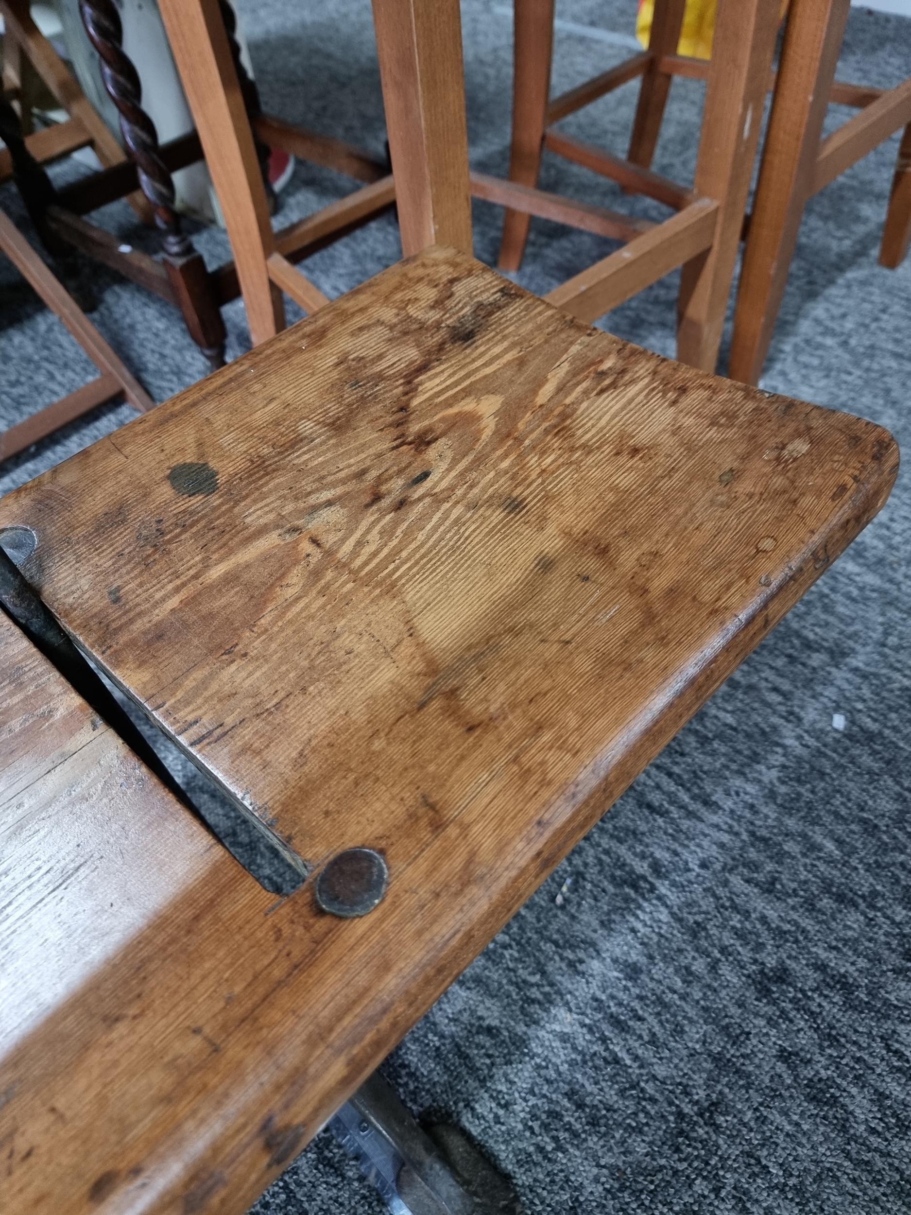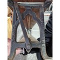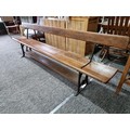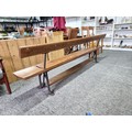 Good quality antique long solid wood and cast iron framed bench removed from a tram station many years ago the bench features a swing function for the back to allows people to sit on both sides of the bench the cast iron frame is marked for W. Fisher West Bromwich the wood has a lovely patina the bench has lots of charm and is highly collectable, has a height of 77cm length 245cm or 8ft width of 32cm