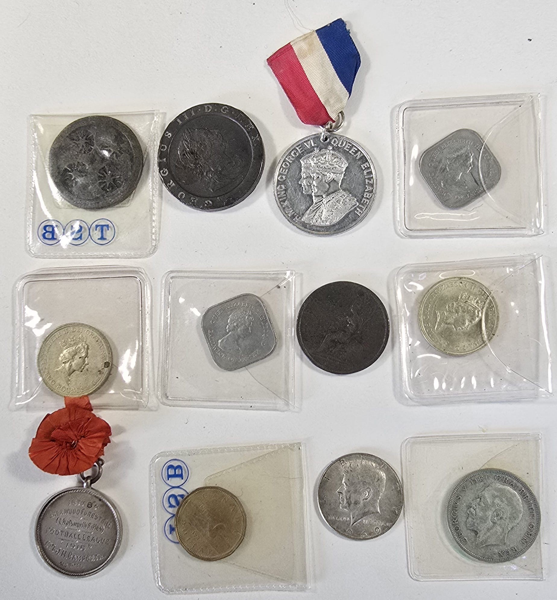 Also £2 Commonwealth Games 1986 (2) VF. Other coins including 2 pence 1797 cartwheel, F, some edge knocks, Austria Maria Theresa Thaler 1780 restrike VF. Canada proof dollars "Toronto" 1834-1984 commemorative in R. Canadian mint packets. 1980 Dollar regular issue 19080 VF, USA dollar 1974 NVF, 1/2 Dollar 1969 VF + 9 sundry other items.