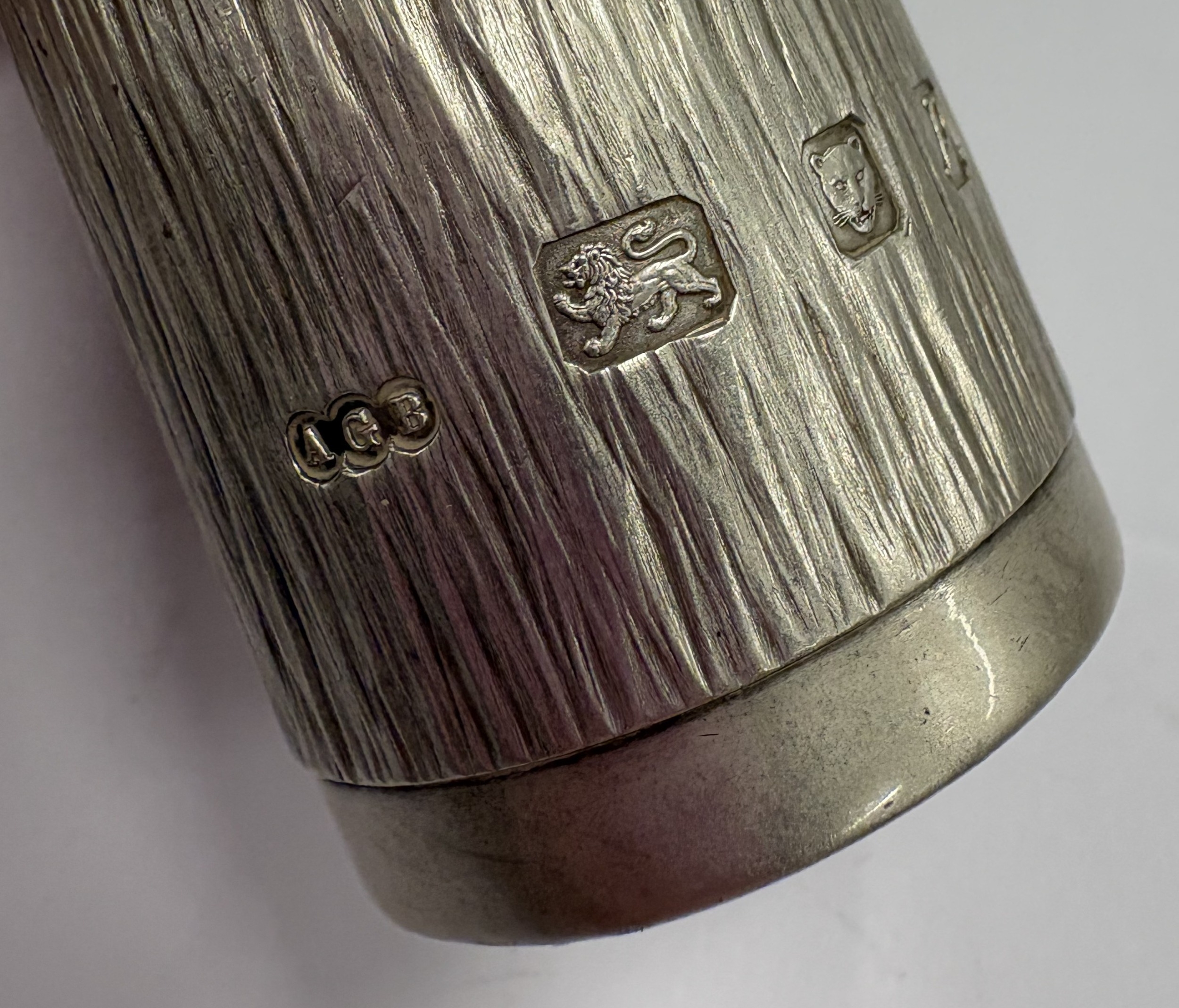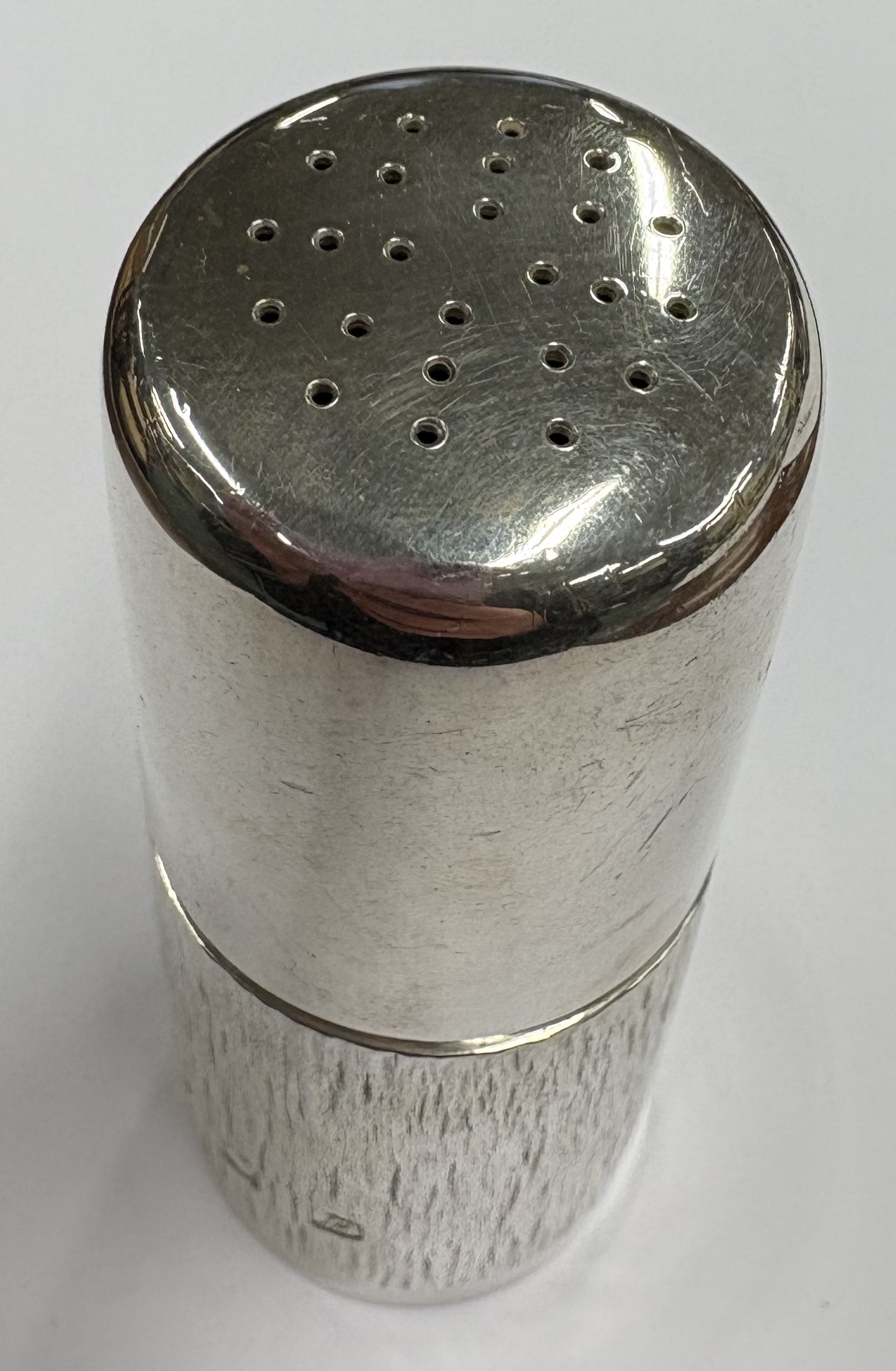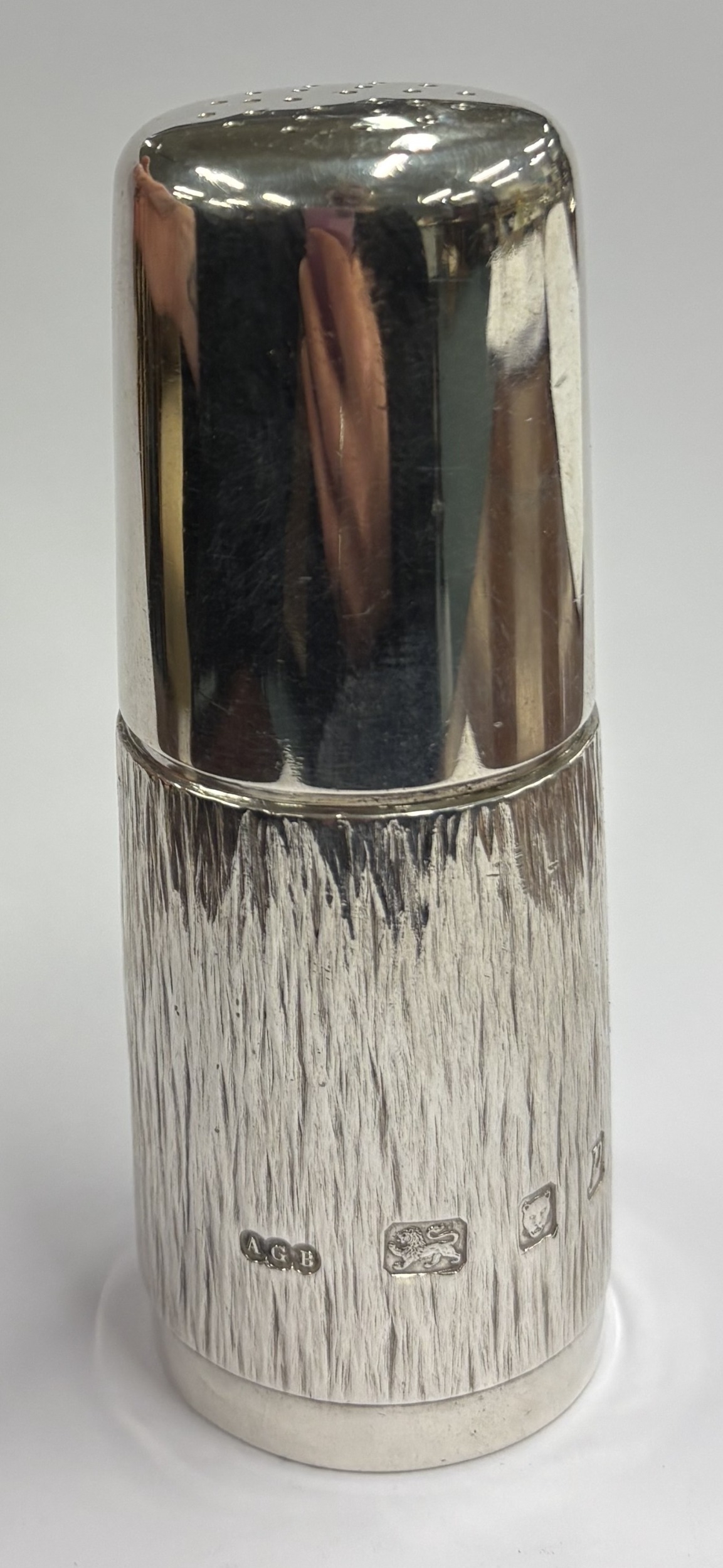 A silver pepper pot with textured bark decoration. London 1979. By Gerald Benney. Approx. 140 grams. Est. £400 - £600.